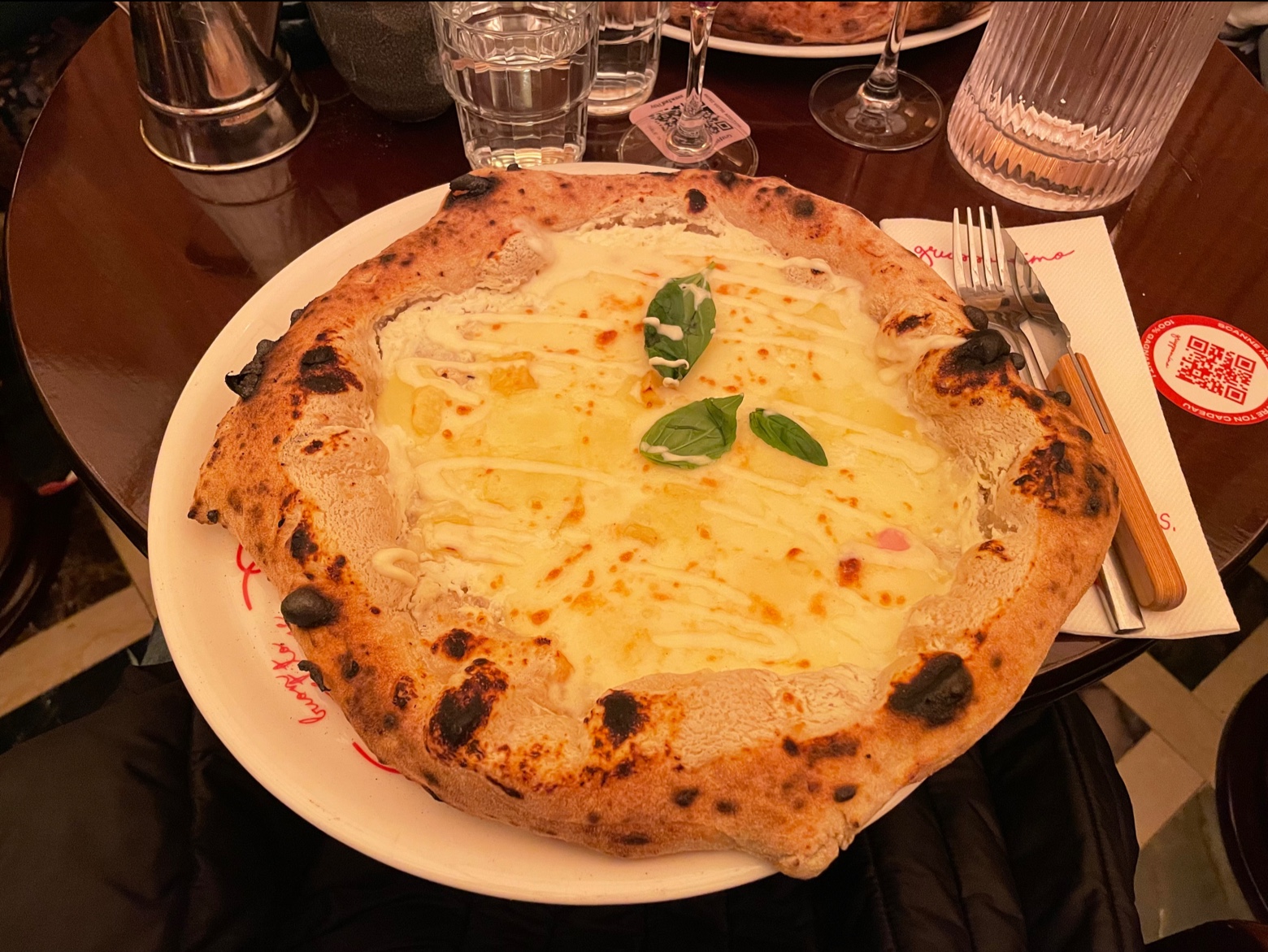 Vrai coup de cœur pour ce restaurant ! Nous y sommes allées pour fêter l’anniversaire d’une copine. Non seulement la nourriture était délicieuse (et ça sentait la truffe dès l’entrée, une dinguerie) : les pizzas étaient copieuses et nous avons pu faire un doggy bag pour les ramener chez nous. Mais en plus le service était top, les serveurs étaient vraiment gentils et ont chanté l’anniversaire avec nous ! Nous avons même eu un petit limoncello offert pour l’occasion ! Vraiment bravo, j’y retournerai sans hésiter ! En plus la déco est vraiment chouette, nous étions dans une petite alcôve entre nous.