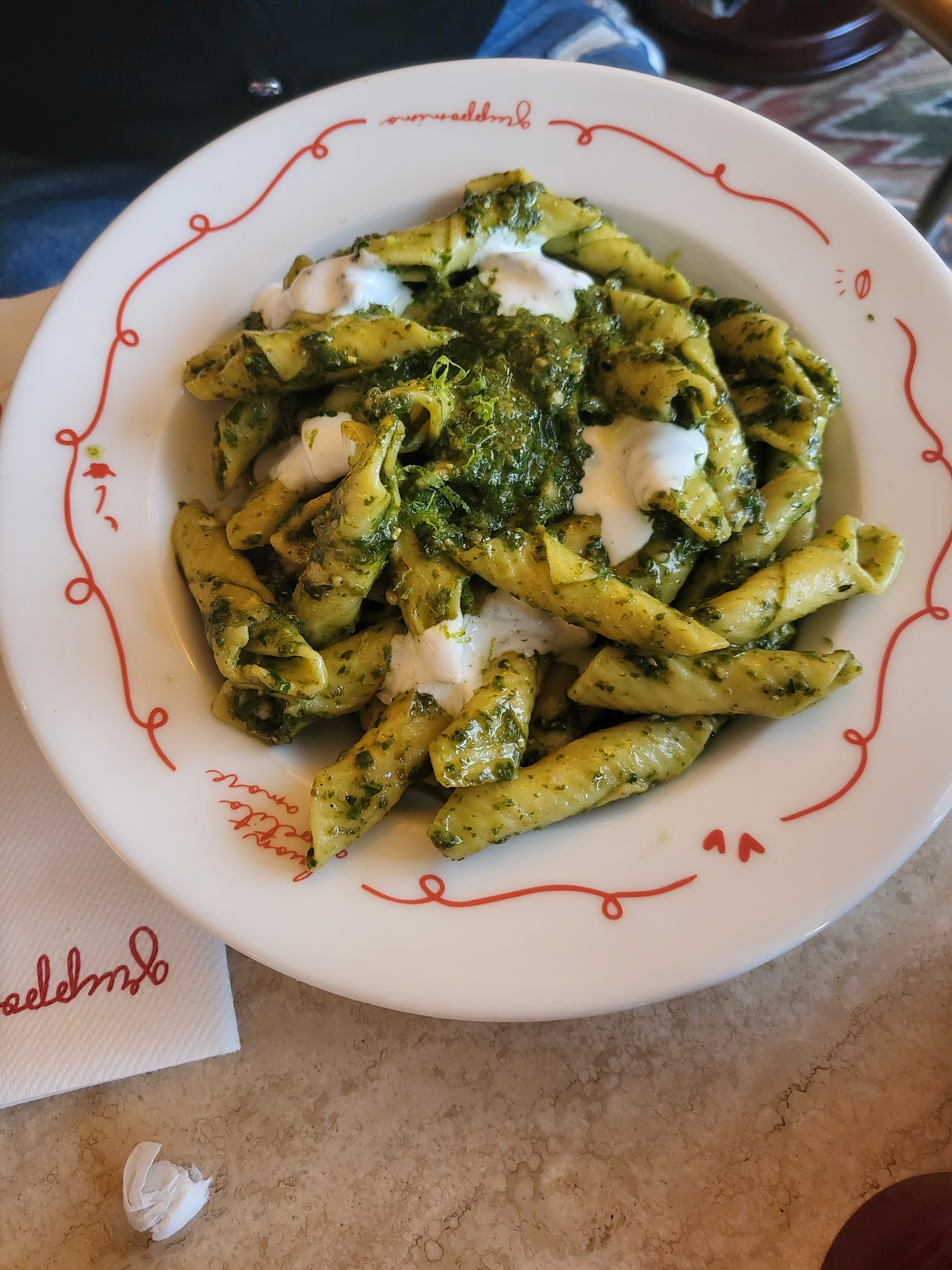 La nourriture était excellente, le service rapide, les serveurs incroyablement gentils. J’y retournerai vraiment les yeux fermés surtout que les prix sont plus que corrects quand on compare à d’autres restau italiens. Si je dois vraiment trouver un truc que j’ai moins aimé c’est la musique que j’ai trouvé trop forte mais c’est vraiment un détail qui ne nous a pas empêché de passer une super soirée.