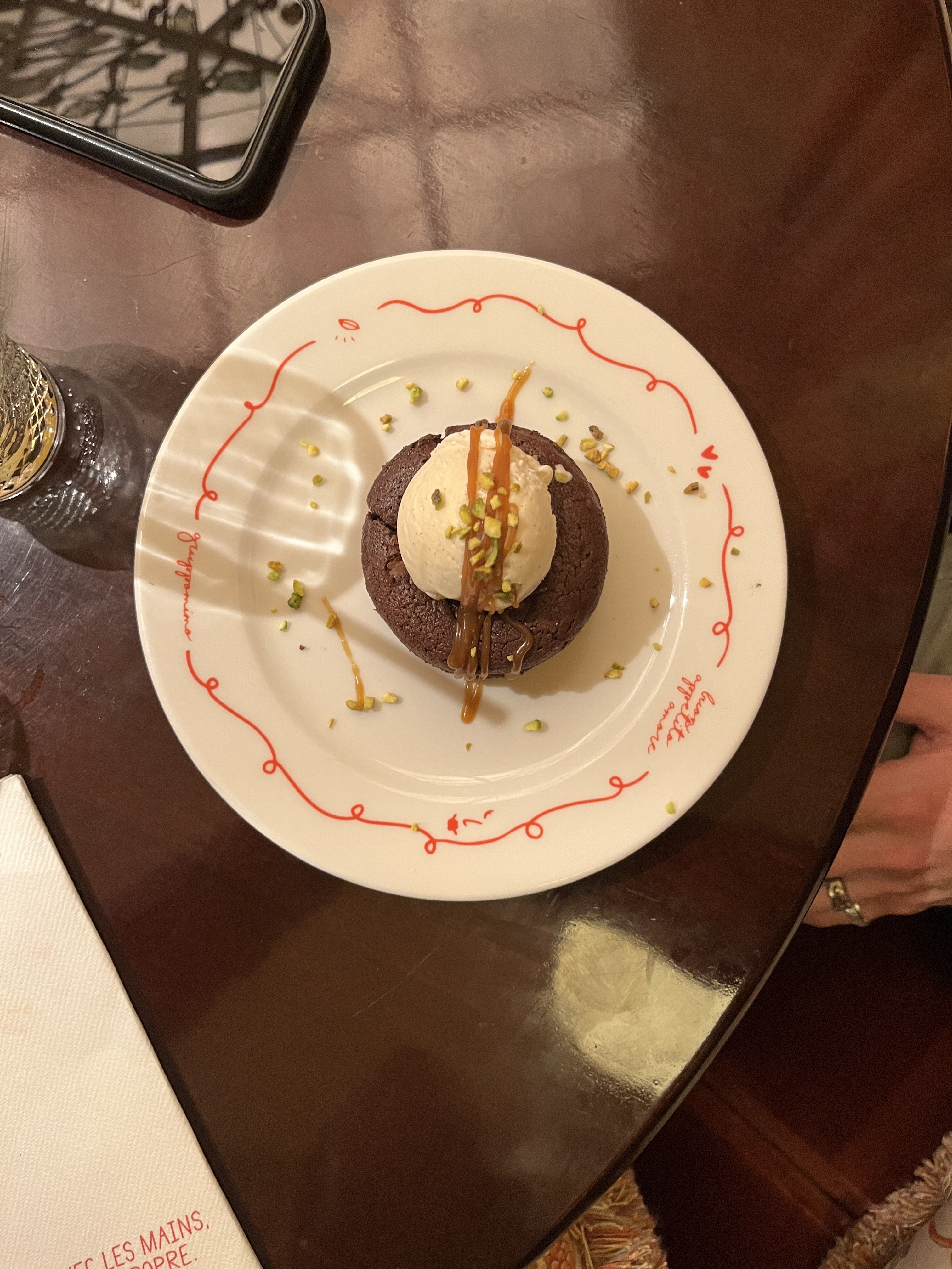 C’etait délicieux, le cadre et tout est parfait. Notre serveur était super super super gentil. Notre serveur a rendu l’expérience dix fois plus fun et la nourriture était vraiment délicieuse. Je suis fan de leur tiramisu pistache !