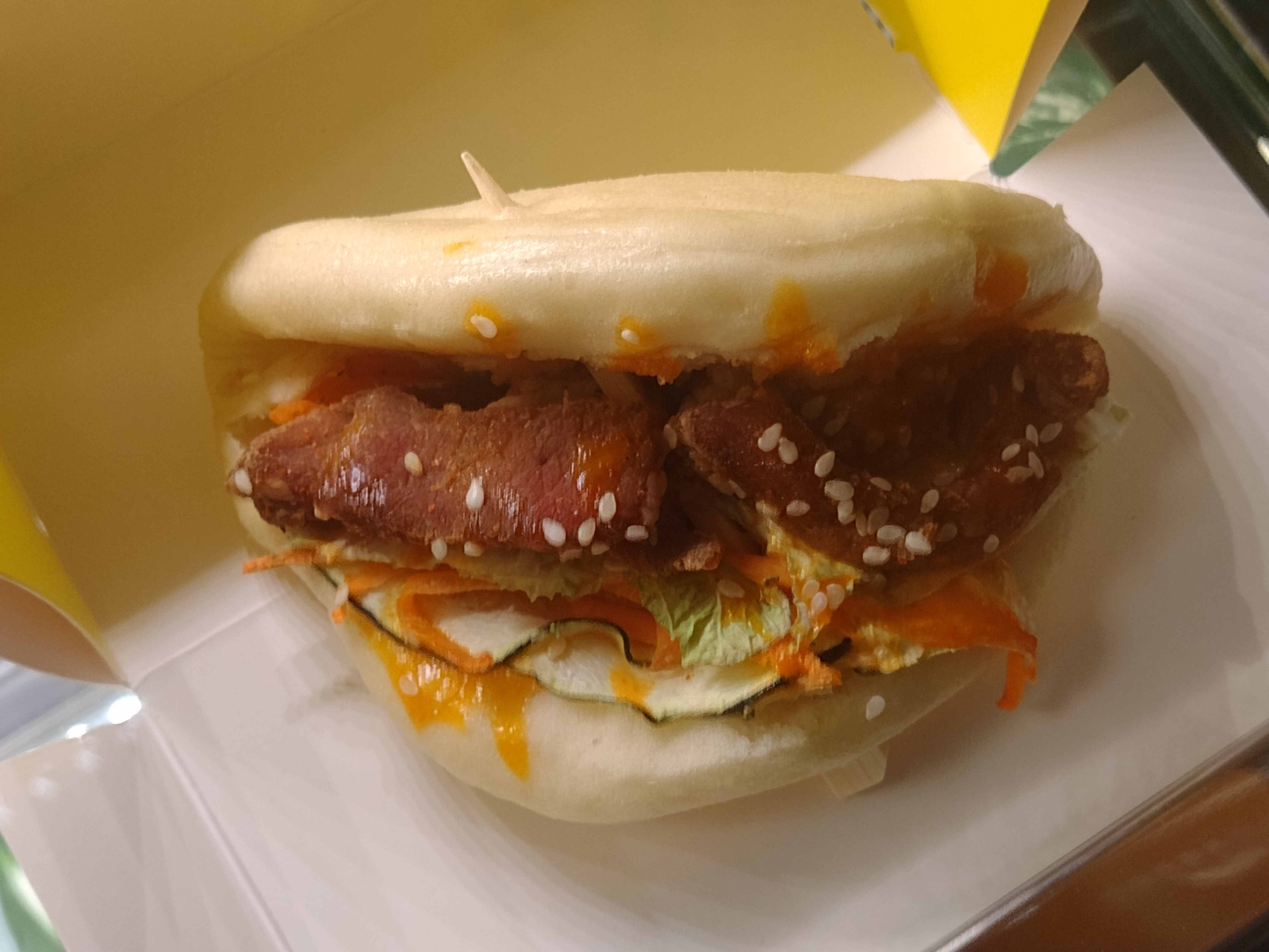 Malgré un vendeur assez antipathique et du sur-emballage (du carton pour chaque gua bao), c'était très bon. J'ai trouvé le gua bao au porc épicé comme il fallait (pas trop comme il faut).