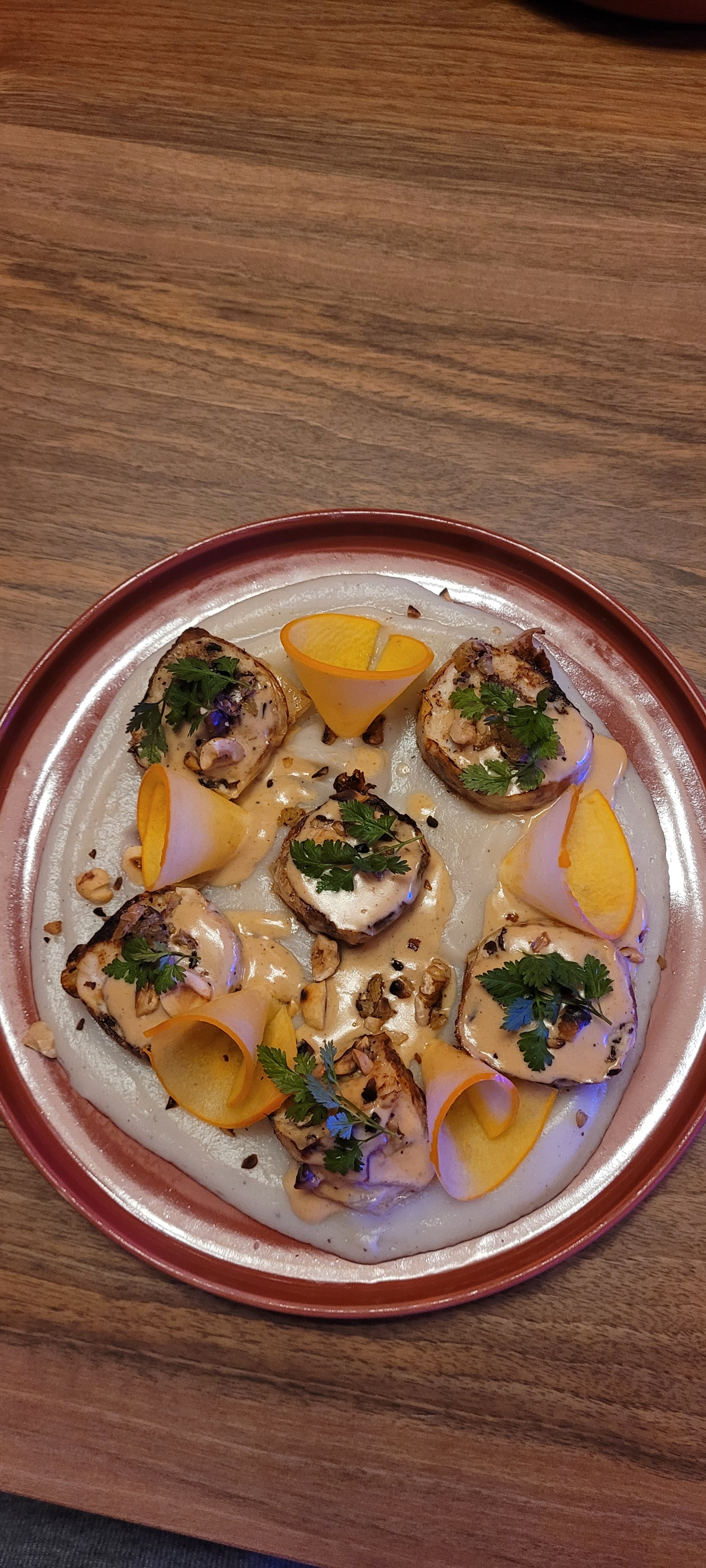Accueil chaleureux, explication des plats à la perfection par le serveur qui maîtrise parfaitement la carte et sait mettre en valeur le menu. Cela permet d'imaginer l'assiette et de se projeter avant même d'avoir dégusté. Plat terre magique, riche en saveurs, et dessert gourmand . Quantités suffisantes. Hâte de déguster les autres plats ! Très belle soirée. Je recommande ++.