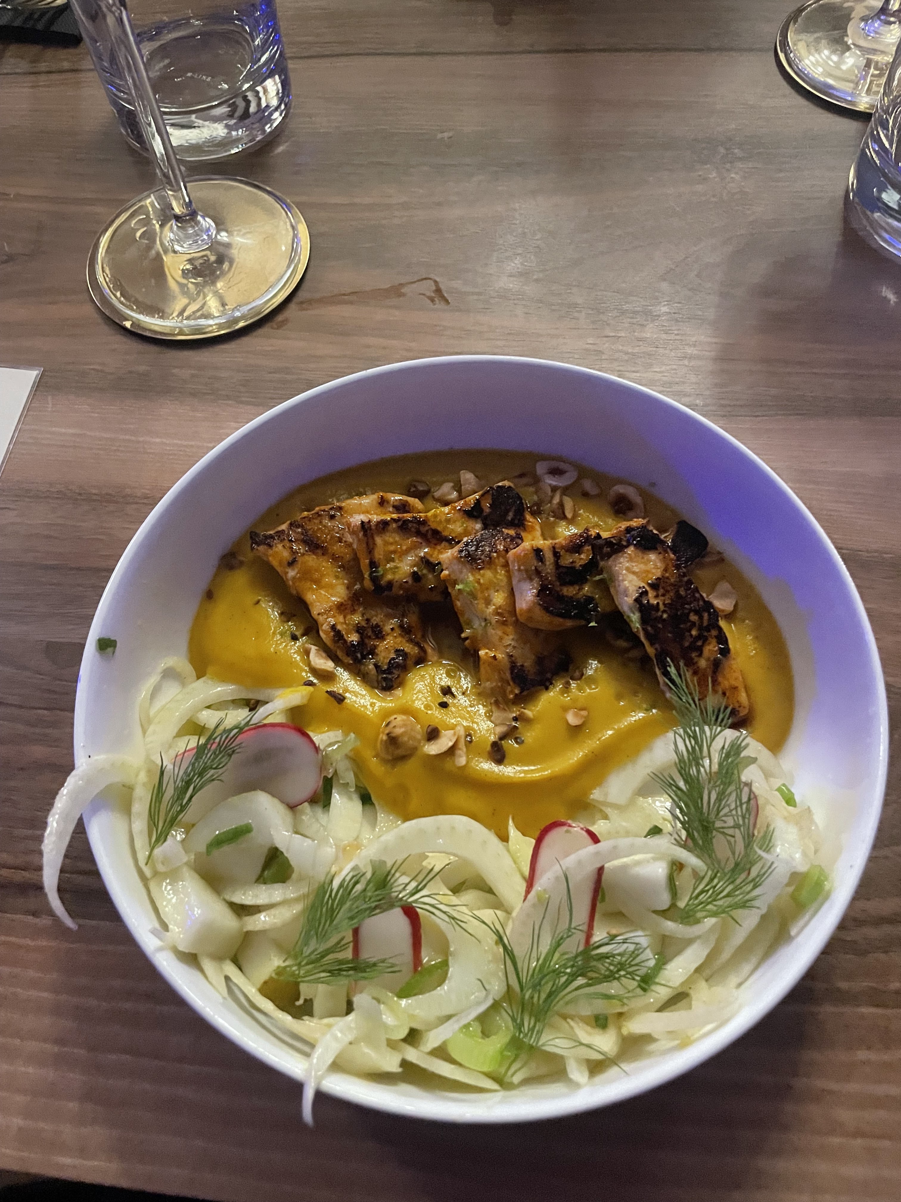 L’endroit parfait pour ceux qui aiment les mélanges de saveurs exotiques ! Les plats sont ultra frais et fait maison, d’ailleurs les 3 uniques plats à la carte le prouvent très bien. Ici la qualité prime sur la quantité. Je me suis régalée de l’entrée au dessert. J’ai d’ailleurs choisi le plat végétarien et la viande ne m’a pas du tout manqué. Si vous aimez les vins du monde, vous allez être ravis. Je conseille à 100%, d’ailleurs j’y retournerai prochainement car la carte change tous les mois.