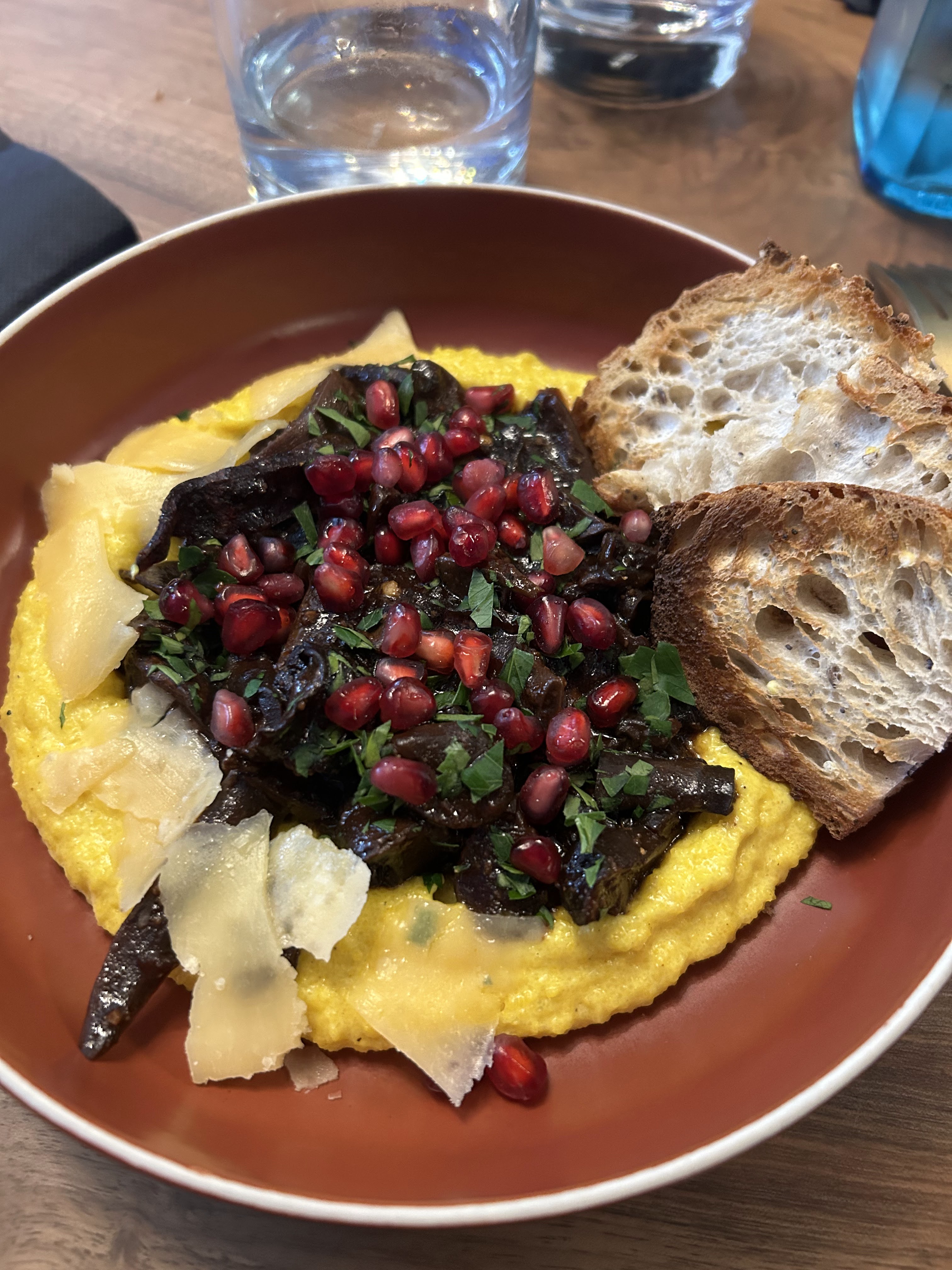 Des plats savoureux et frais ! Malheureusement (notre soir) il n'y a pas d'option pour une entrée ou une collation, donc immédiatement un plat principal (viande, poisson ou végétarien). Service amical et intérieur élégant.