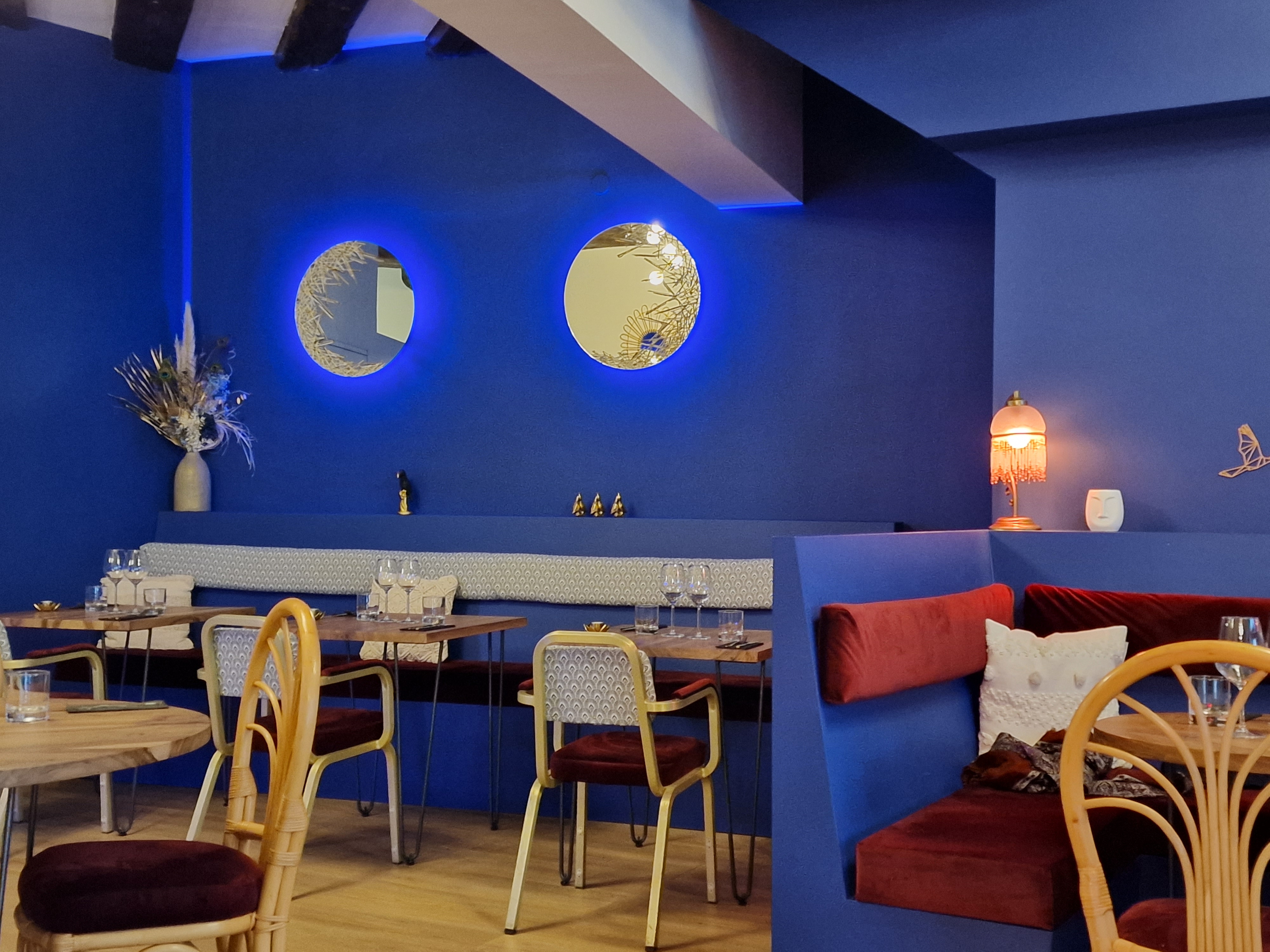Magnifique expérience culinaire ! Il y avait autant de cœur dans l'assiette que dans l'accueil et la gentillesse de nos hôtes. A recommander sans hésiter pour ceux qui apprécient les saveurs sucré salé et l'originalité.... Le cadre aux couleurs bleutées avec les matériaux bruts apparents rajoute une touche de féerie à cette soirée inoubliable ! Il faut encourager ce type de restaurant qui privilegie le fait-maison avec une carte réduite mais efficace