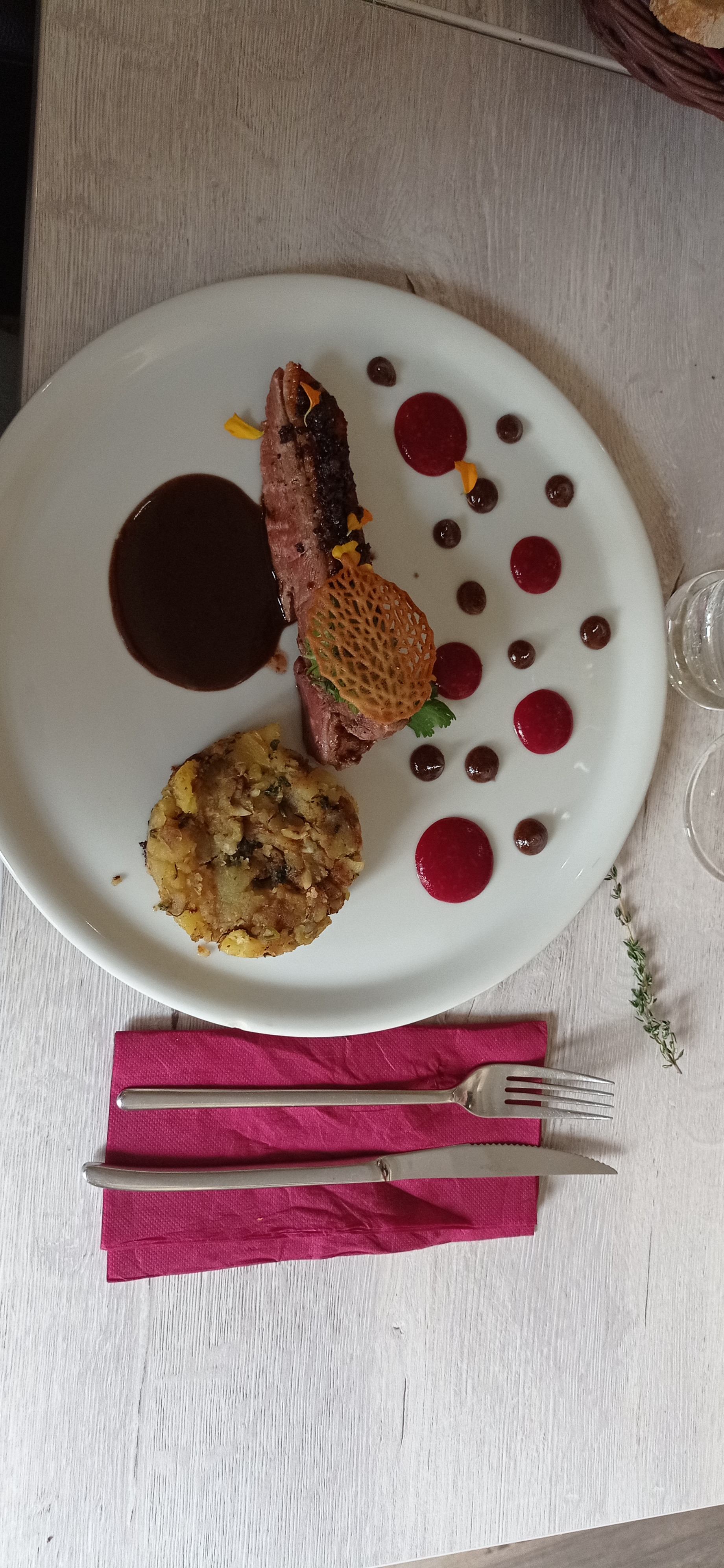 Une cuisine recherchée Toutes les papilles ne peuvent y adhérer Le service est soigné ! Déception avec le magret qui aurait mérité de revoir les quantités de viande