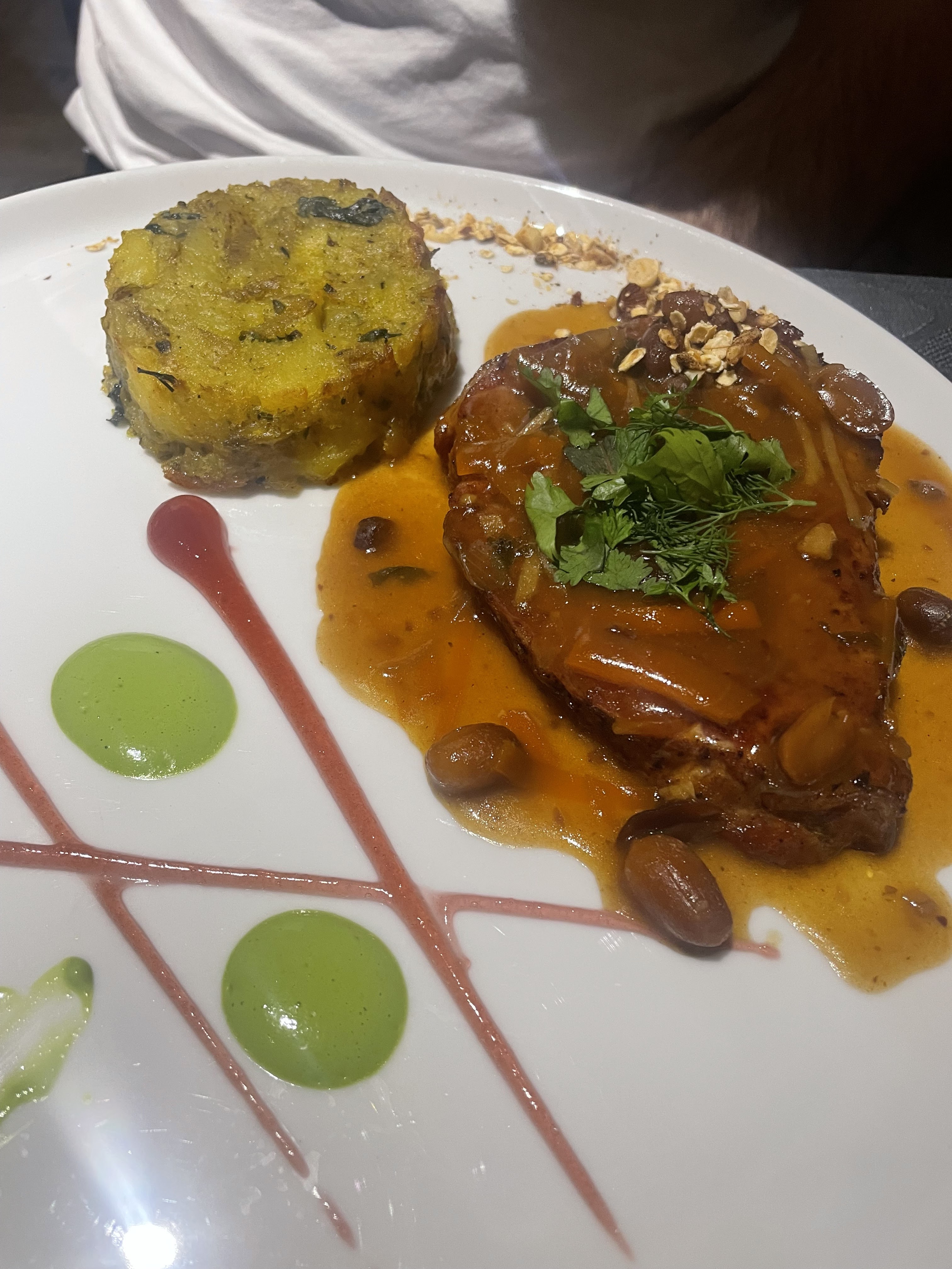Cuisine raffinée et avec des saveurs inédites. D'excellentes idées et associations. L'échine de porc avec sa sauce cacao et épices était à tomber.
