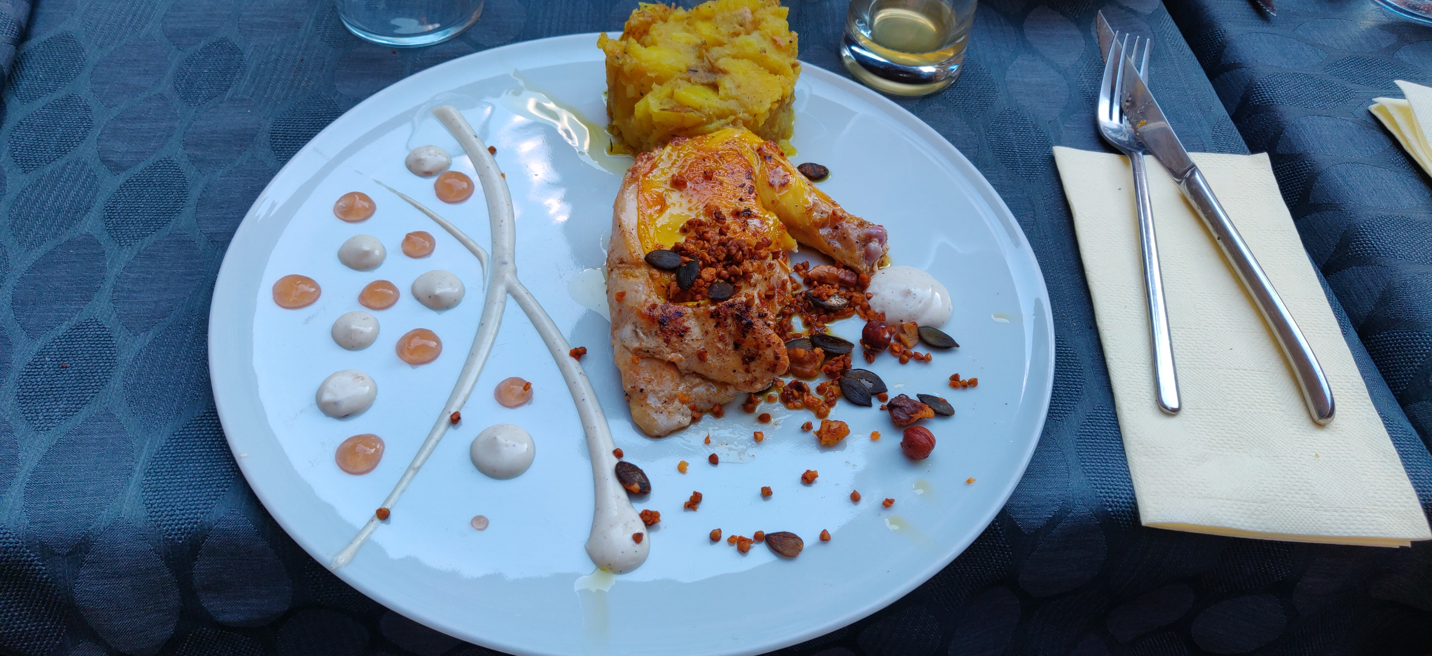 Très bonne découverte de ce restaurant qui propose de bons plats de la régions. Le menu enfant reprend les mêmes plats que le menu normal dans des proportions moindres mais très généreuses quand même. Personnel très accueillant et sympathique qui explique tous les plats lors du service. Je recommande vivement (Sur la photo c'est le suprême de poulet)