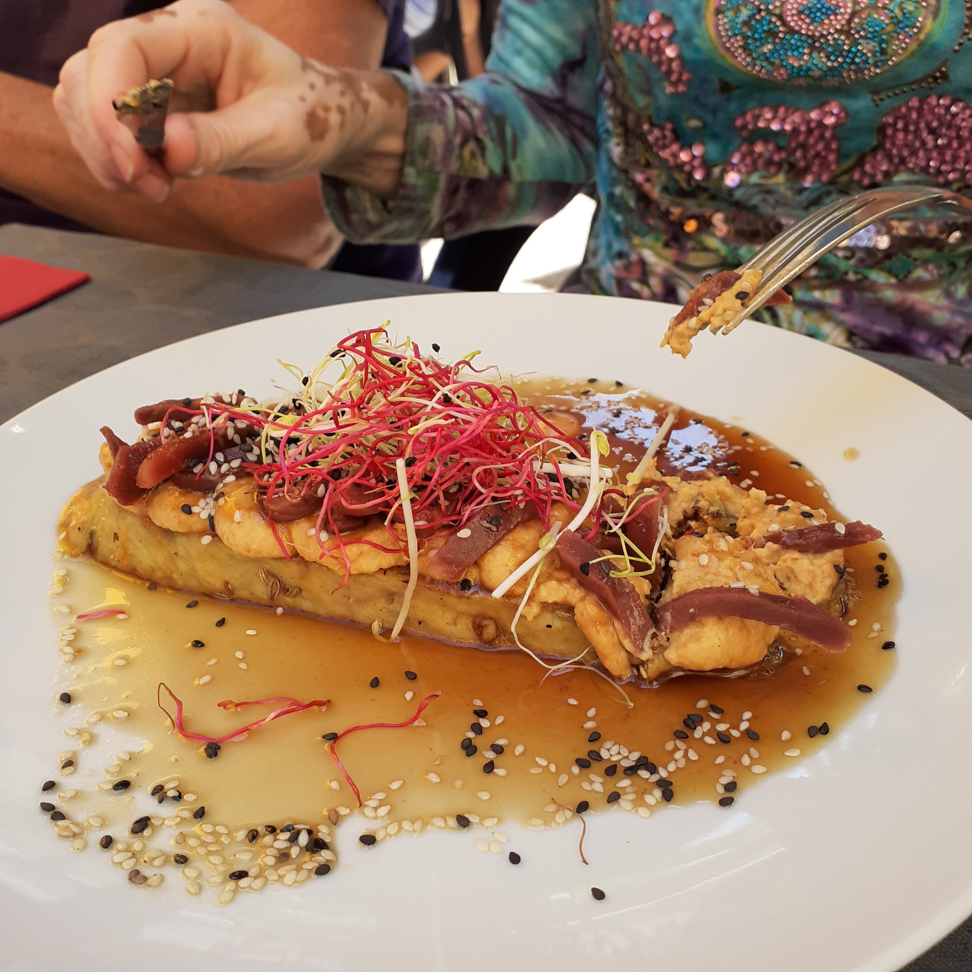 Plats savoureux avec des notes orientales ... à refaire et le personnel très sympa ... Nous cherchions 1 restaurant qui ne soit pas 1 attrape touristes et nous n'avons pas été déçu .... Adresse que nous garderons si le chef continu d'exciter nos papilles de la sorte ...