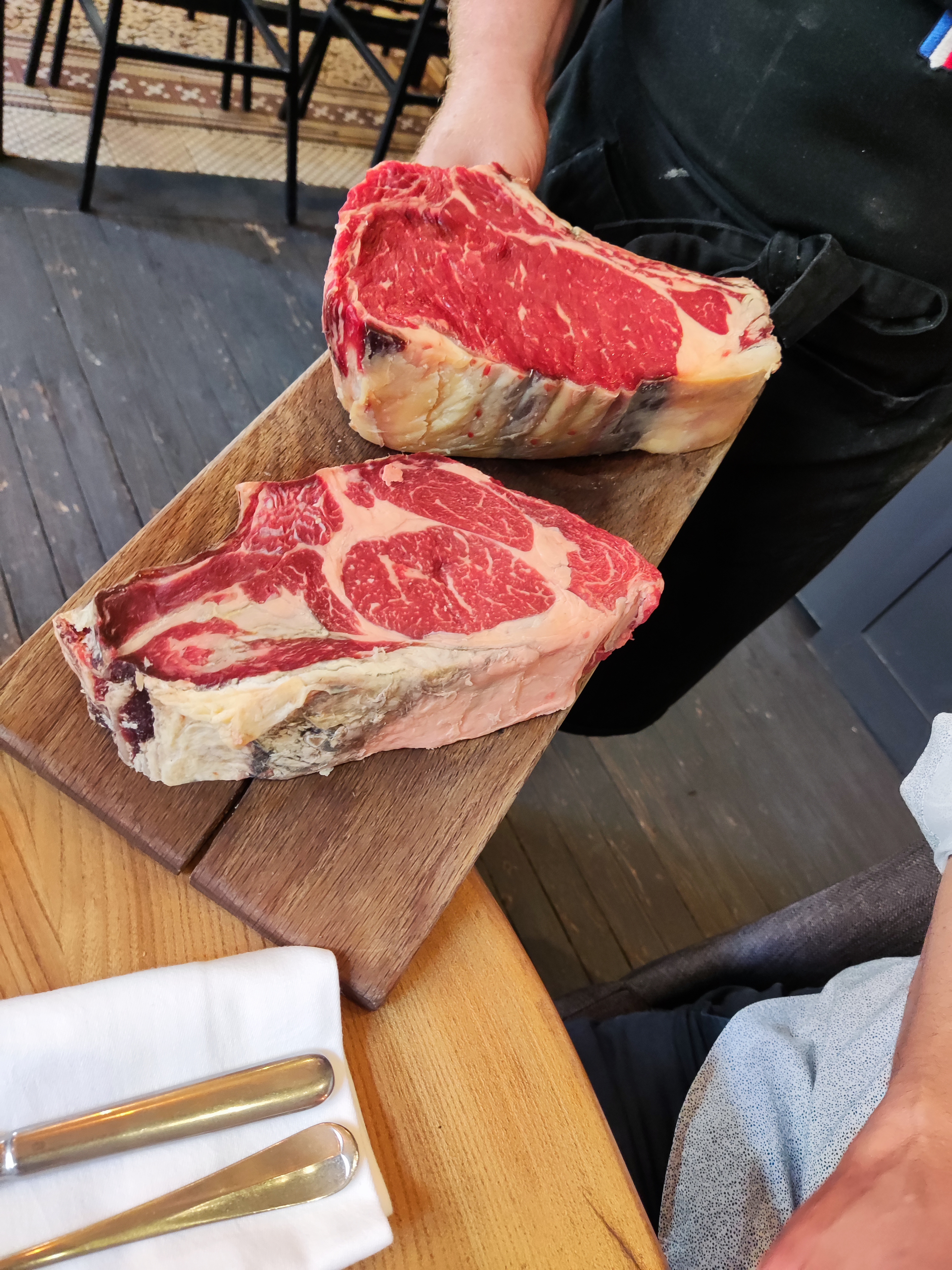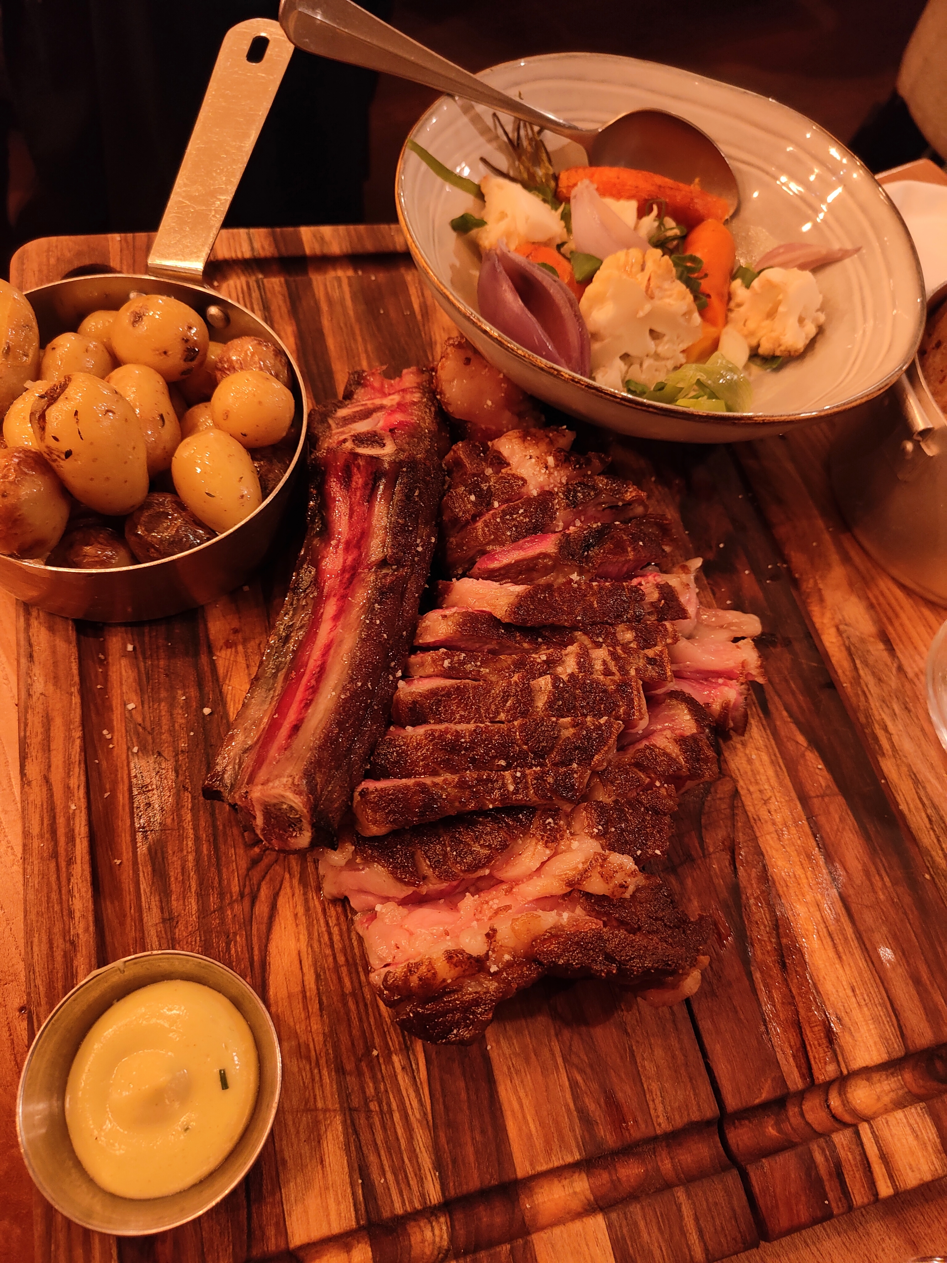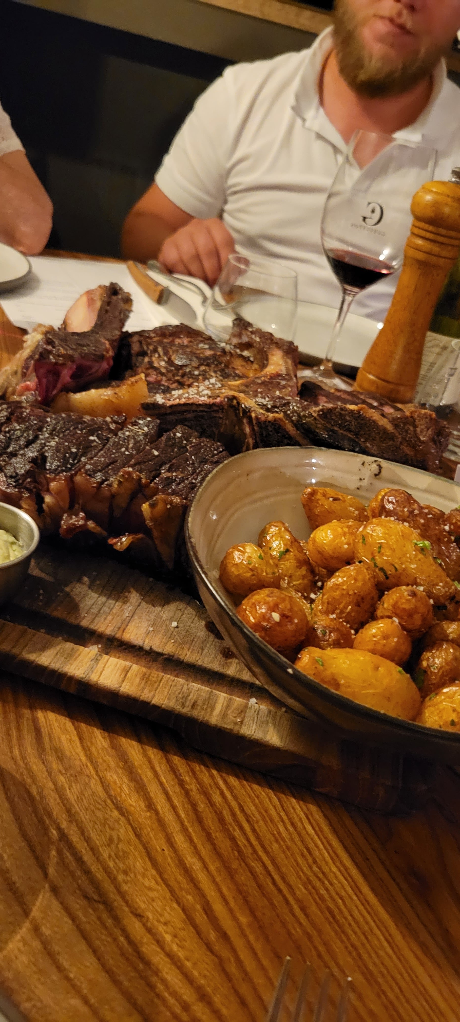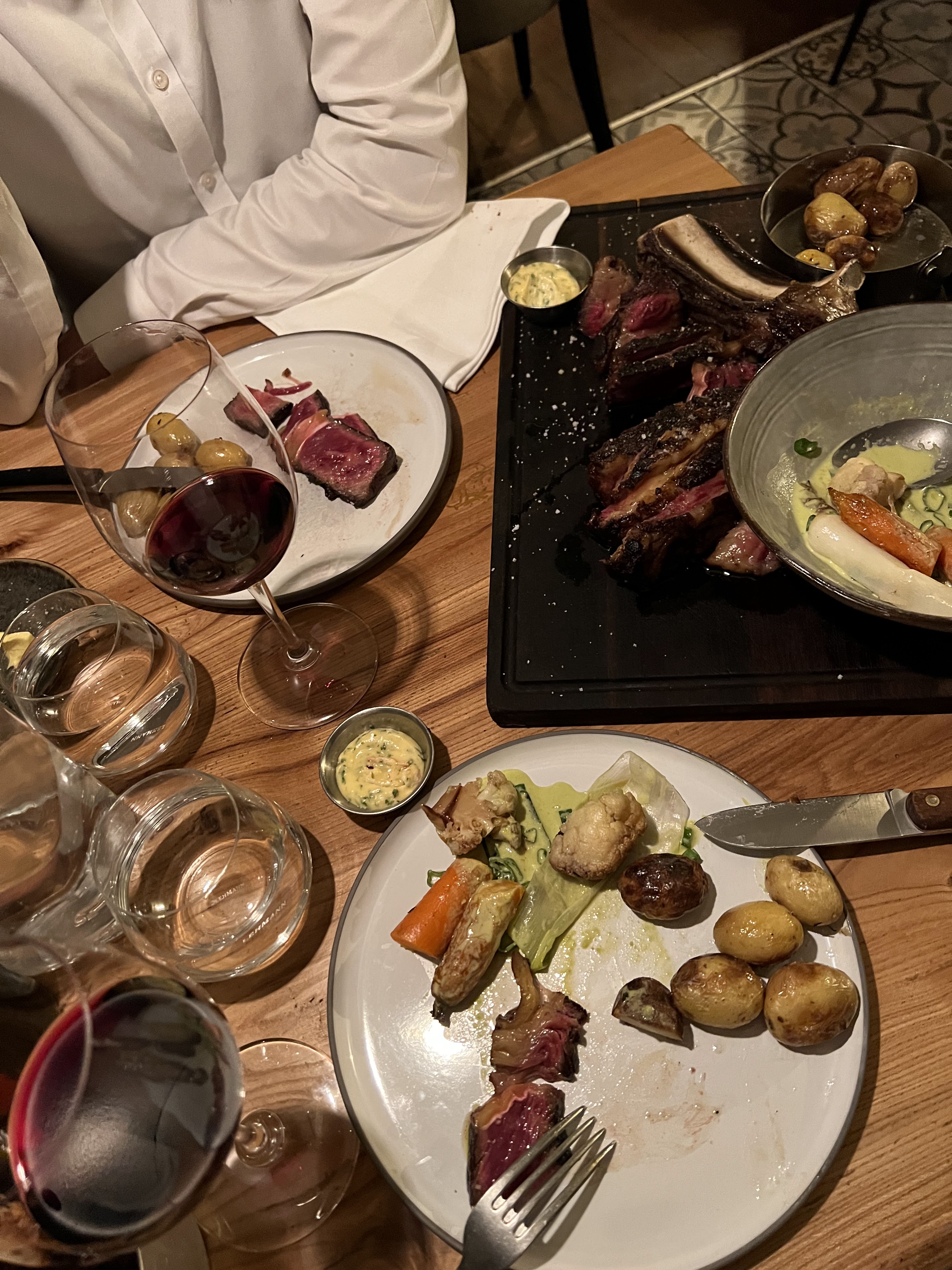 Viande excellente. Au moment de commander on nous apporte à table une sélection de morceaux pour que tu puisses choisir. Un sans faute, de l’entrée au dessert. Par contre c’est un peu cher, 230e pour 2 personnes (2 entrées, 2 desserts, 1,3kg de côte de bœuf (croisée), 1 verre de vin).
