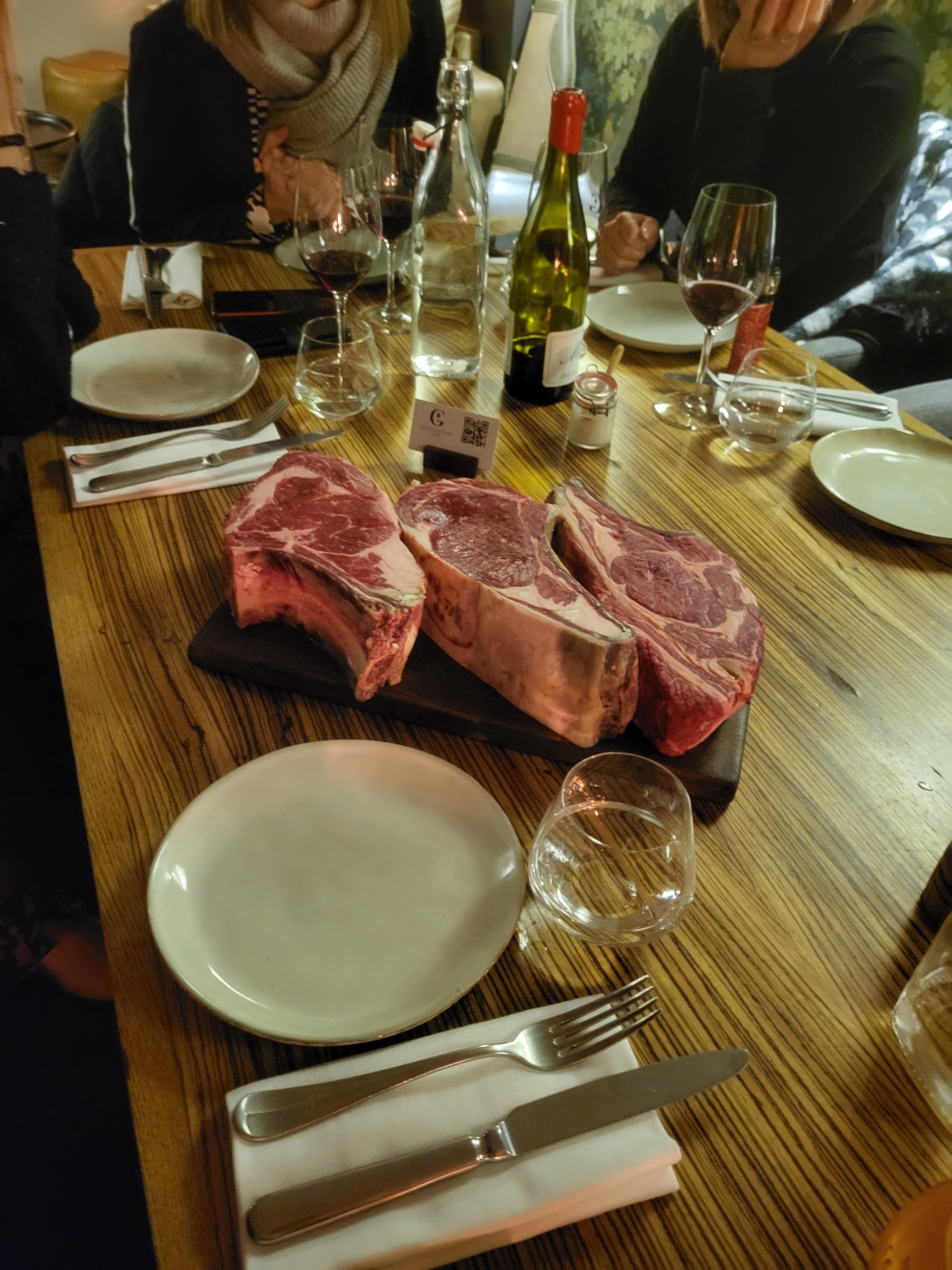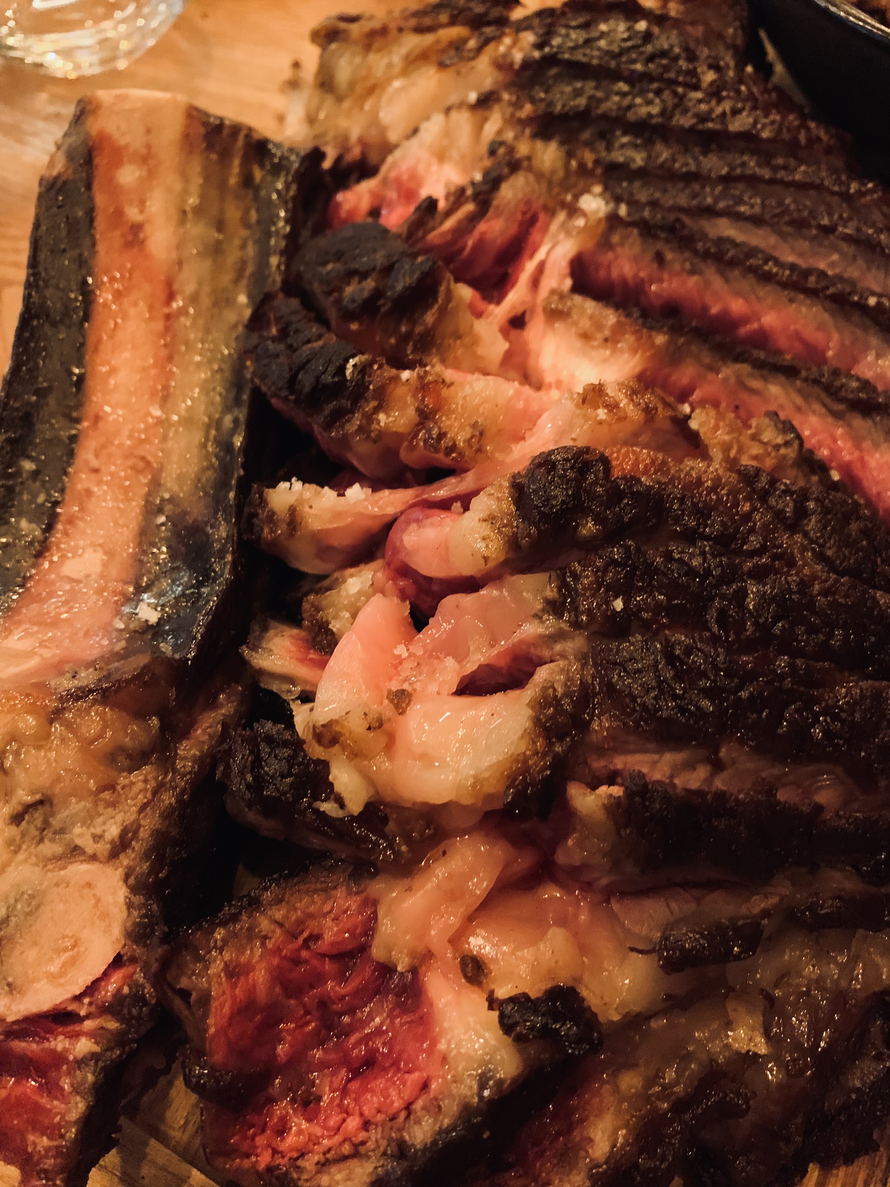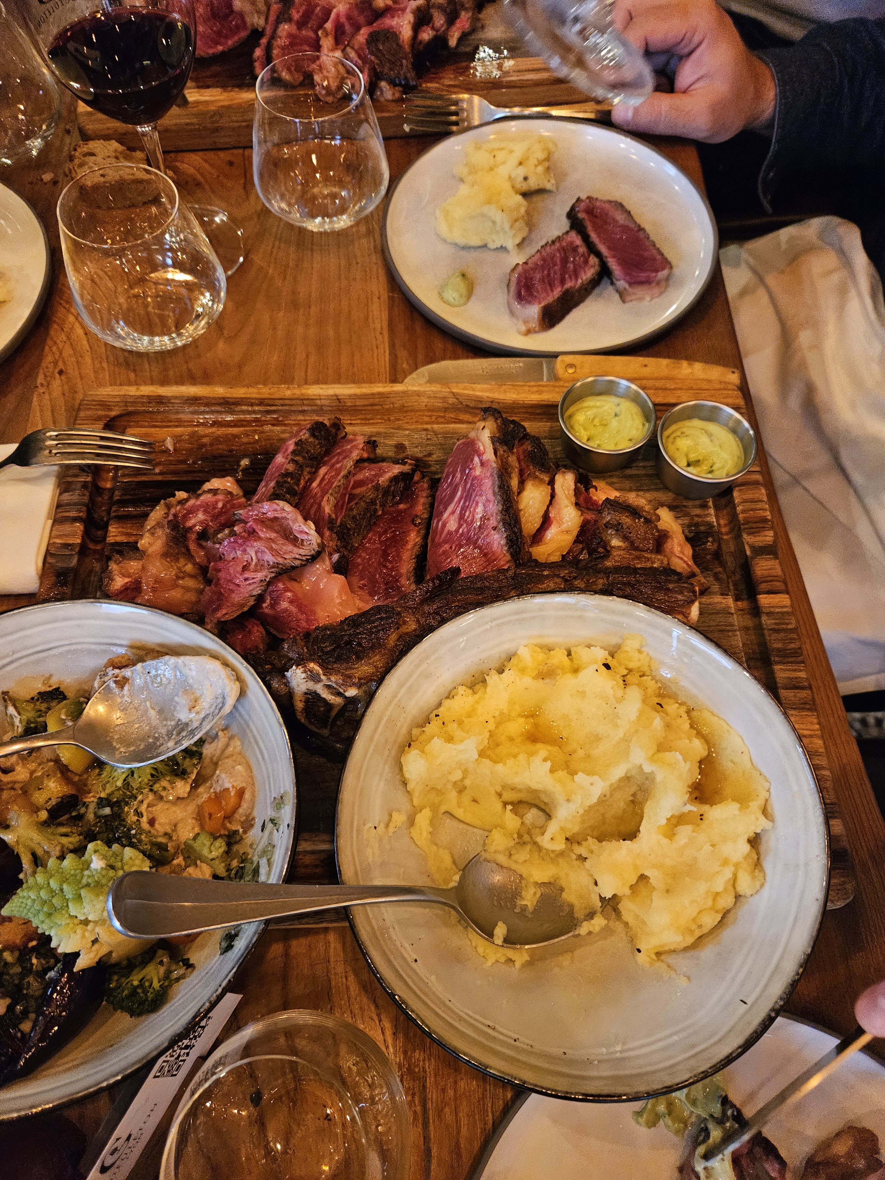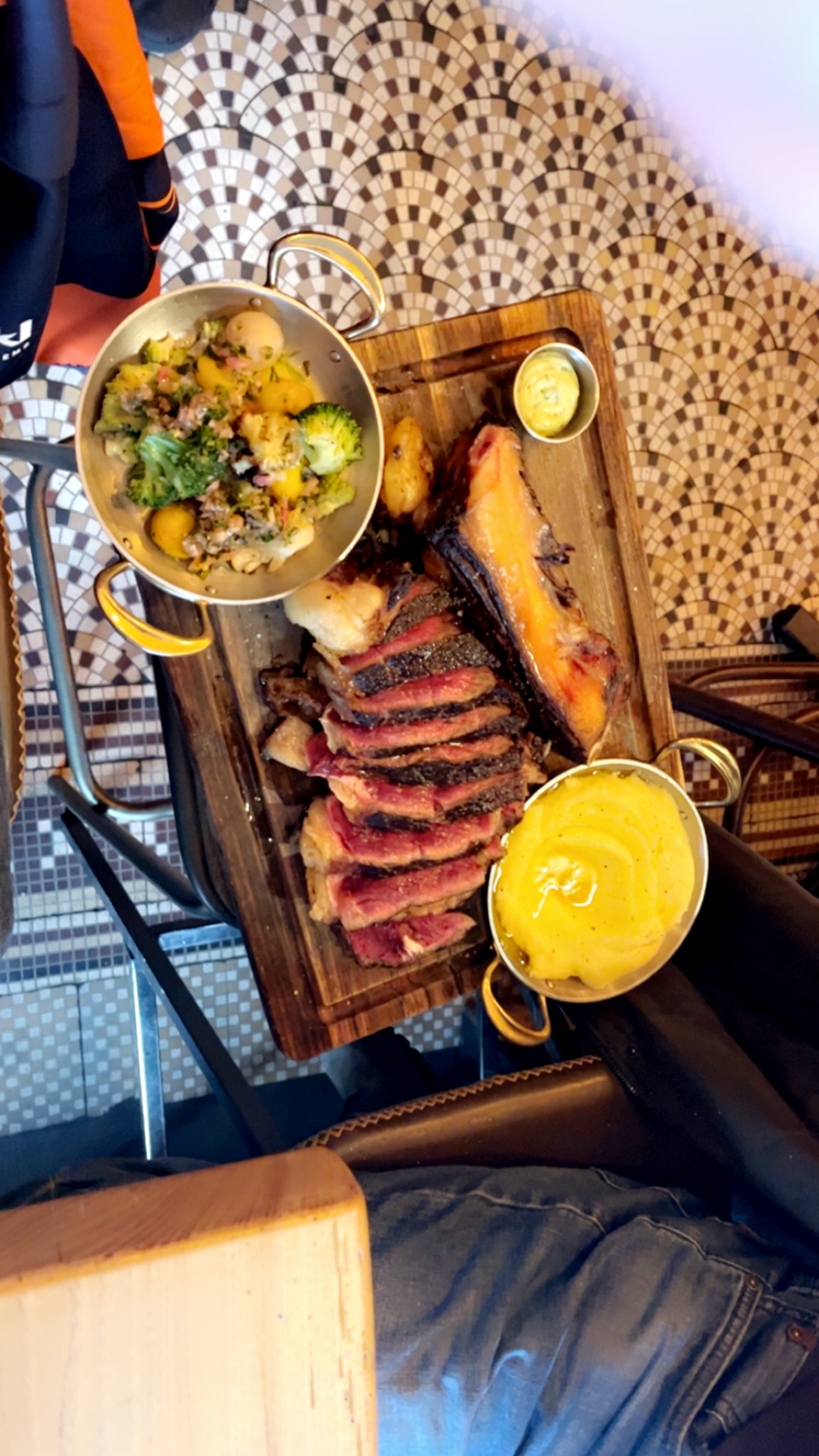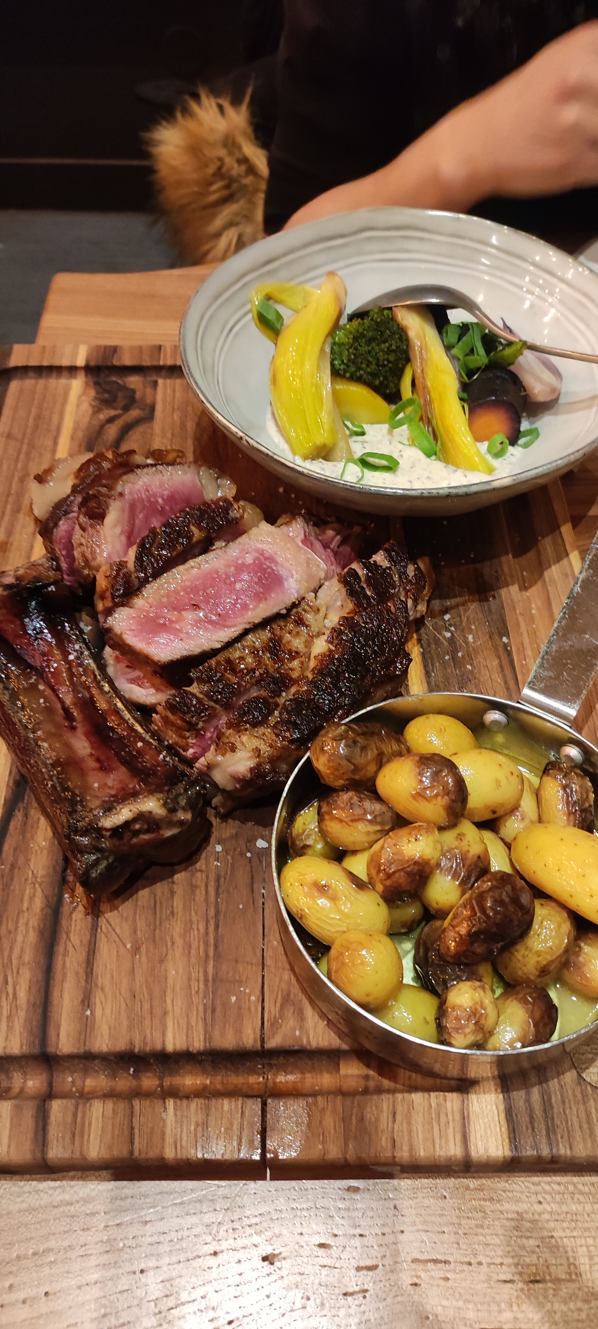 Viande excellente. Au moment de commander on nous apporte à table une sélection de morceaux pour que tu puisses choisir. Un sans faute, de l’entrée au dessert. Par contre c’est un peu cher, 230e pour 2 personnes (2 entrées, 2 desserts, 1,3kg de côte de bœuf (croisée), 1 verre de vin).