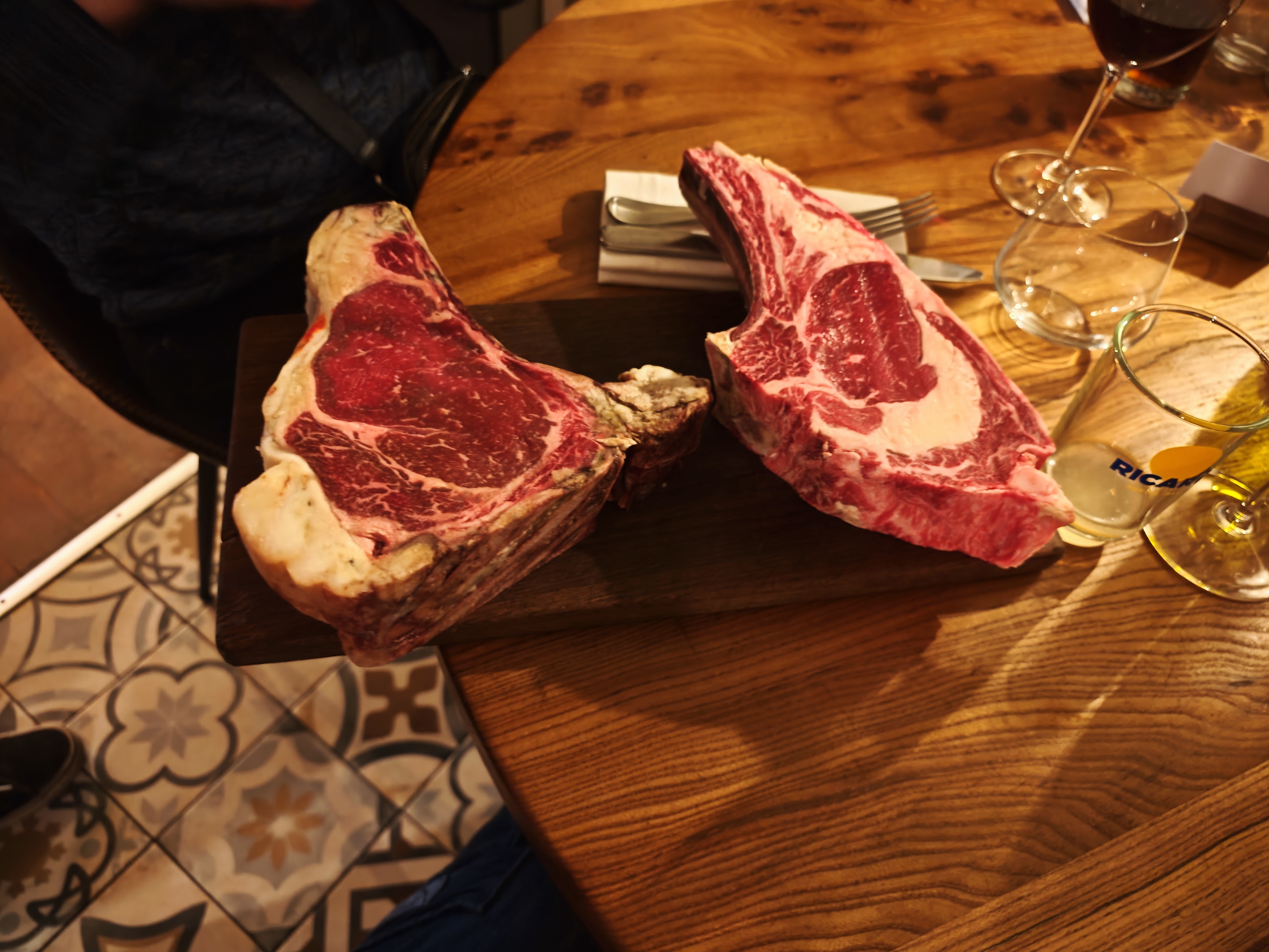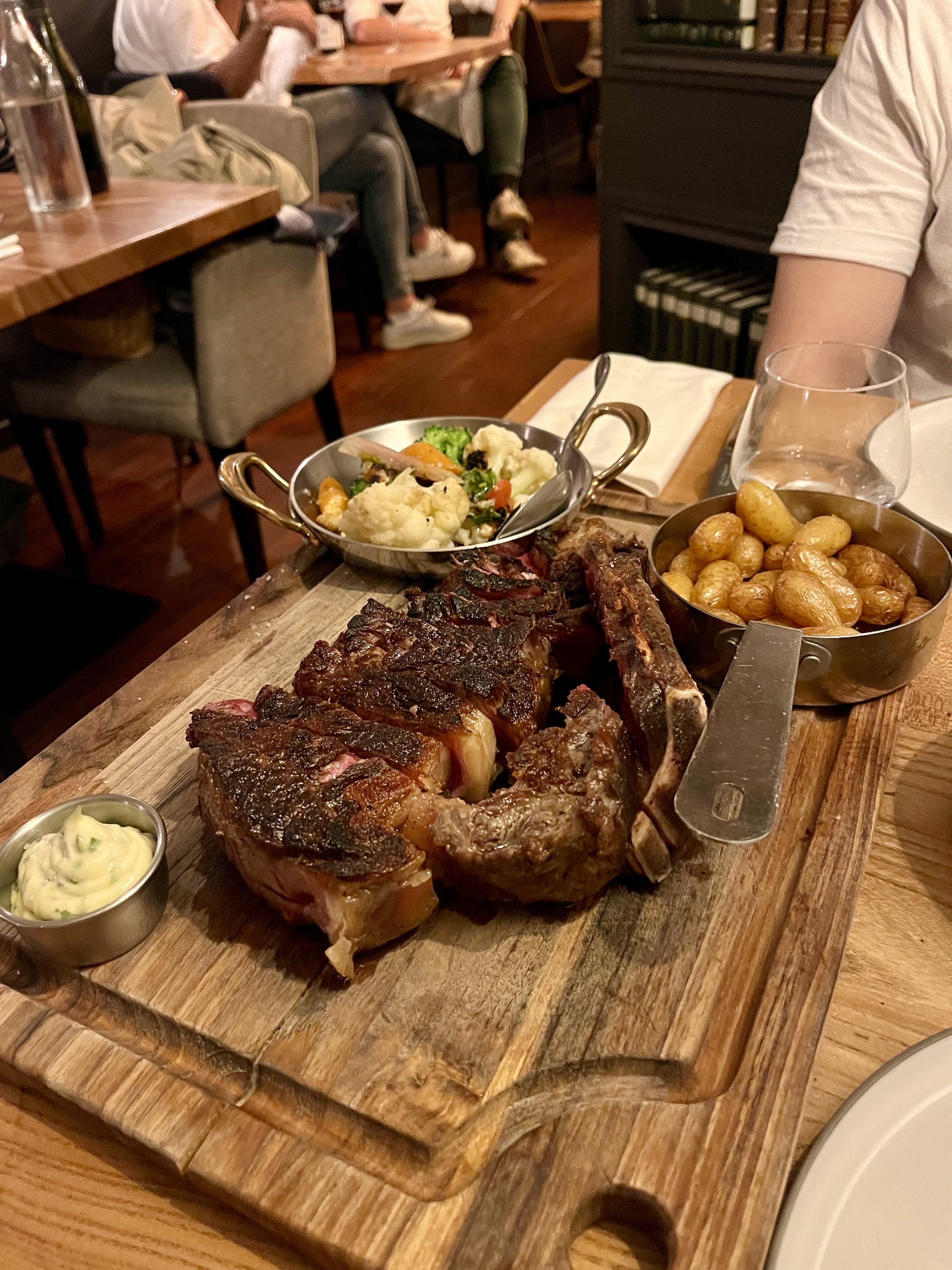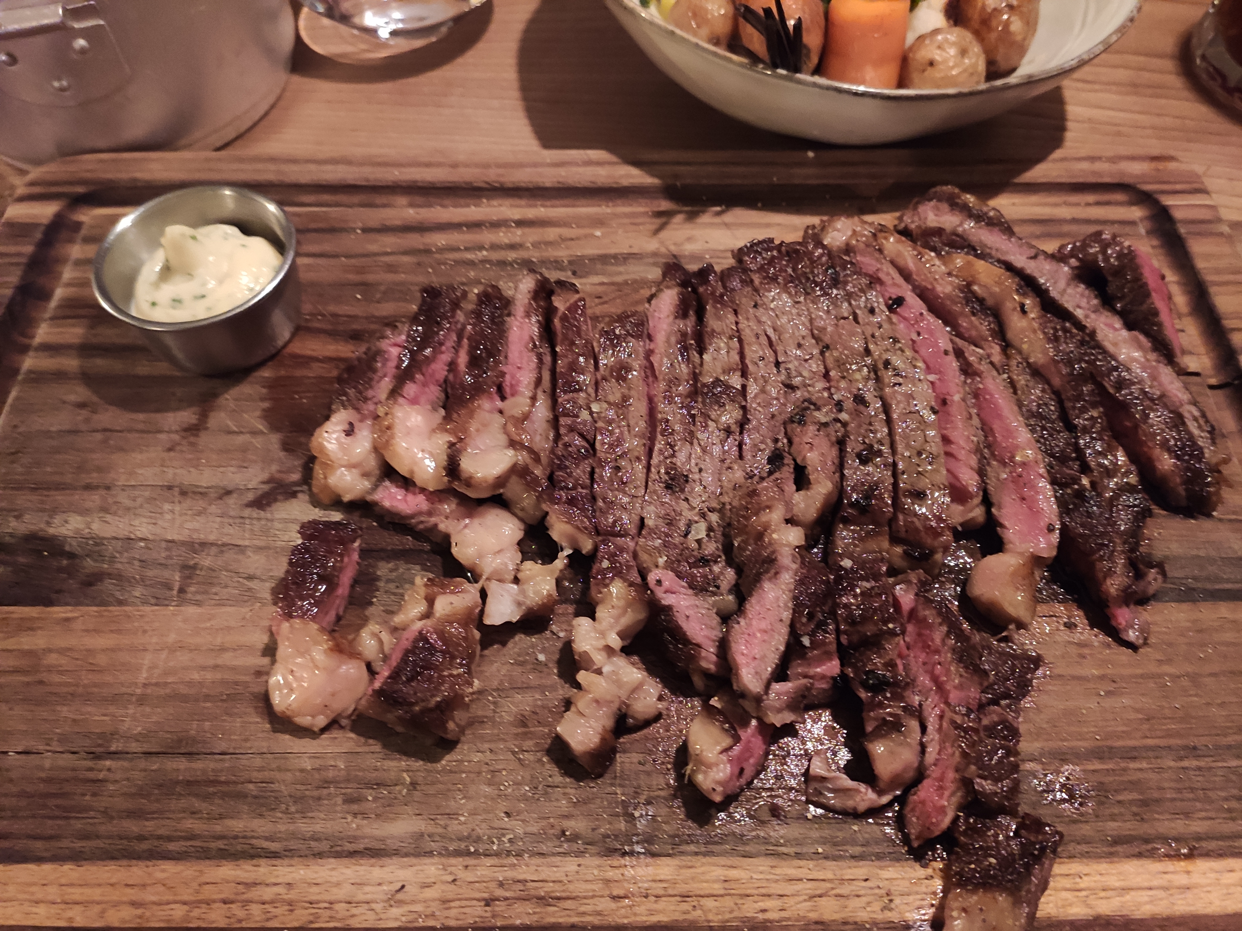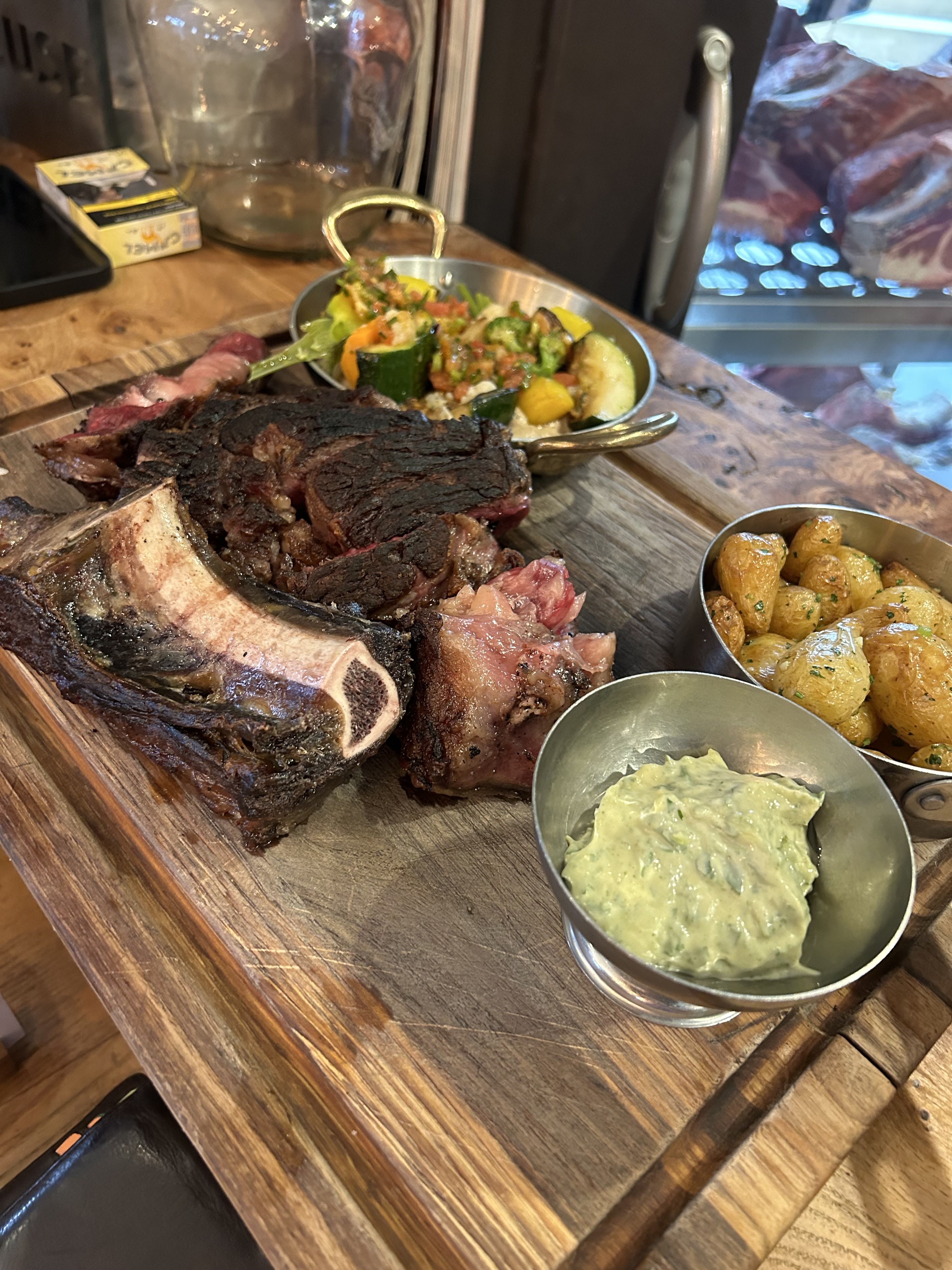 Viande excellente. Au moment de commander on nous apporte à table une sélection de morceaux pour que tu puisses choisir. Un sans faute, de l’entrée au dessert. Par contre c’est un peu cher, 230e pour 2 personnes (2 entrées, 2 desserts, 1,3kg de côte de bœuf (croisée), 1 verre de vin).