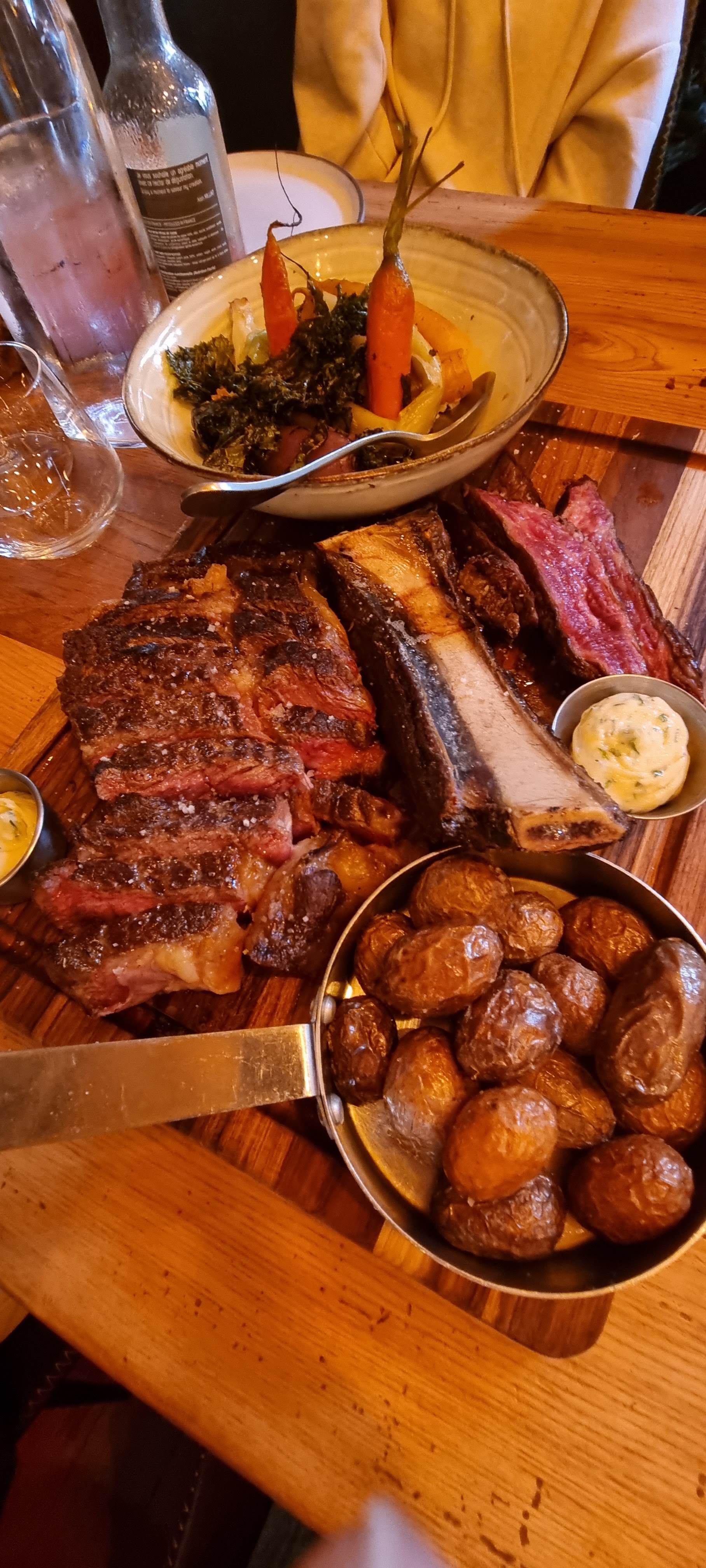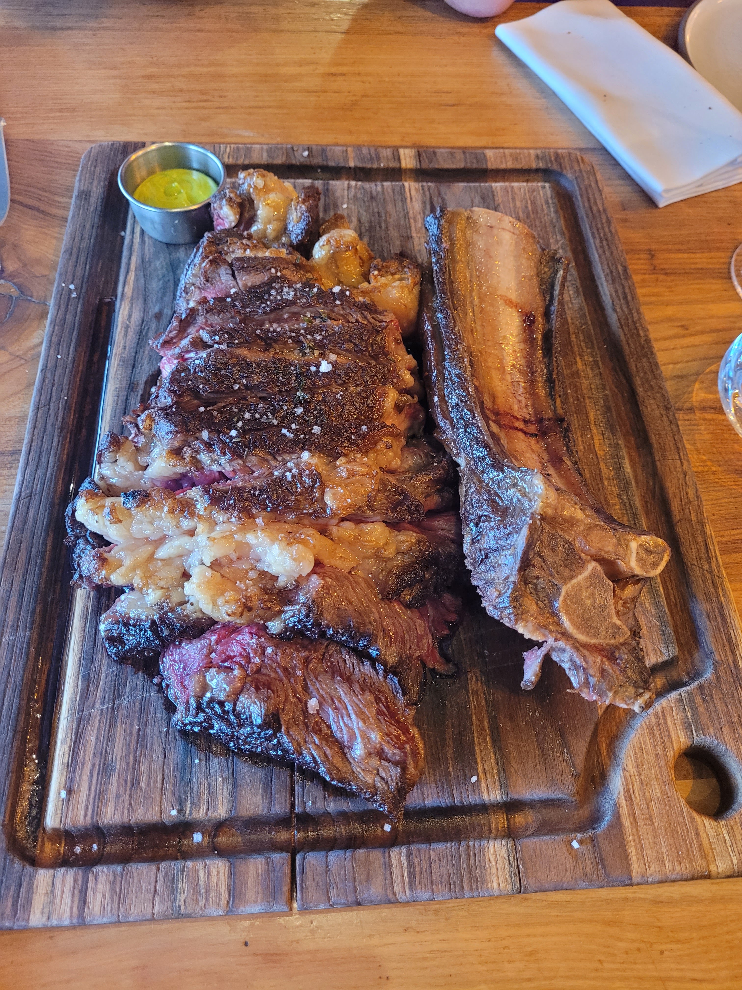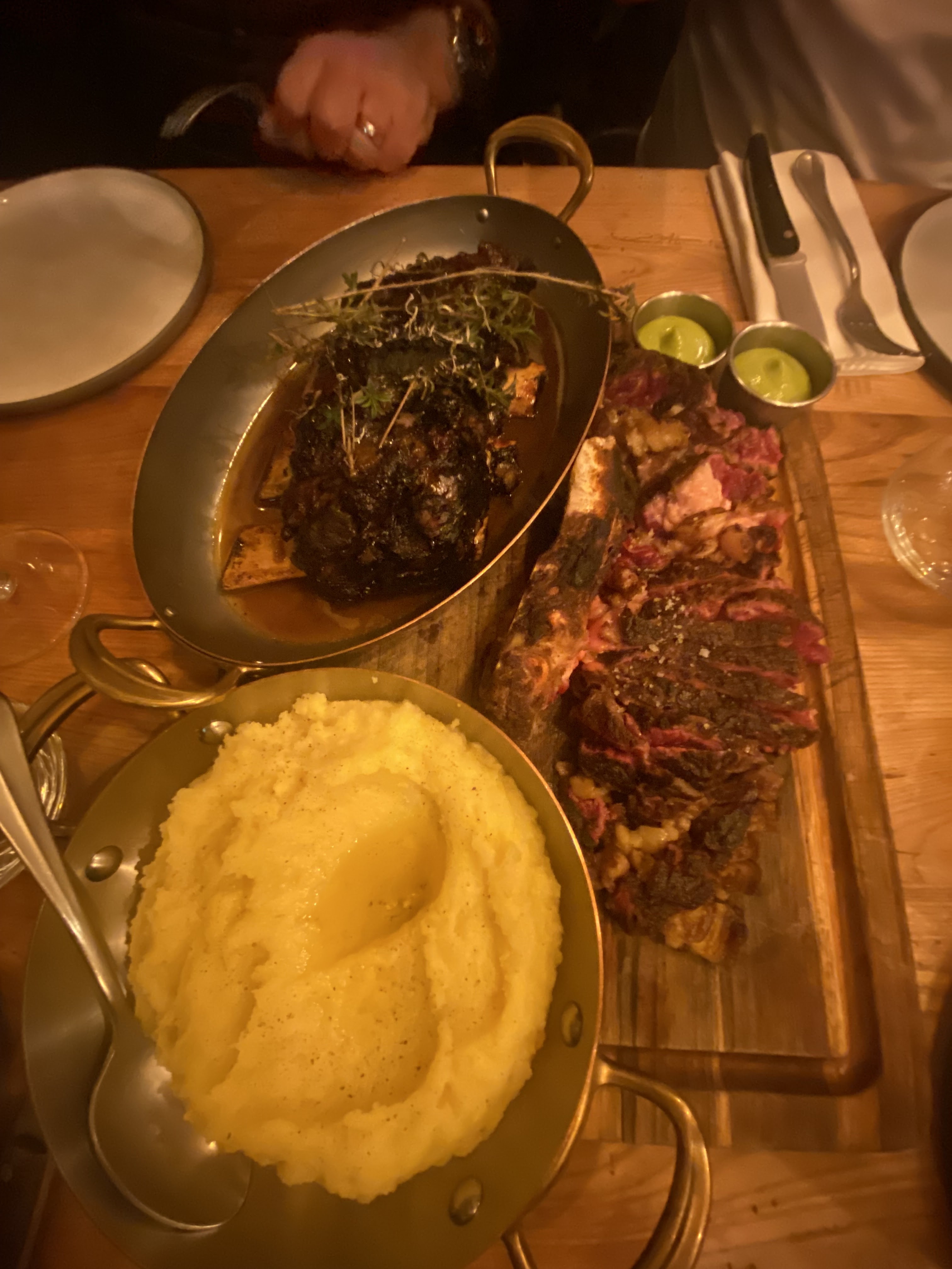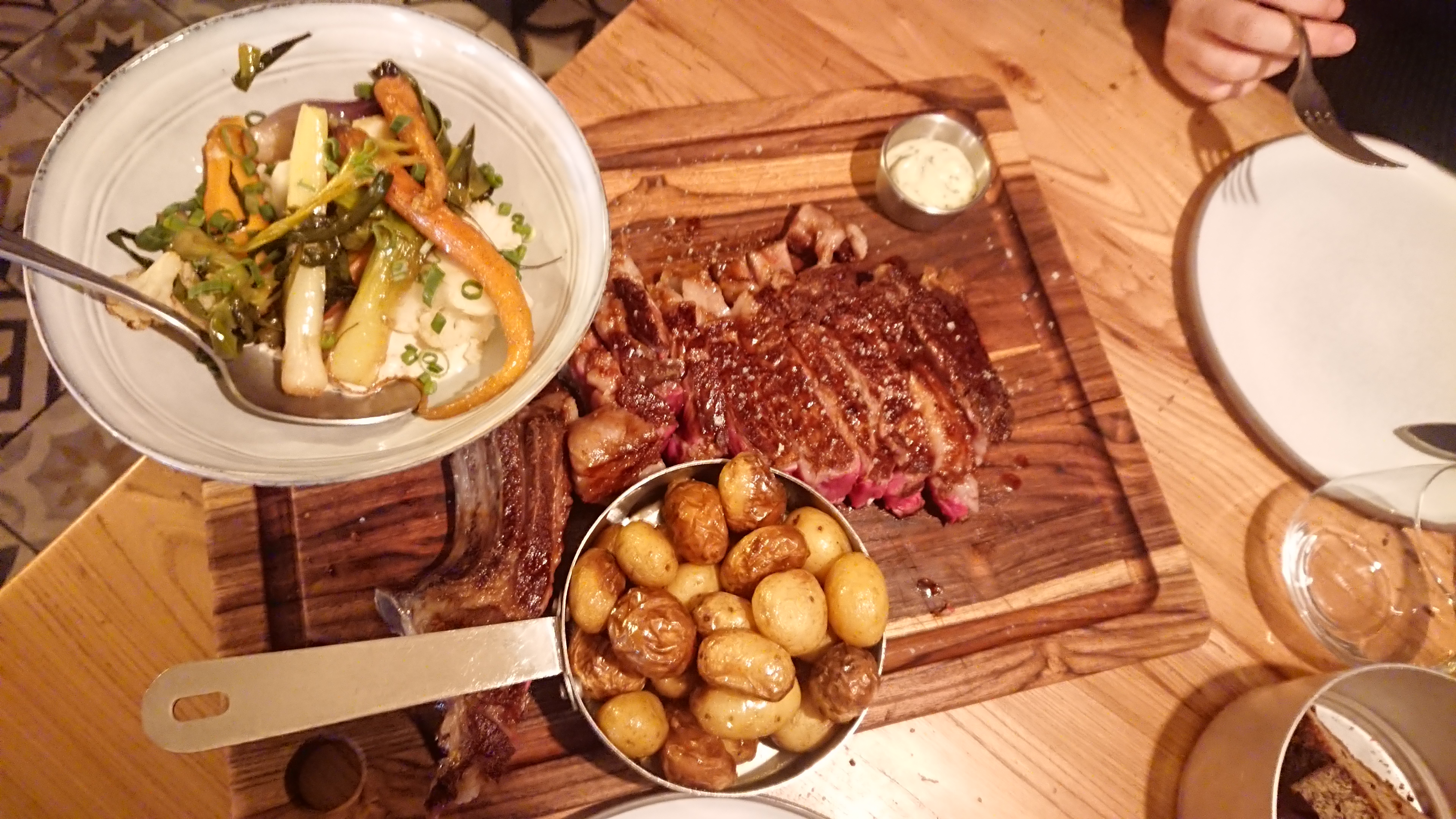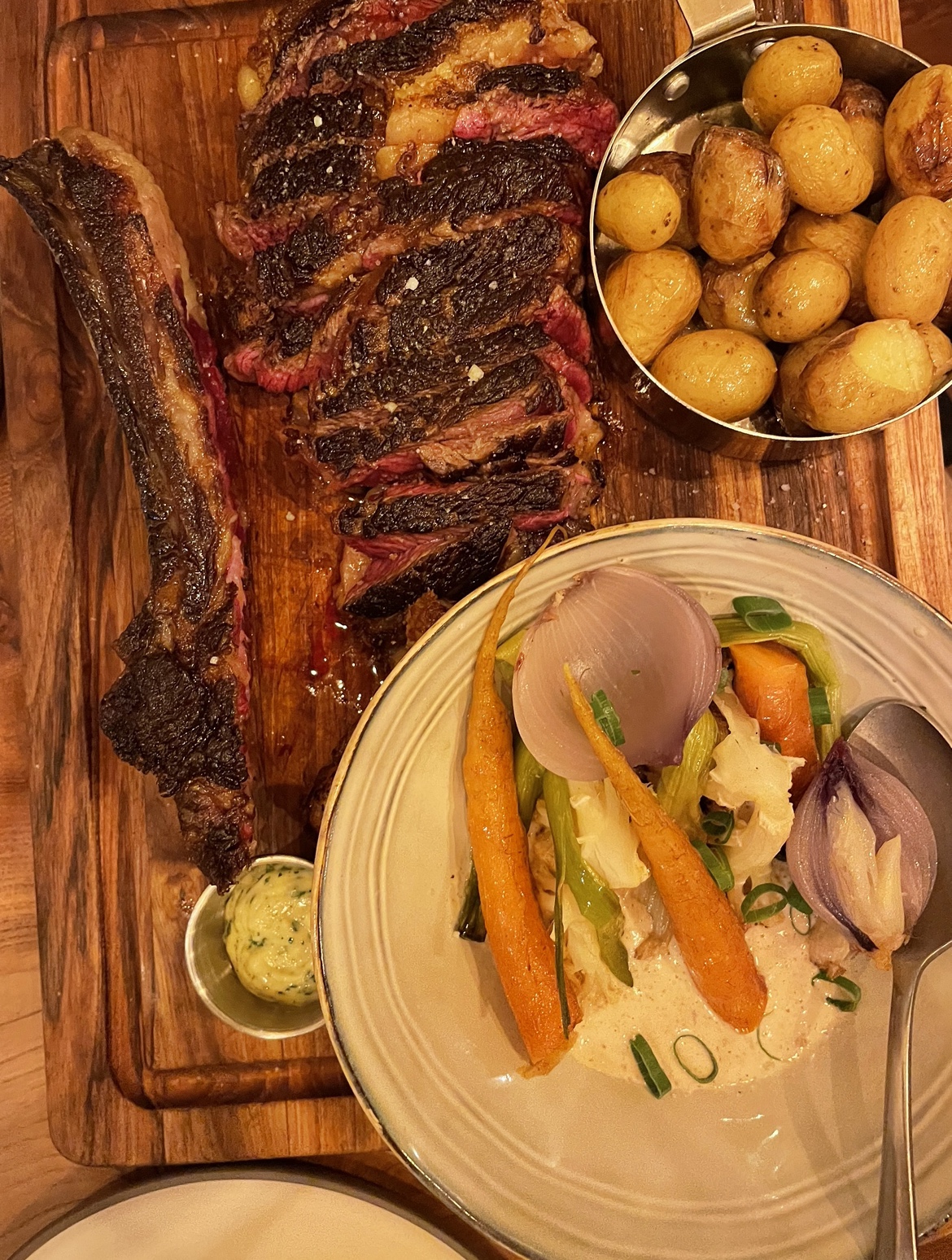 Viande excellente. Au moment de commander on nous apporte à table une sélection de morceaux pour que tu puisses choisir. Un sans faute, de l’entrée au dessert. Par contre c’est un peu cher, 230e pour 2 personnes (2 entrées, 2 desserts, 1,3kg de côte de bœuf (croisée), 1 verre de vin).