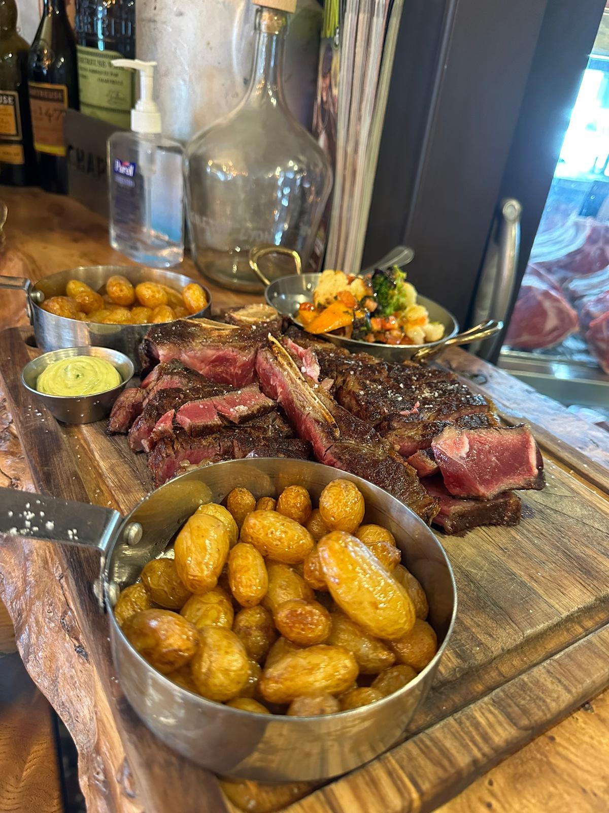 Très bon accueil ! Jolies assiettes bien copieuses ! Seul bémol mon mari a pris une pièce de bœuf de 400g (car je n’en voulais pas) et du coup elle était fine et trop cuite …..il faut vraiment y aller dans le but de partager les viandes ! Même trop cuite elle était bonne et fondante !