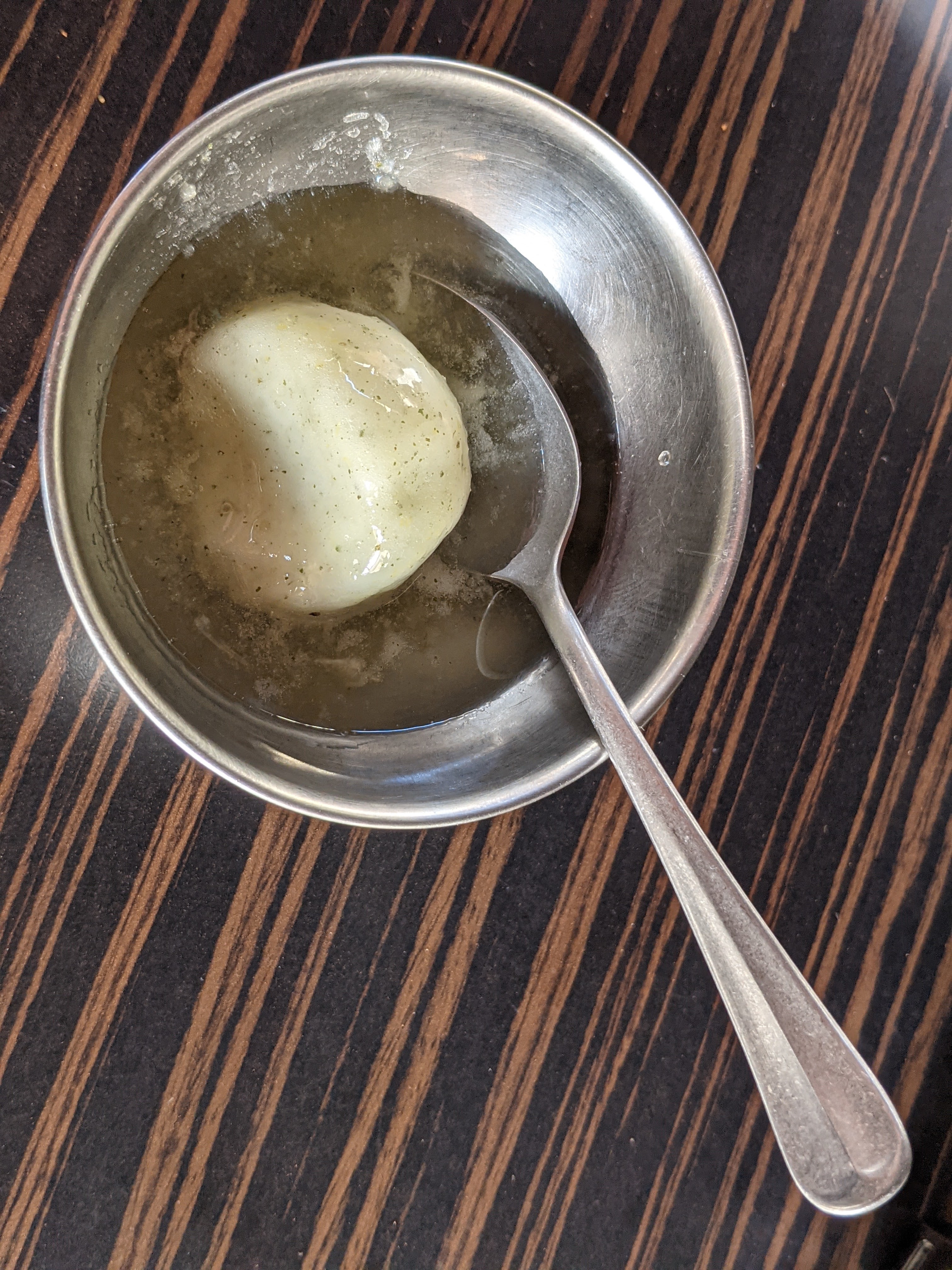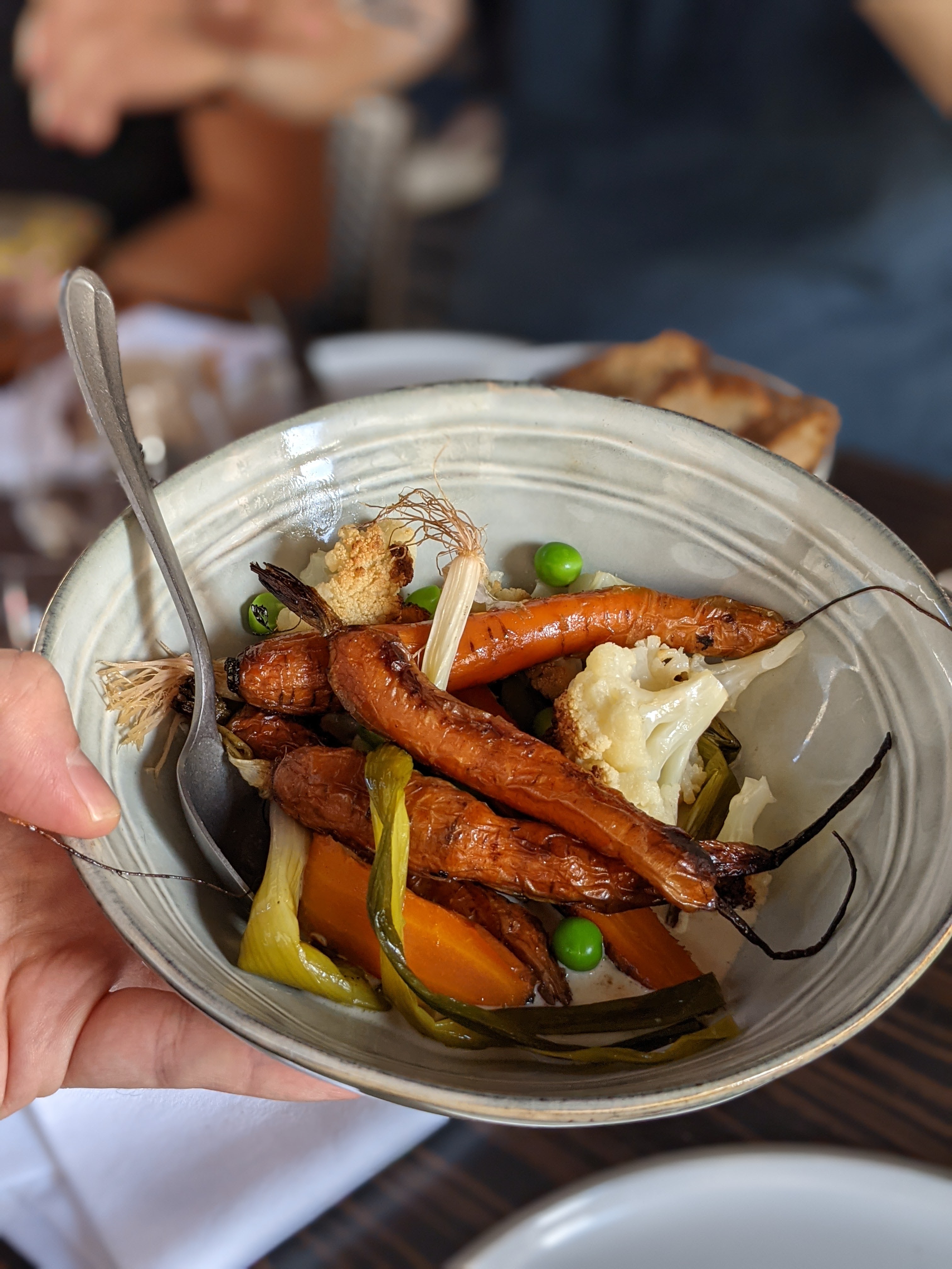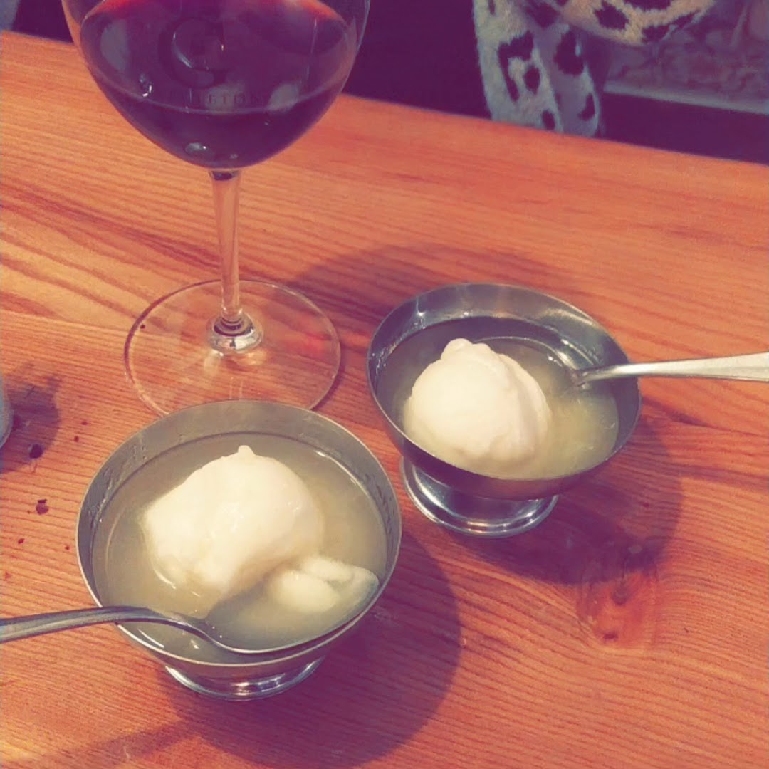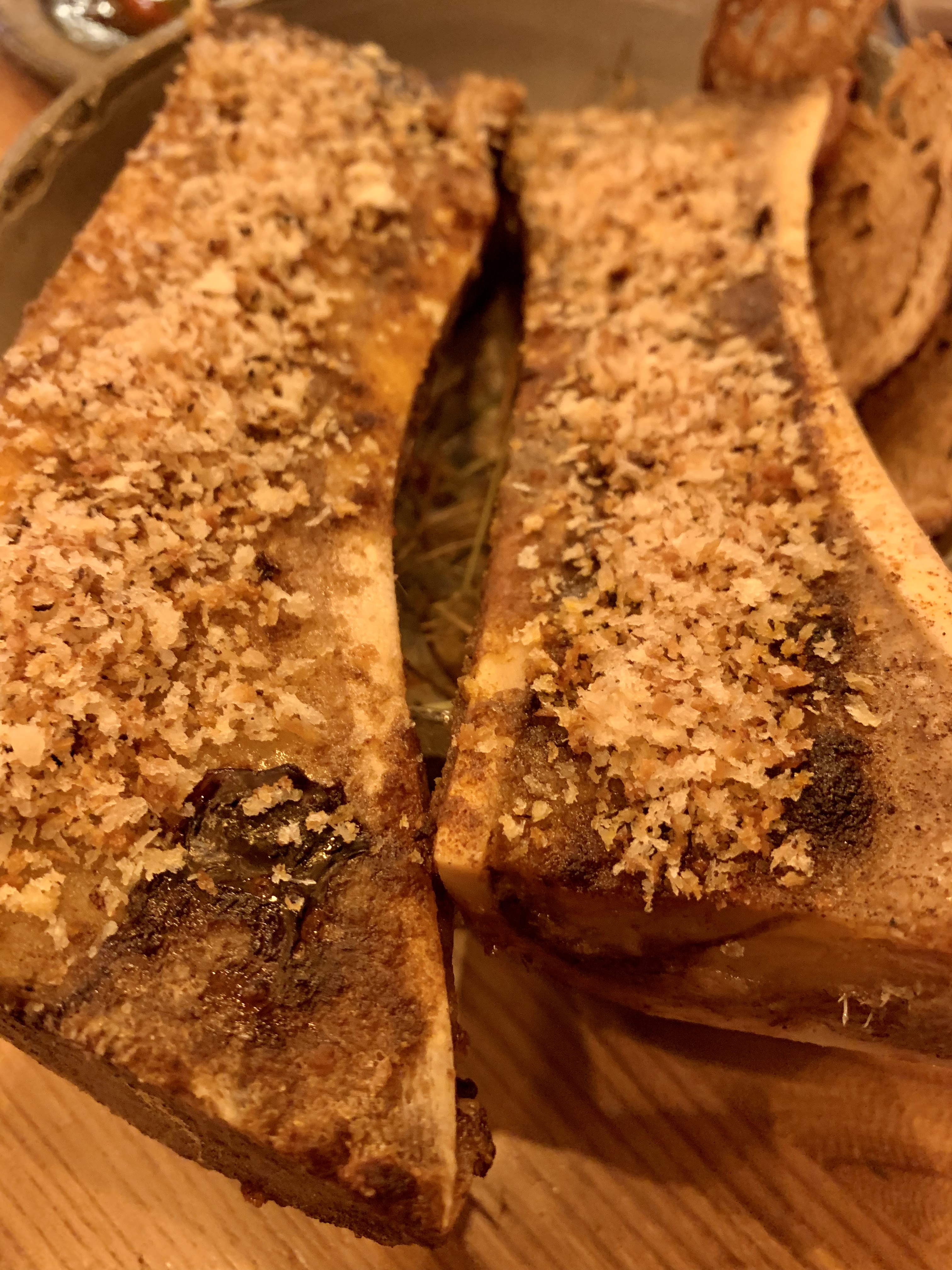 Os à moelle, oeufs mimosas, boudin noir et asperges, un régale. Nous n’avions pas assez faim pour les viandes qui avaient cependant l’air délicieuses, mais ces entrées ont été tellement à la hauteur qu’aucun regret n’a été éprouvé. Le service chaleureux, drôle et efficace. Un très bon vin blanc de Chenin. Gueuleton toujours aussi incroyable !