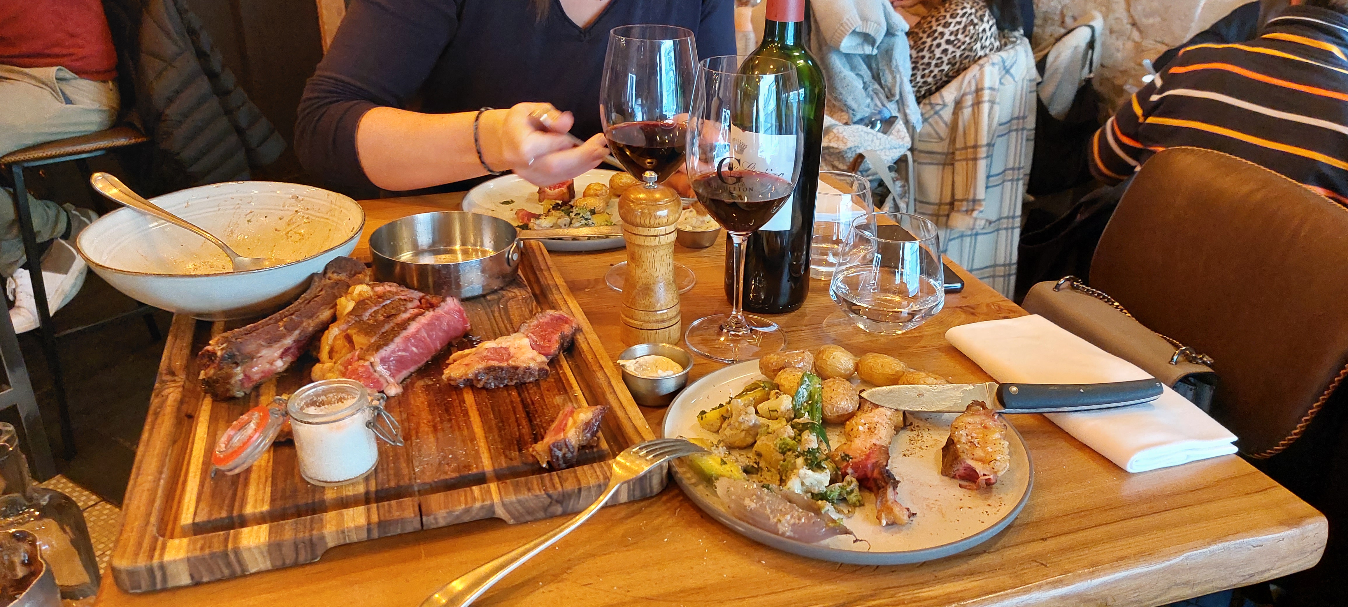 Gueuleton Les réseaux sociaux, m’ont fait découvrir cette adresse sur Lyon, typique d’une chaîne que l’on peut retrouver dans différentes grandes villes, où l’ont ce faire plaisir ? Autour d’une bonne viande grillée. Différentes côtes de bœuf sont proposés pour patienter une petite carte d’entrée, qui nous a vraiment surpris. Ça reste tout de même un certain coup Compter 200 € à deux . Je pense qu’il faut le faire une fois. le concept est très bon.