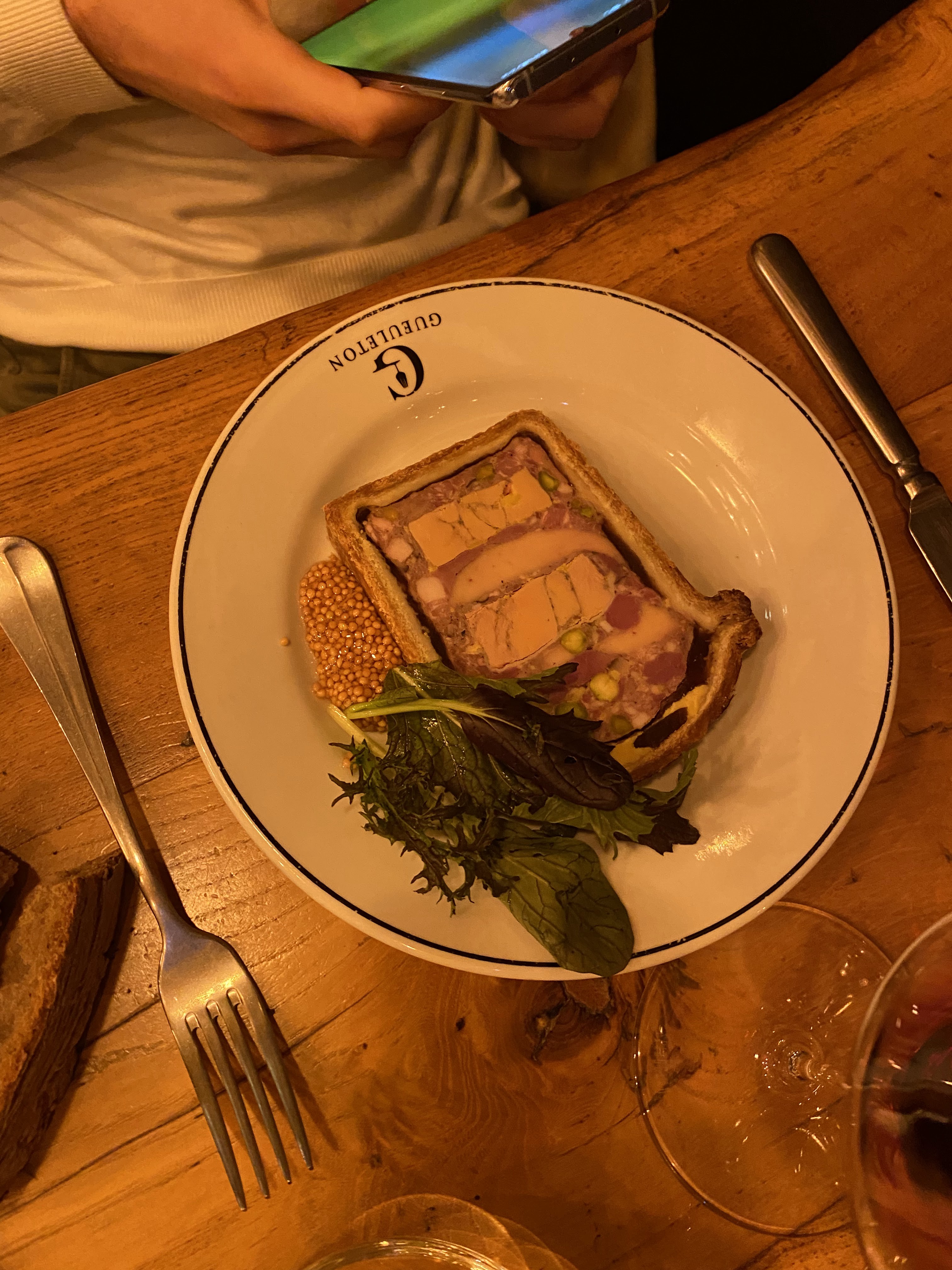 Des mois que je suis Gueuleton - Lyon sur les réseaux, l'eau à la bouche à chaque post, il était temps de me faire mon propre avis... J'ai adoré du début à la... faim ! L'ambiance tout d'abord, cosy, chaleureuse, pas sans chichi, mais juste ce qu'il faut pour ne pas se sentir à la cantine non plus, les entrées et les desserts, des grands classiques avec une pointe de personnalisation, ont ce côté à la fois réconfortant et travaillés, un régal. Et puis la viande, une côte de bœuf pour nous, choisie sur planche parmi 3 propositions selons nos aspirations. C'est la première fois de ma vie que je mange une côte aussi saignante, j'ai beau être charolais j'ai tjs poussé mes cuissons jusqu'au cran a point, mais là... je me suis régalé la saisie était parfaite ! Merci à toute l'équipe pour ce moment des plus agréables, nous reviendrons et avec grand plaisir... et appétit !