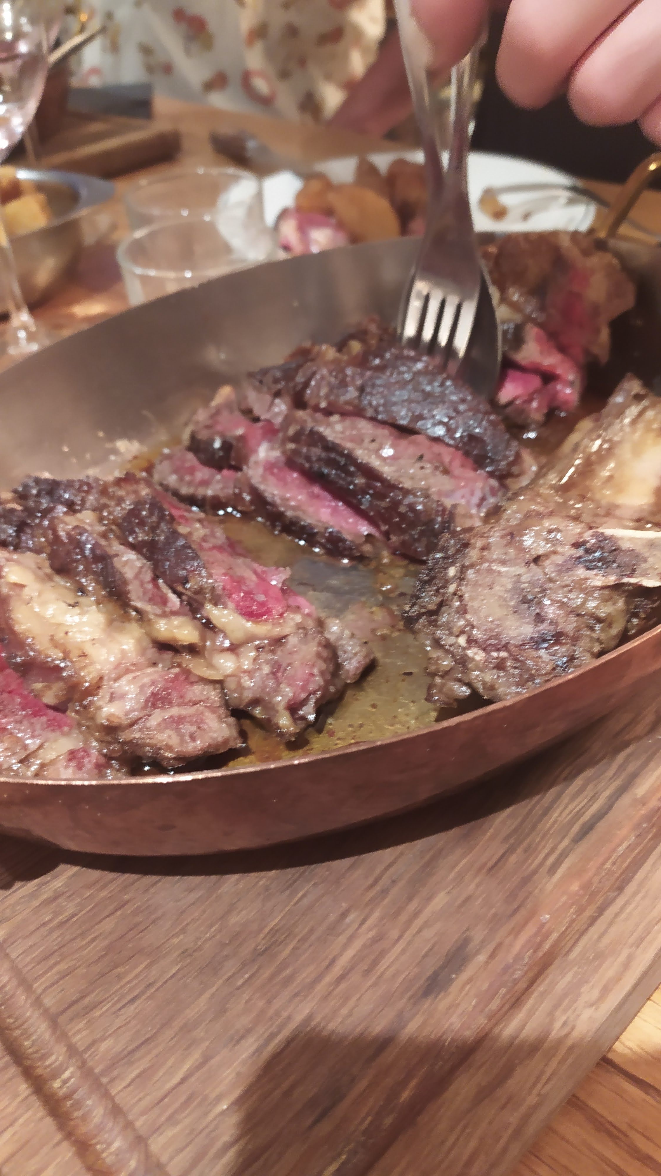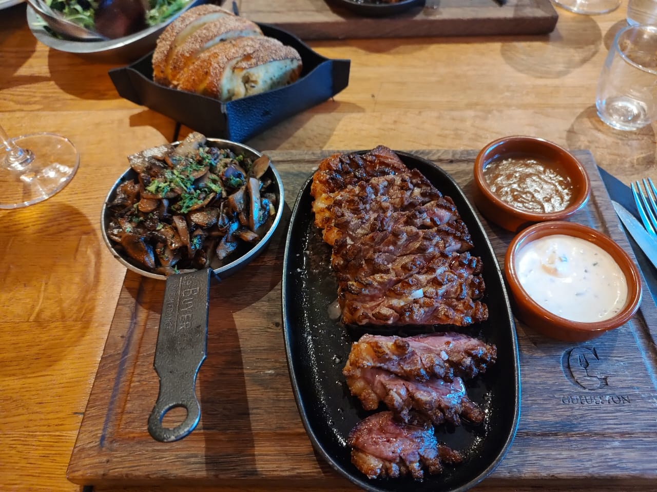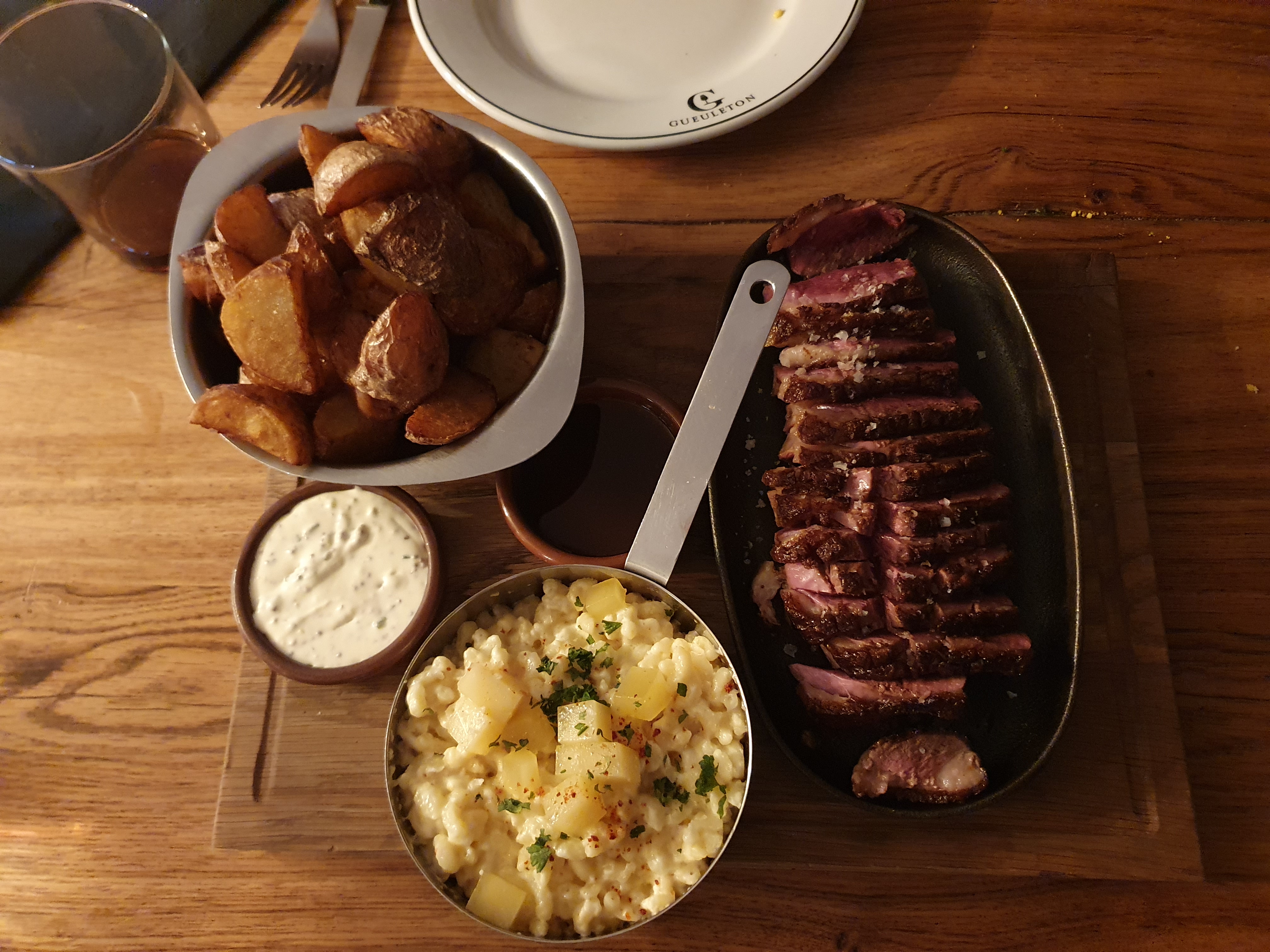 Endroit très sympa, service impeccable, Viande excellente....malgré le prix .. élevé....étant amateur de côte de bœuf , Il y a de très bon resto dans la ville ,qui en propose aussi (cote de Galice par exemple) A un prix raisonnable. On paye je pense la réputation de l enseigne Gueleton . Difficile de s'adapter à des prix qui grimpent autant. Cela dit nous avons passés une très bonne soirée.