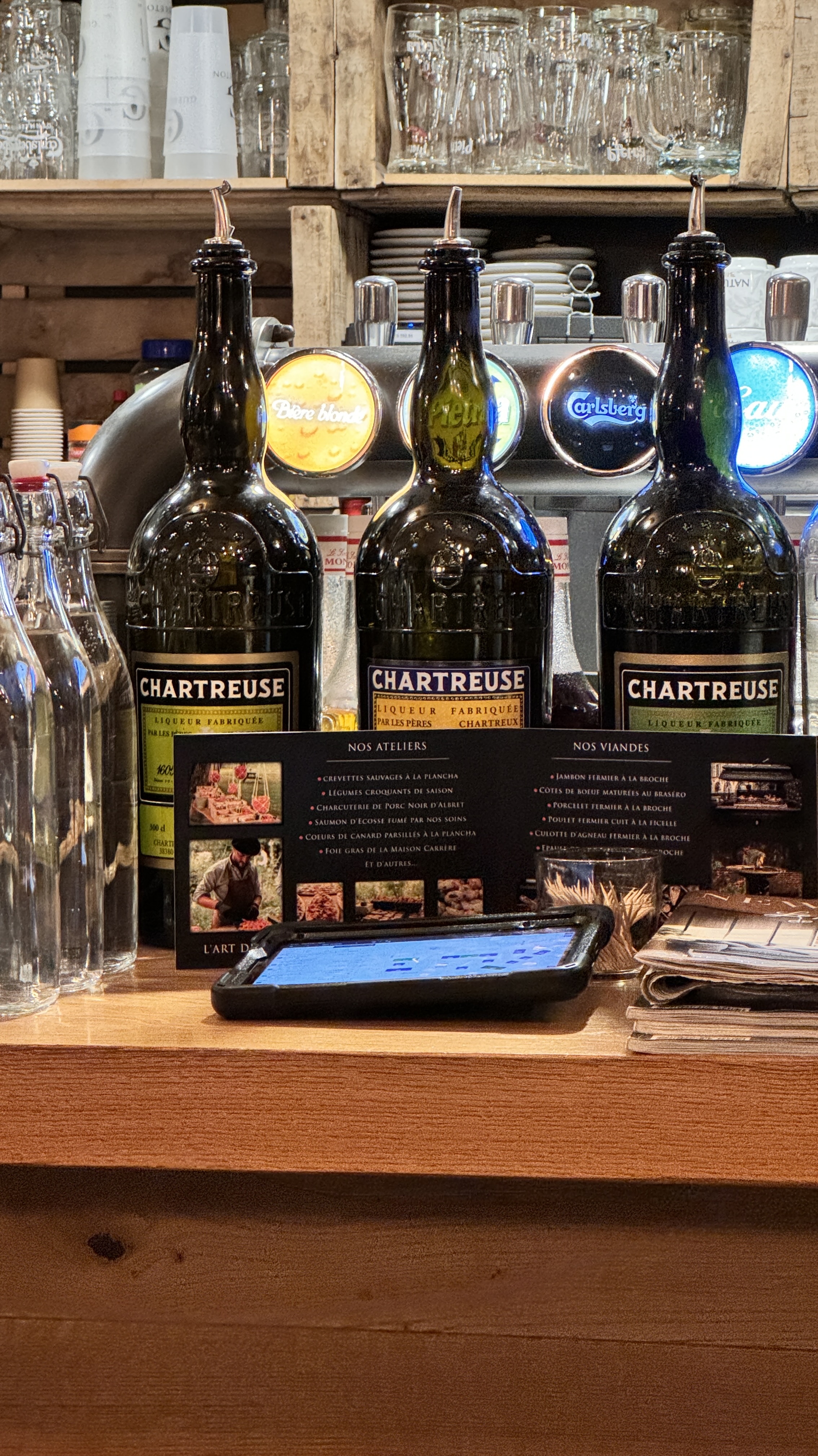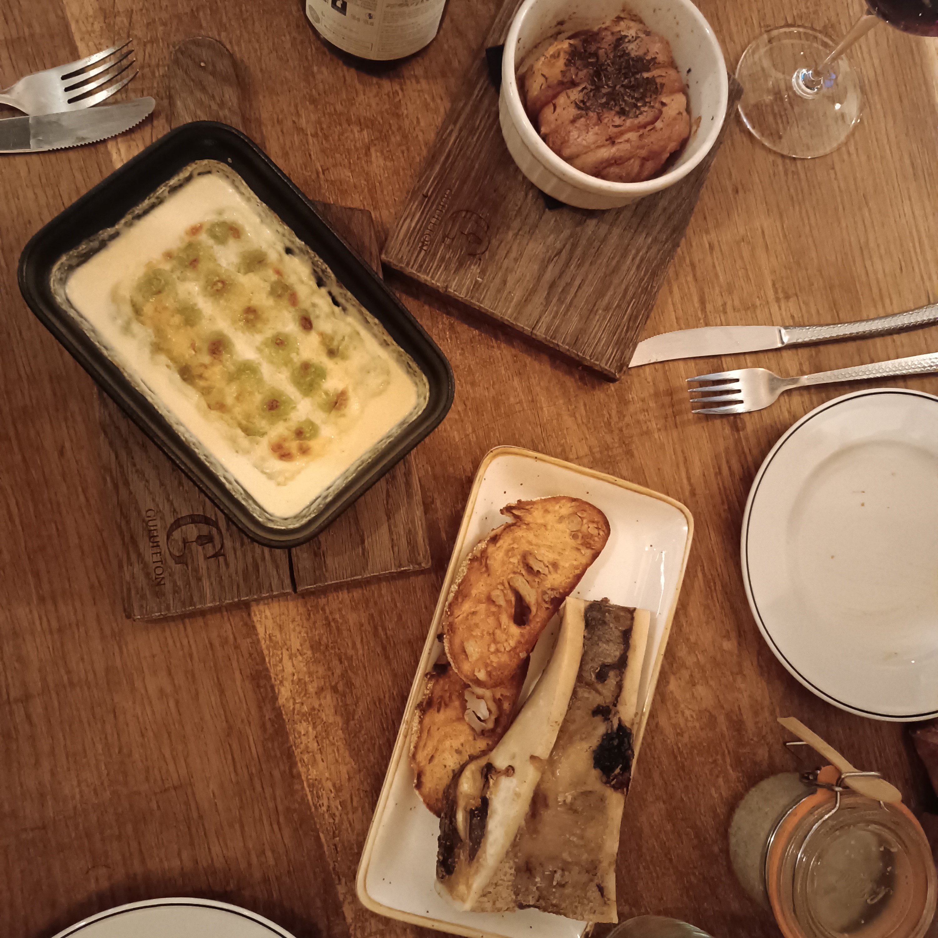 Bonnes propositions mais mal exécutées (bons morceaux de viande mais mal préparés, plats servis froids - tous sans exception, donc la moitié renvoyés en cuisine - et goût pas toujours au rendez vous), trous normands offerts pour compenser (mais comme ce n’est pas bon ça ne sert pas vraiment la cause).