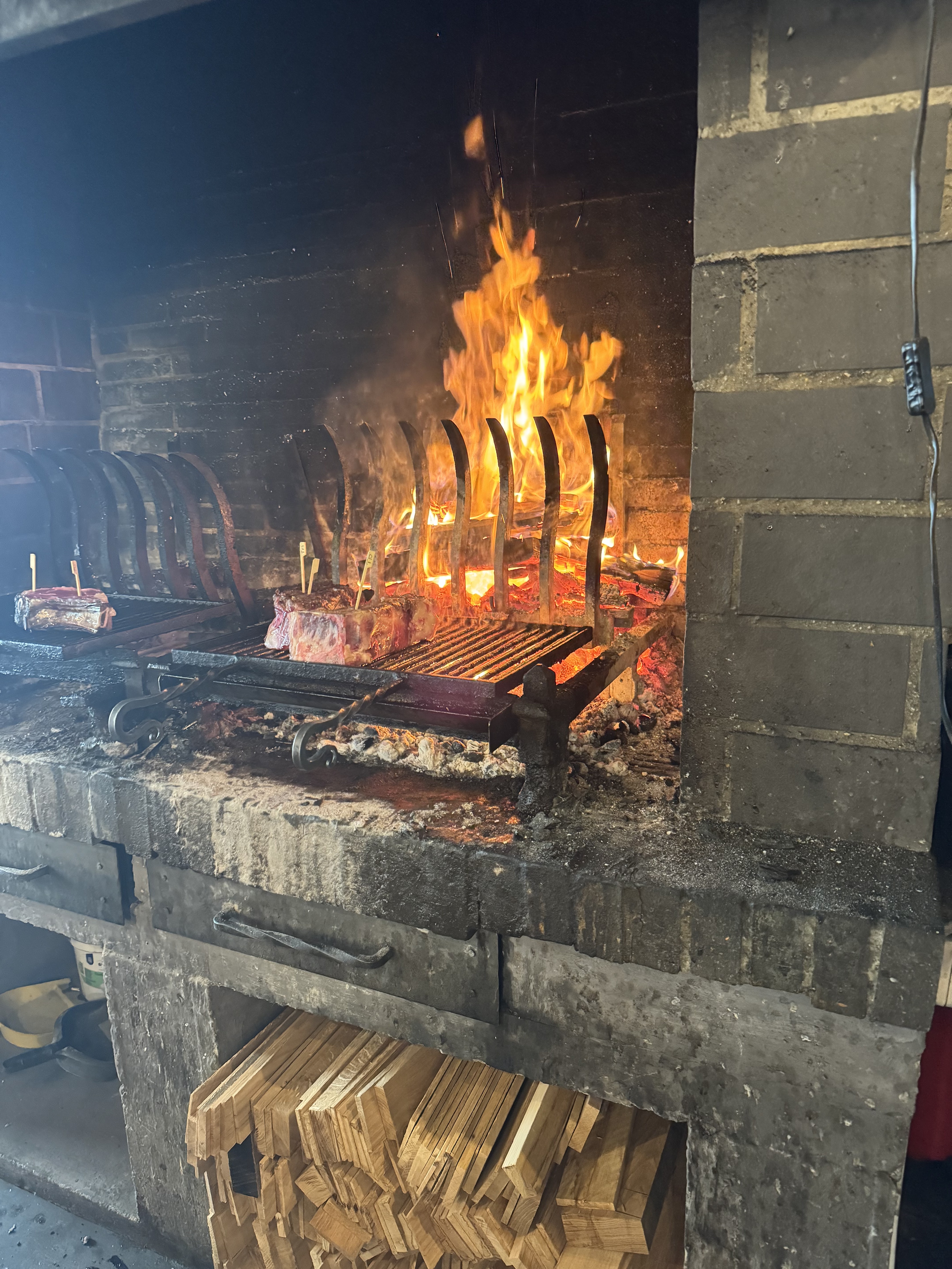 Il faut s'y attendre : quand on vient dans ce restaurant c'est que l'on aime la viande. Du veau au bœuf en passant par tout ce que je n'ai pas vu, il y a forcément de quoi satisfaire tous les goûts. La planche de charcuterie en entrée accompagnée de miches de pain, donne le ton sur le reste des plats à venir. La cave à vin est tout aussi séduisante par sa qualité que par son esthétique. La côte de bœuf à l'os est une ôde à l'amour de la viande, tendre persillée et fondante, la cuisson au feu de bois qui sublime le tout....les pommes grenailles sont à leurs place et se marient à merveille avec la viande. Le dessert très gourmand n'a fait que confirmer mon coup de cœur. L'ambiance est familiale simple et détendue, on s'y sent chez soi sans effort. Mon coup de cœur est confirmé, je ferai la route pour goûter autre chose. Je recommande ++ pour tout ce que j'y ai trouvé.