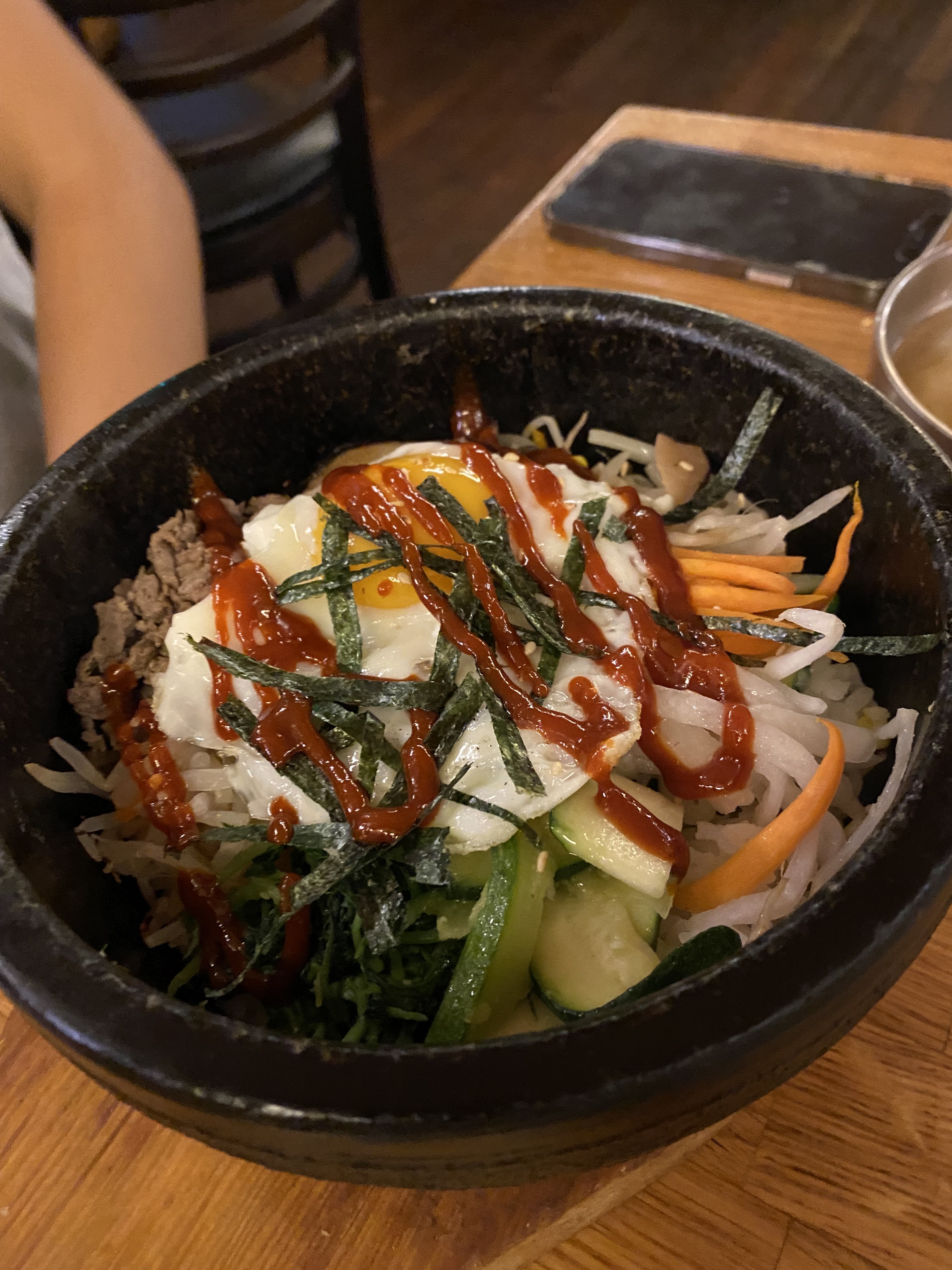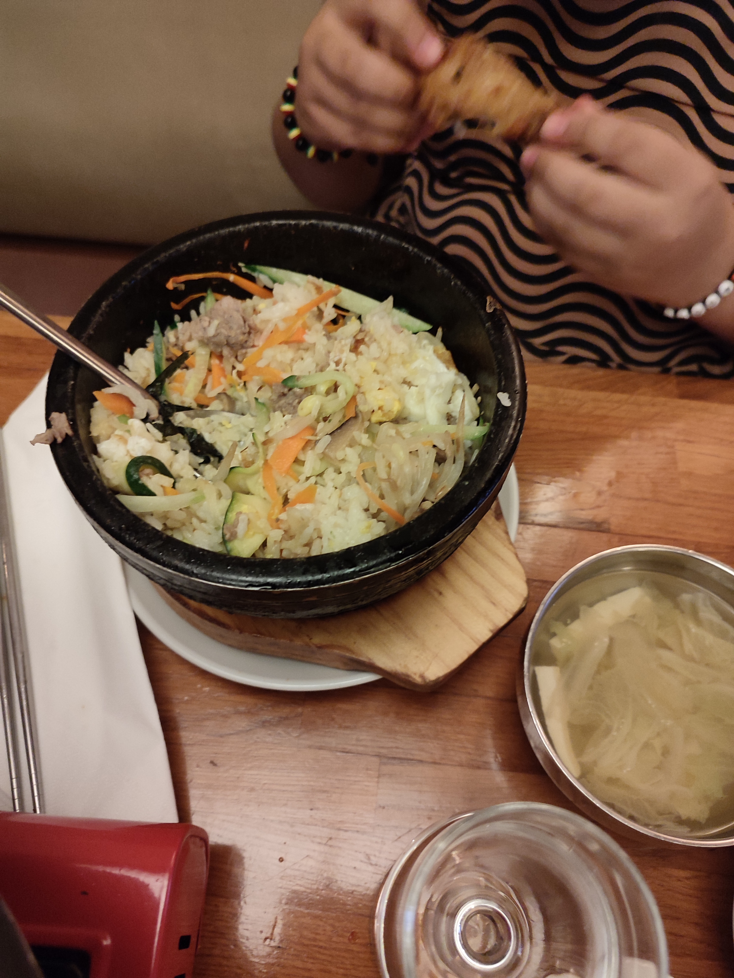 Menu Bibimbap très copieux, personnels très gentils (et très beaux) ! Endroit chaleureux mais il faut venir tôt pour être sûr d'avoir directement une place. Les prix sont très abordables ! Je reviendrai sûre et certaine !