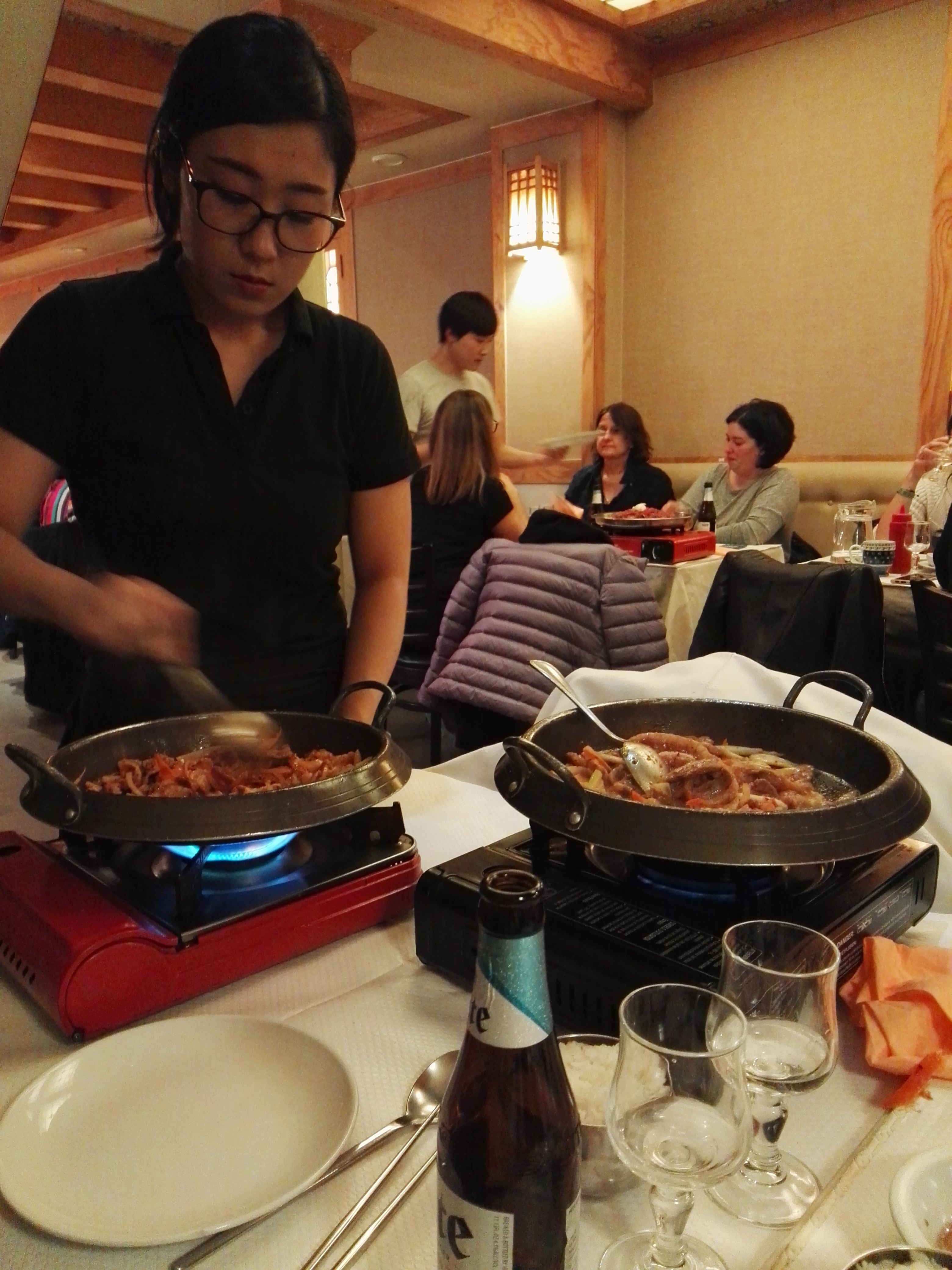 Pas mal de monde peu importe l’horaire. En conséquence de quoi mes attentes étaient peut-être trop élevées. J’ai voulu tester un bibimbap pour la première fois et j’avoue avoir été un peu déçue. C’était bon, mais rien d’extraordinaire, nourriture brûlante et sèche. Je reviendrais sûrement tester un barbecue coréen afin d’être plus objective. Sinon, une note positive pour le cadre du restaurant et le personnel