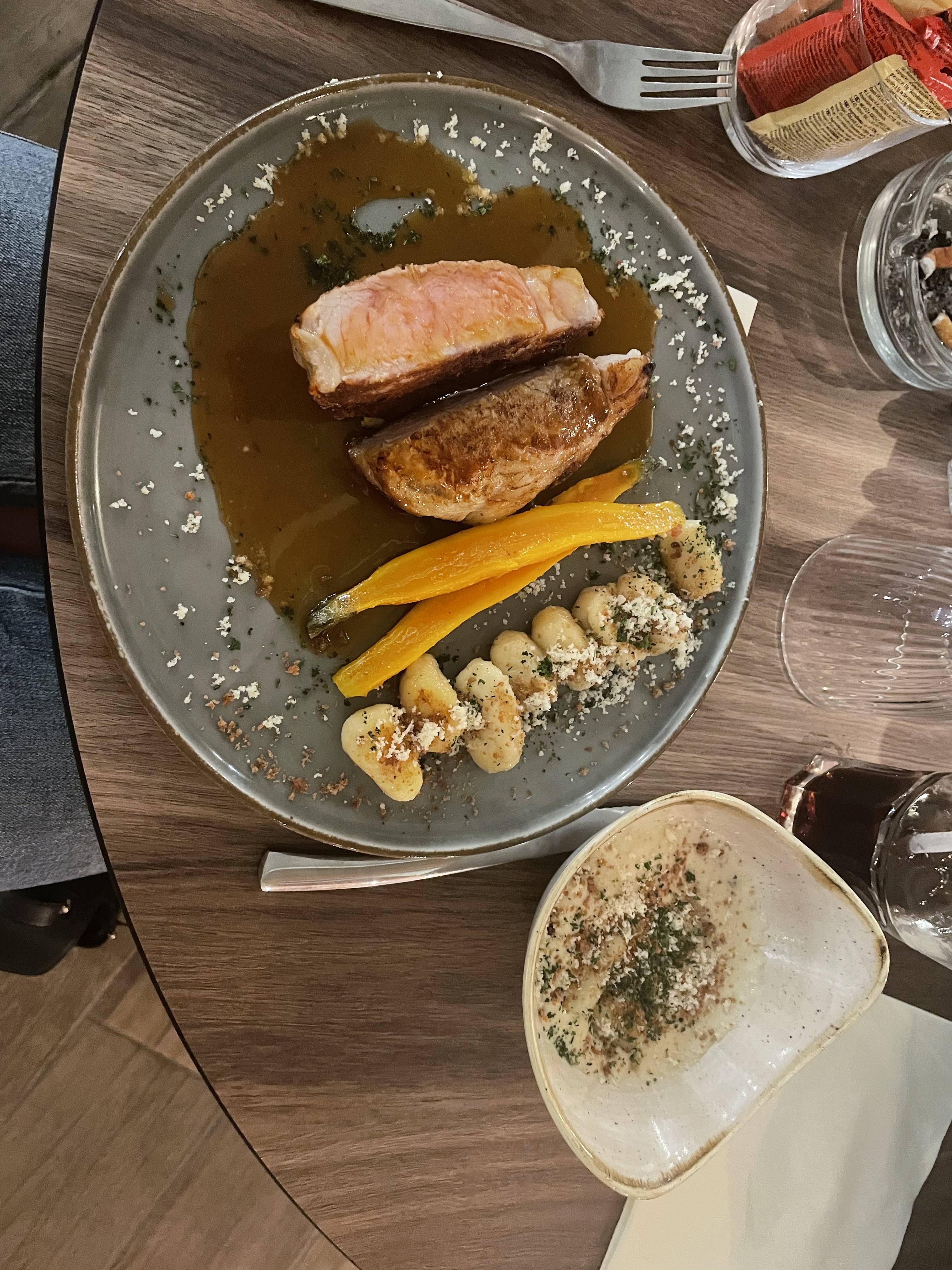 Top top top !!! Je vous recommande le camembert au four à la truffe leurs ravioles parmesan ou saumon sont exceptionnelles. Cette fois j opte pour la pièce de bœuf cuisson bleu j ai adoré accompagné d un beurre au piment cela est un vrai régal pour les papilles .