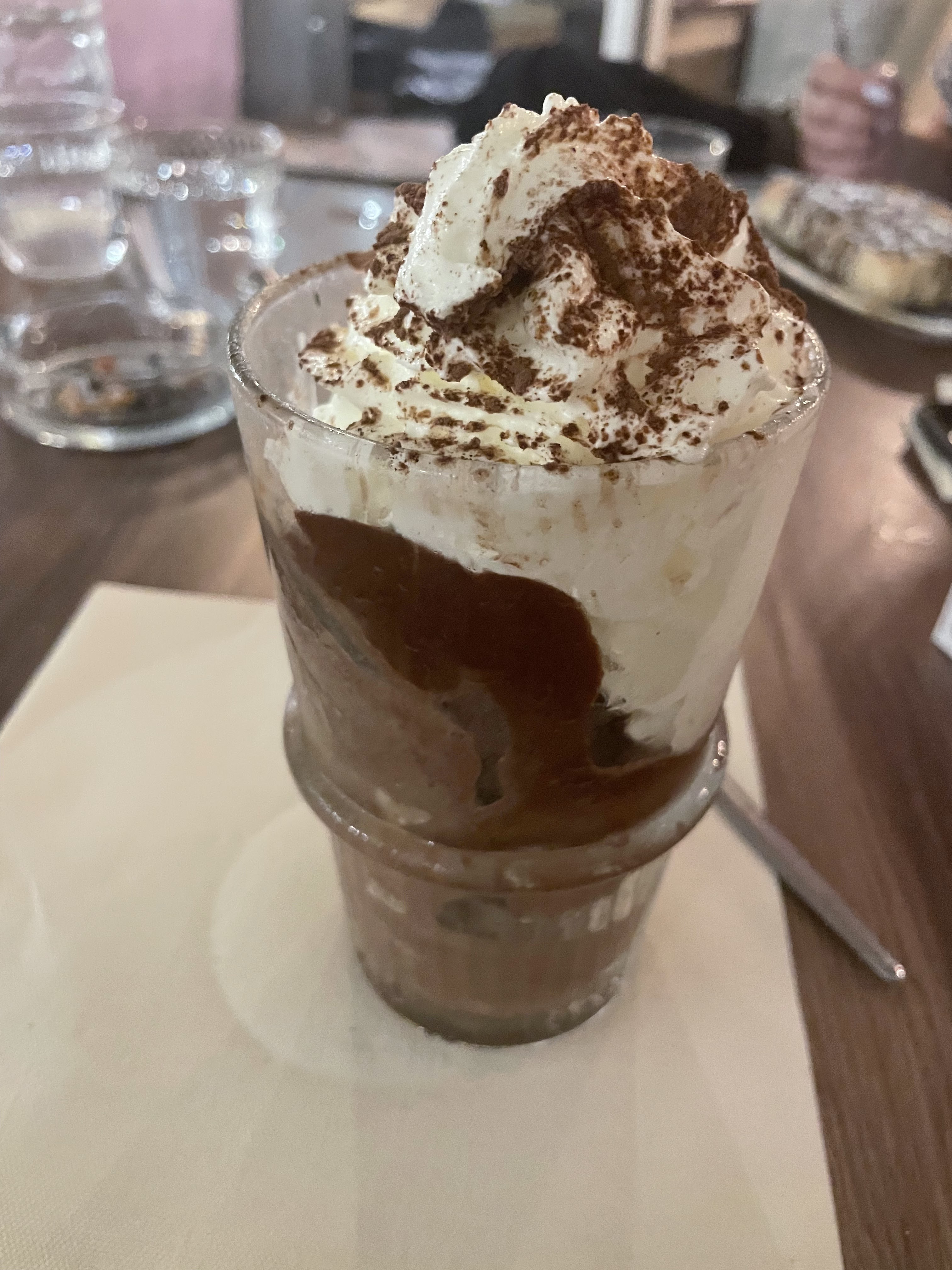 Le service prend un peux de temps et il y a eu un problème de saveur de glace qui a été réglé pas très grave le plat avec du miel et herbes camembert fondues est bon et le dessert churros pas terrible.