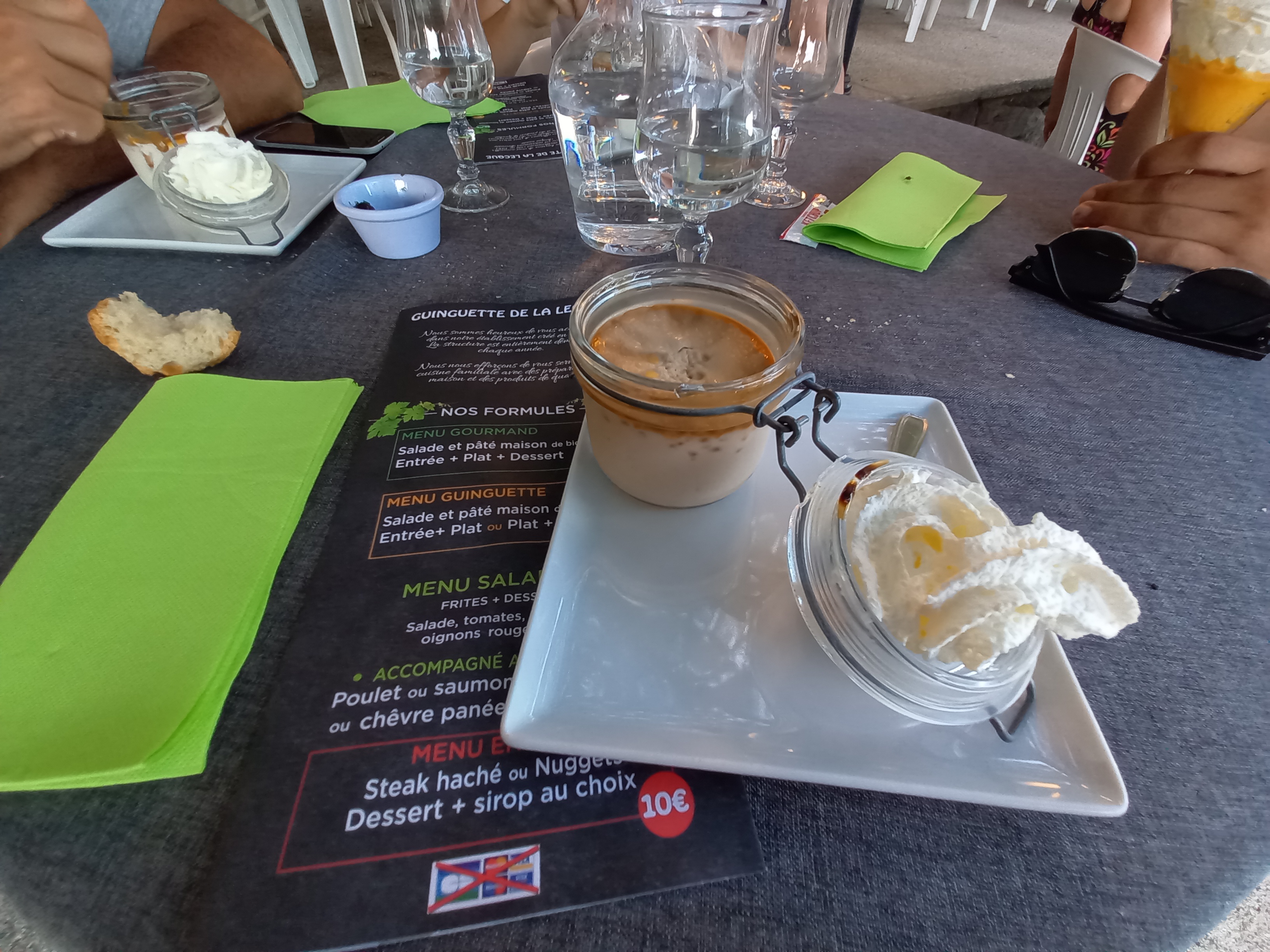 Cadre magnifique au bord de l'eau, personnel très sympa , cuisine simple mais très bonne , pathé fait maison ainsi qu une salade de bienvenue servie. Les prix plus que correct , je recommande vivement !!! Possibilité de boire un verre ou manger une glace l après midi .