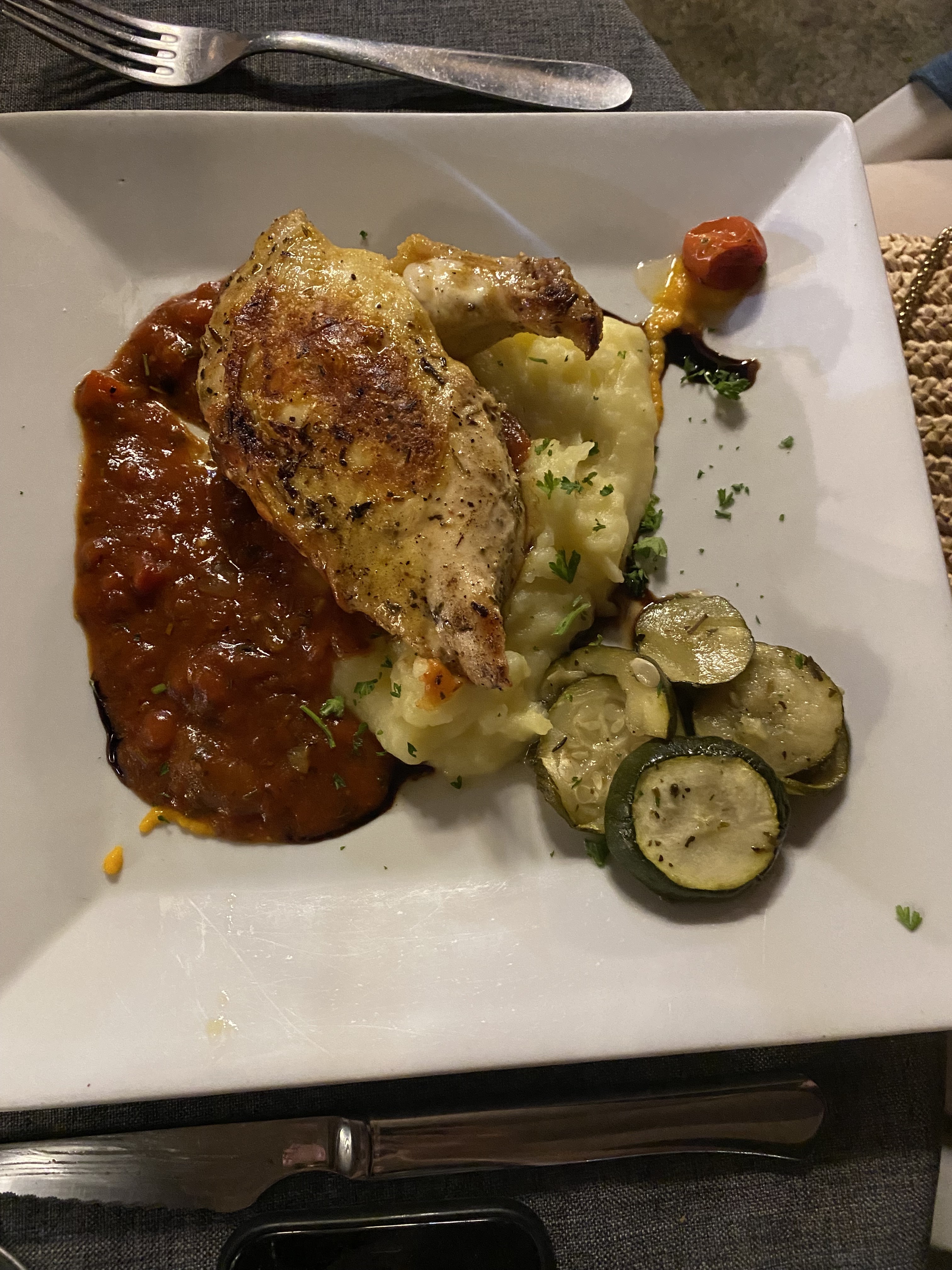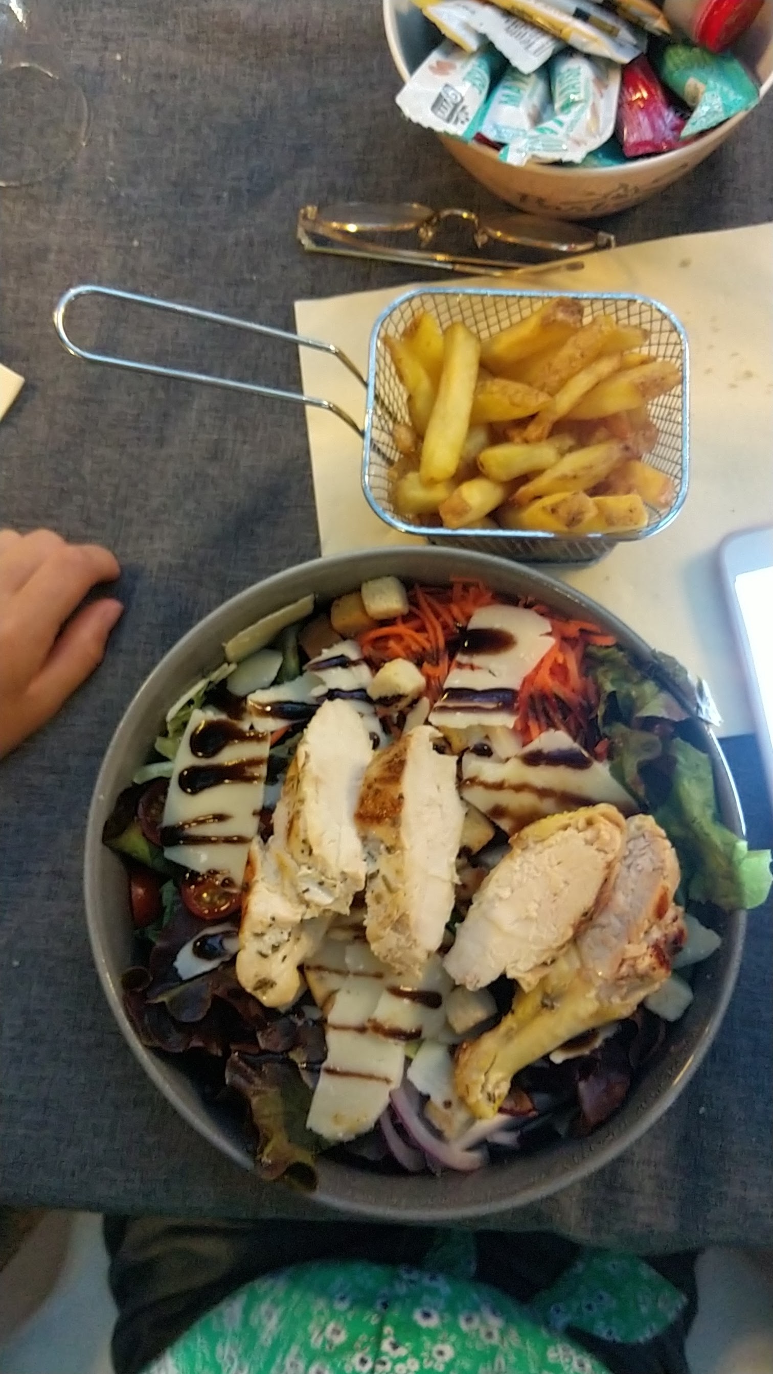 Le cadre était sympathique.. La salade en entrée, très bien vinaigrée. Le crumble de courgettes, chèvre, pas très relevé. Le cabillaud sans goût et trop cuit, pas top. La panacotta ou le dessert caramel beurre salé dotés d'un récipient similaire à l'entrée manquaient de subtilités. Le prix reste peu élevé.
