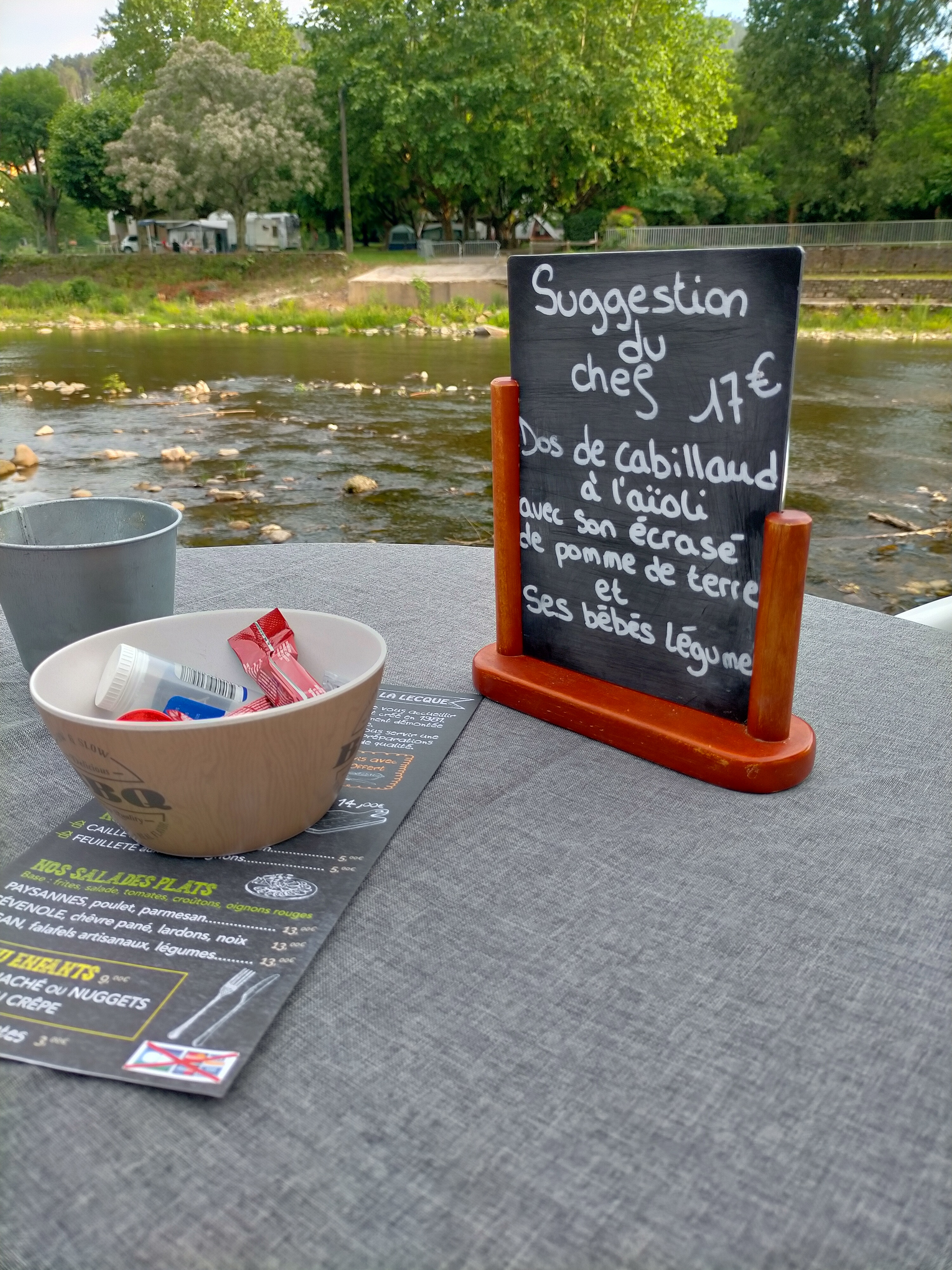 Toujours un plaisir. Lieu super joli au bord de l'eau. Digne d'un restaurant. Plats délicieux, bien présenté, serveurs efficaces à l'écoute. Un regret cette année manque la salade cevenole. Réservez à l'avance, toujours bondé de monde. Je recommande ++++++