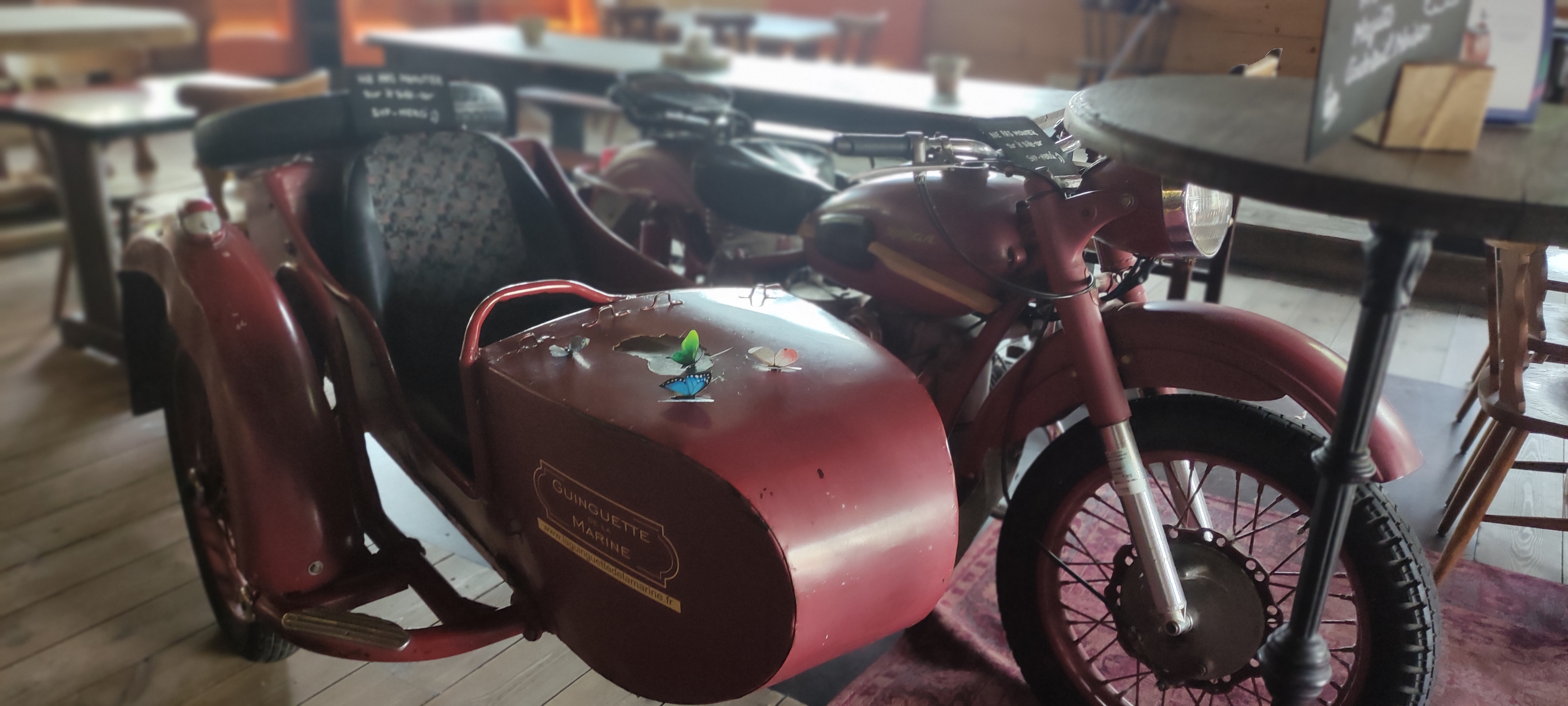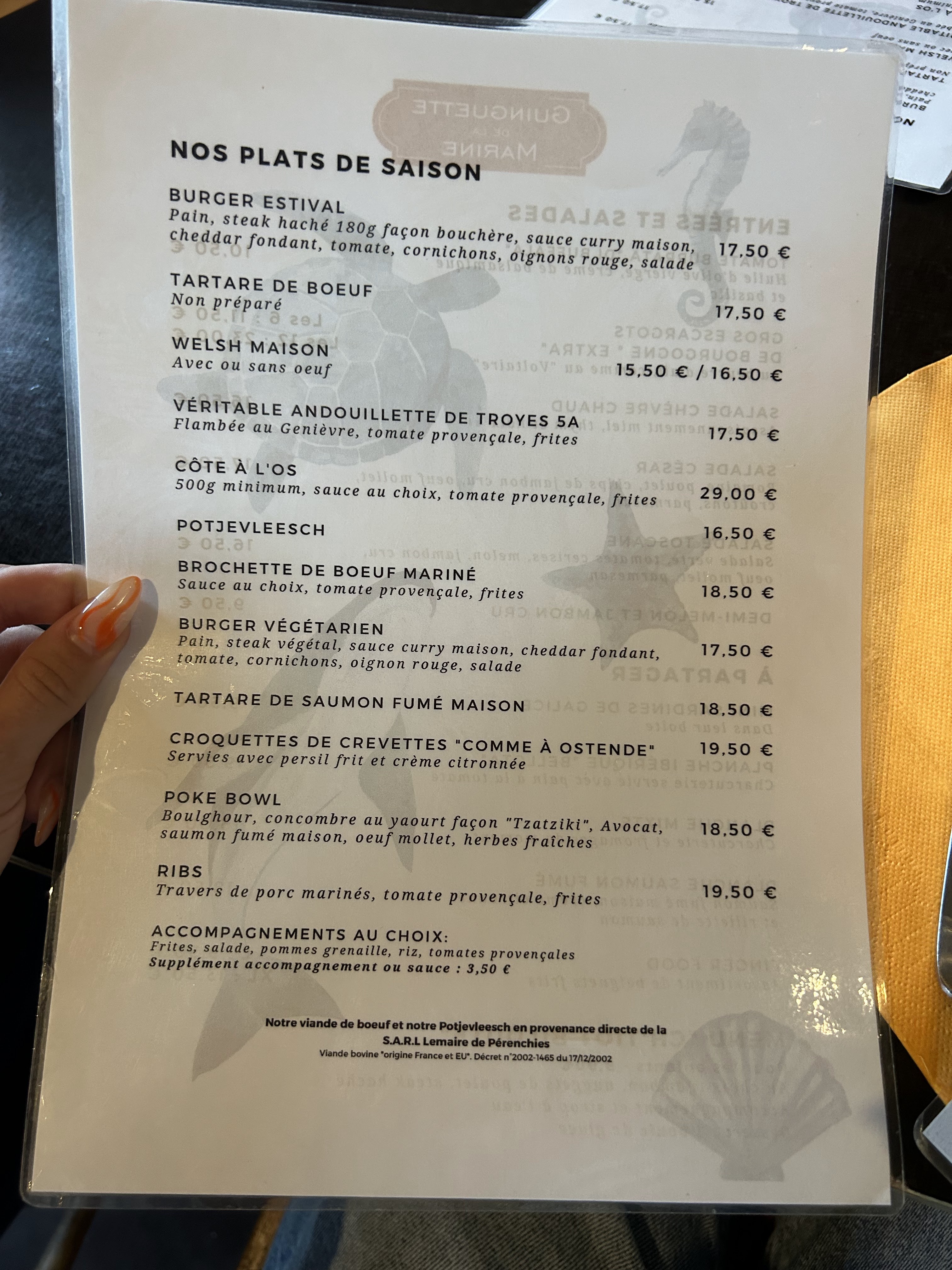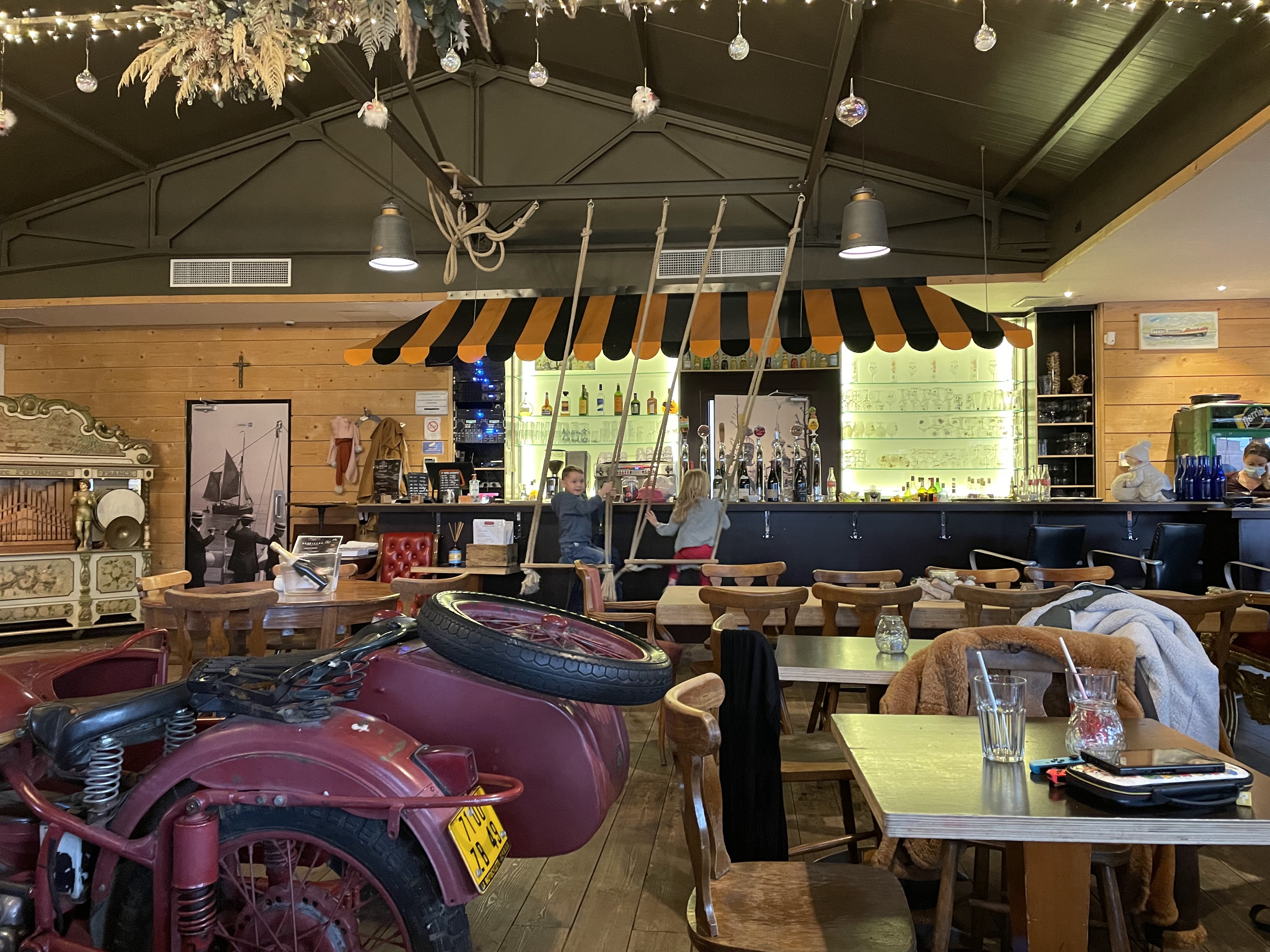 Nous avons été agréablement surpris honnêtement ça fait bien le travail pour une ginguette ! Tout le monde a apprécié son plat Carte avec pas mal de choix boissons et plats que je vous mets en photo ! Malheureusement jour de pluie mais cadre extérieur très sympa avec jolie terrasse que nous n’avons pas pu tester. Deco intérieure sympa et décalée