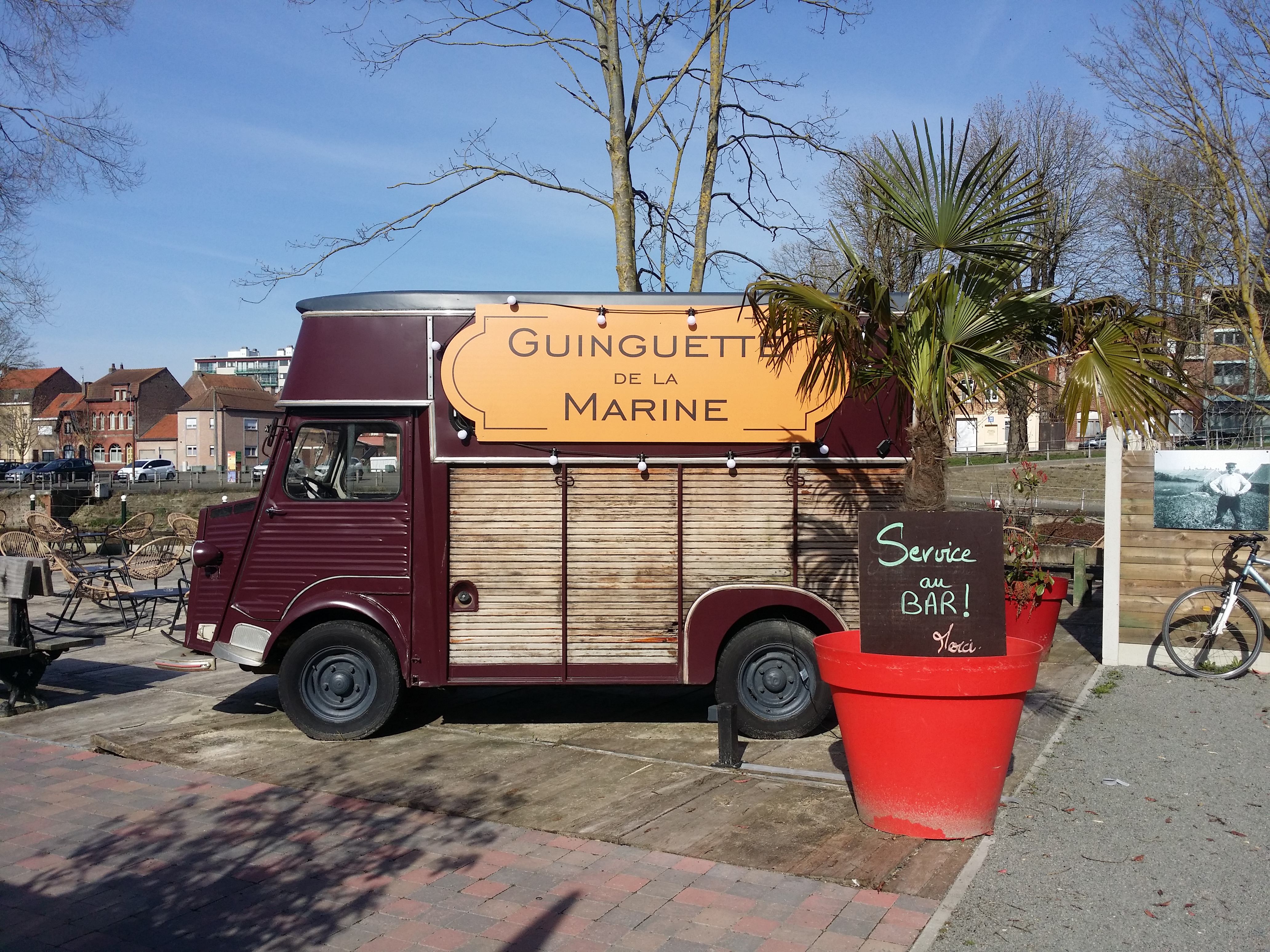 Dimanche apm je suis allée à la guinguette de la Marine à warneton Endroit très agréable, calme, original au bord de l eau, avec musique de fond J y retournerai je recommande cet endroit