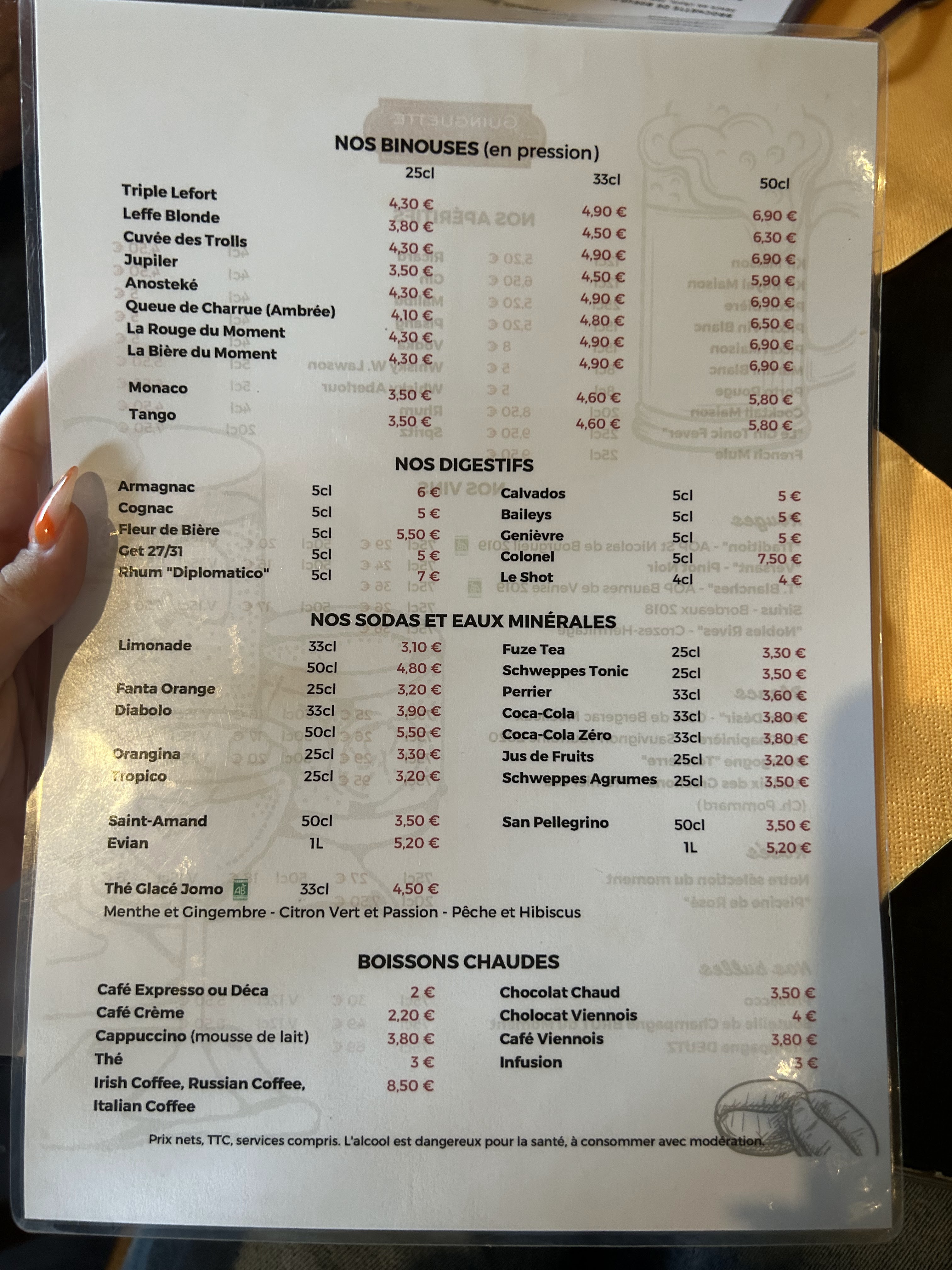 Accueil nul cette aprem par une jeune femme au bar puis une gentille serveuse en terrasse tenta de rattraper le coup. Bien moins cher de l'autre côté de la Lys en Belgique!