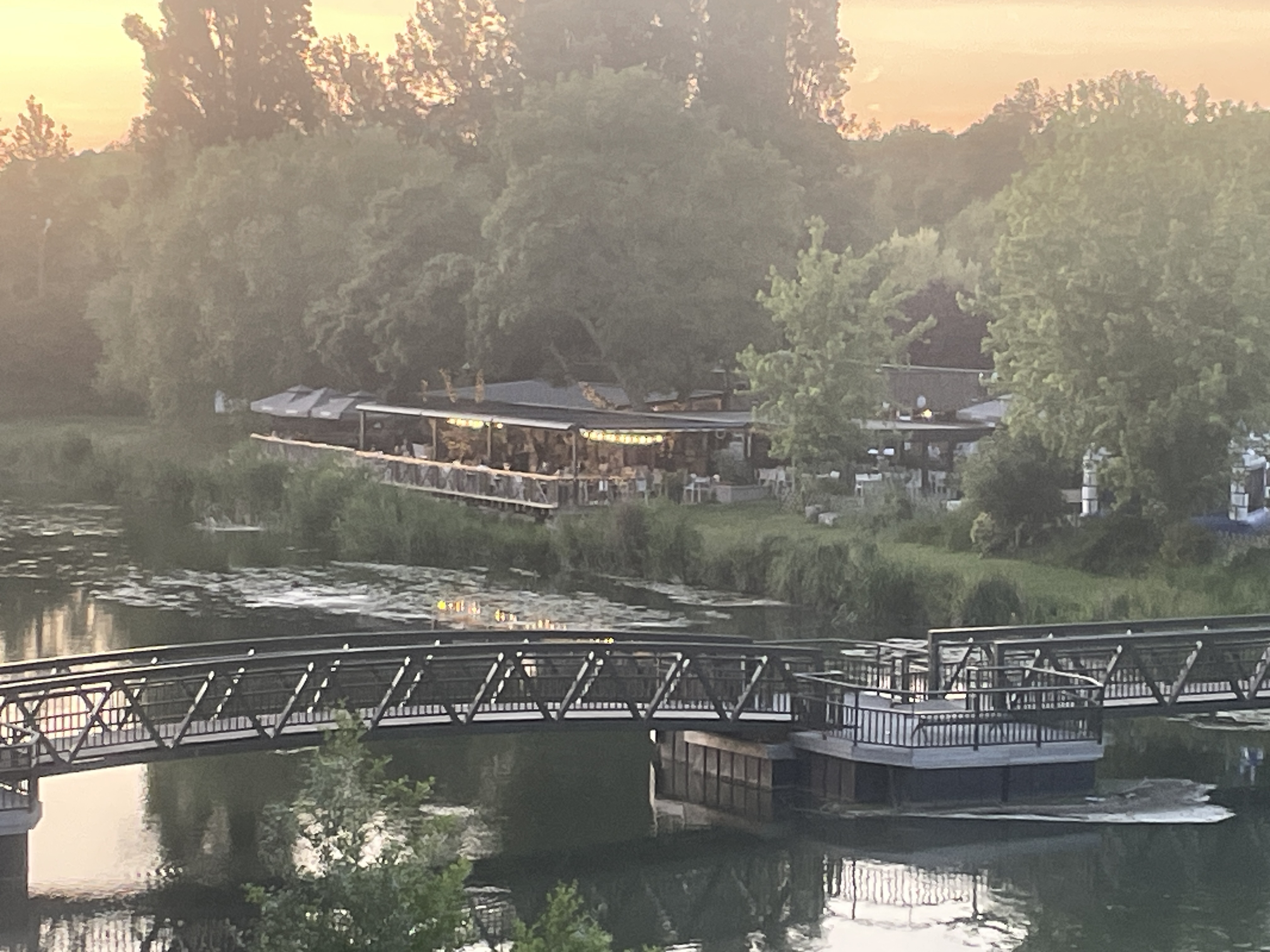 Le cadre est magnifique, passer un moment avec ses amis pour prendre un verre pendant que les enfants sont aux structures gonflables c’est encore mieux ! Les verres sont copieux, les fauteuils confortables et la vue superbe sur l’Indre . Nous n’avons pas pu dîner car non réservé et beaucoup de monde tant mieux 😅 je suis vraiment heureuse pour vous et ça fait plaisir à voir . Le seul bémol, comme Le service est au bar (pas grave c’est une guinguette) les tables basses ne sont pas nettoyées et passer après ds fumeurs qui laissent les paquets vides plus les mégots dans le cendrier c’est pas cool surtout lorsque vous êtes avec des enfants en bas âges . Pour le reste Bravo pour la déco et les prix sont corrects je reviens toujours avec plaisir Bel été à vous