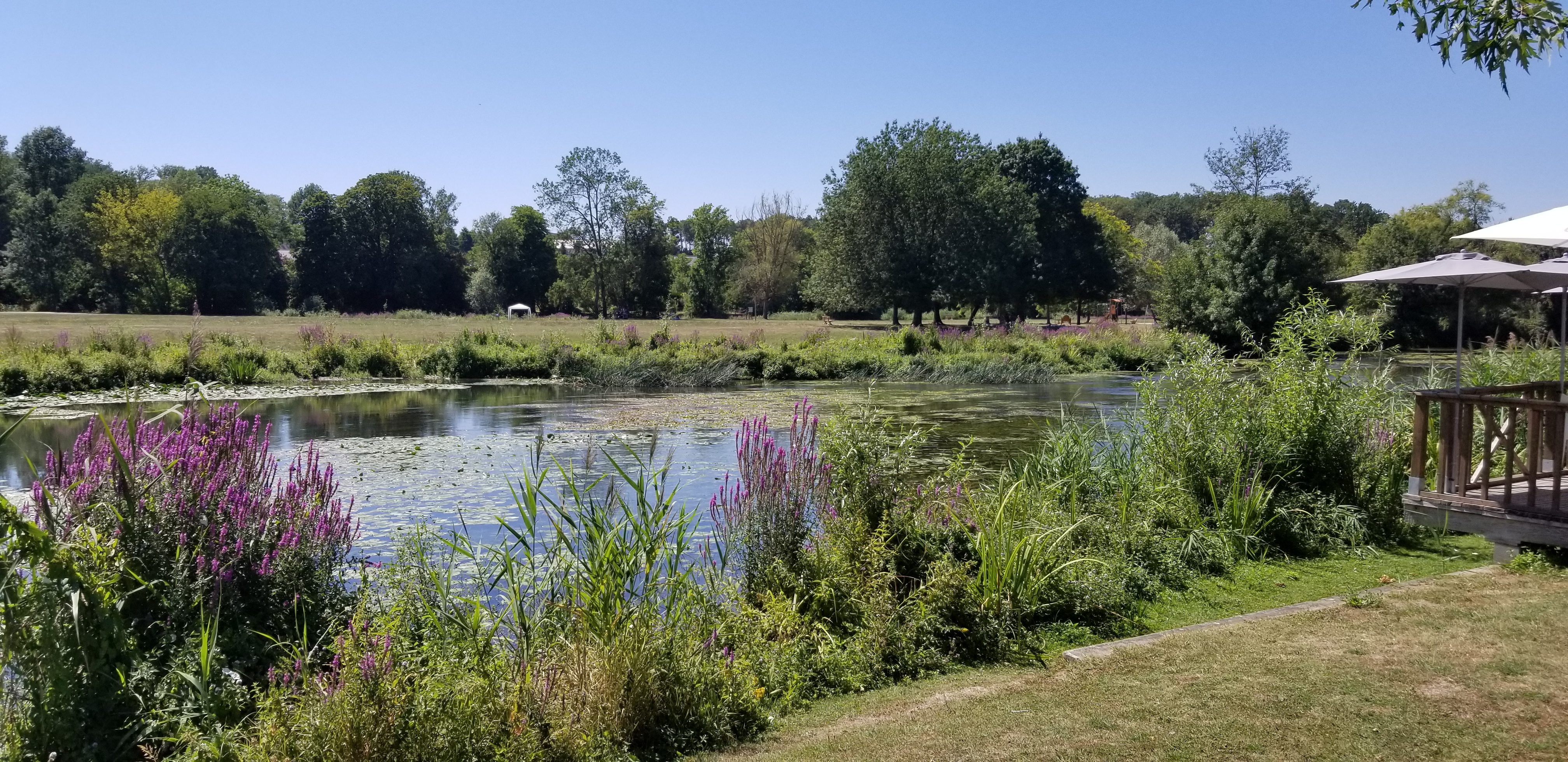 Site très agréable au bord de l'Indre. Ambiance familiale Espace de jeux gonflables pour les enfants visibles depuis les terrasses du bar/restaurant. Établissement très sympathique