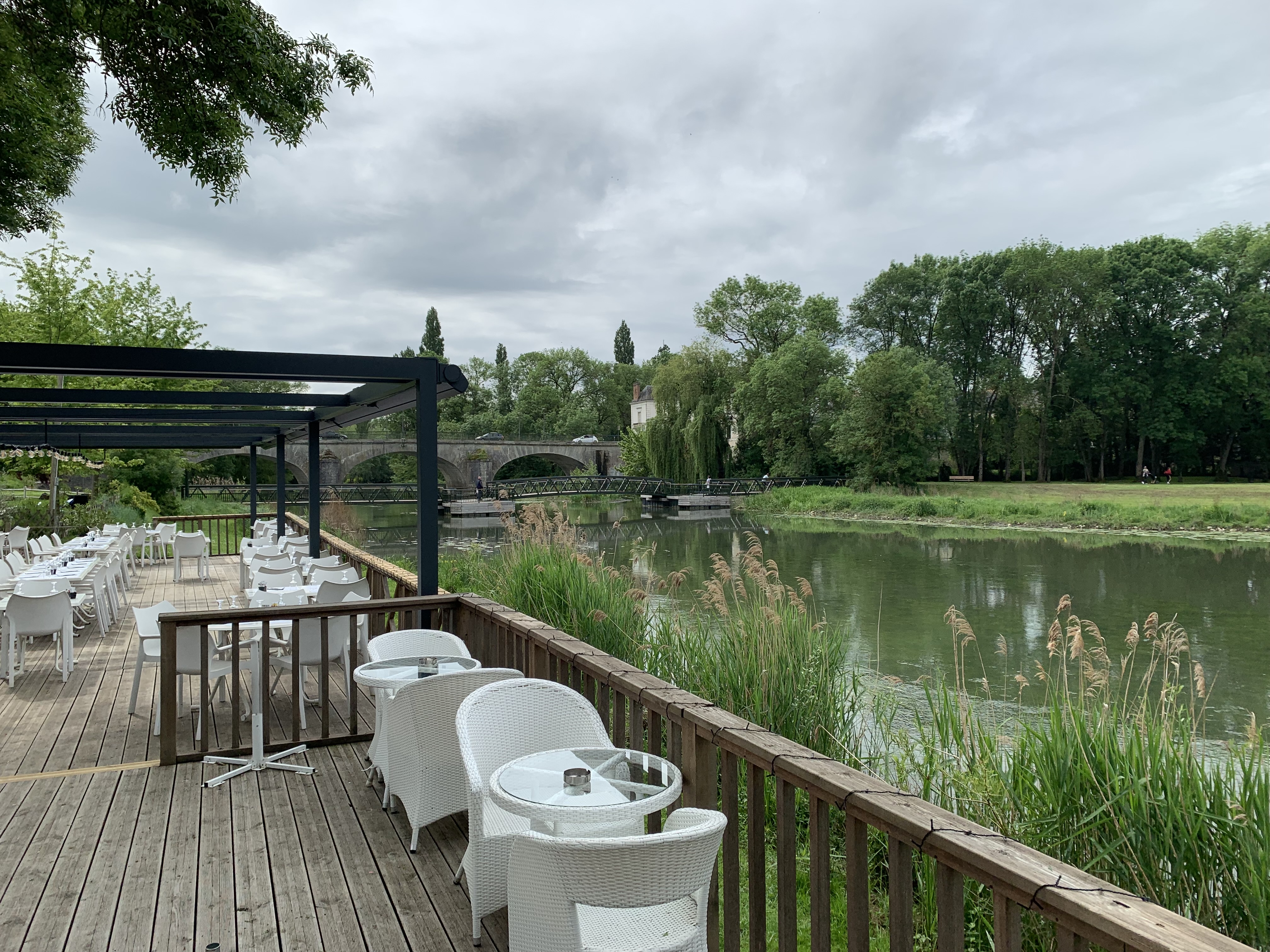 Une vue sur l'Indre apaisante pour un dîner très agréable. Penser à réserver, sinon vous risquer de ne pas avoir de table. Ce n'est pas un restaurant gastronomique, mais les plats sont très bon. Simple mais top pour le lieux. Vous pouvez aussi juste prendre un verre pour discuter au bord de l'eau. Les structures gonflables sont très bien pour amusez les jeunes enfants.