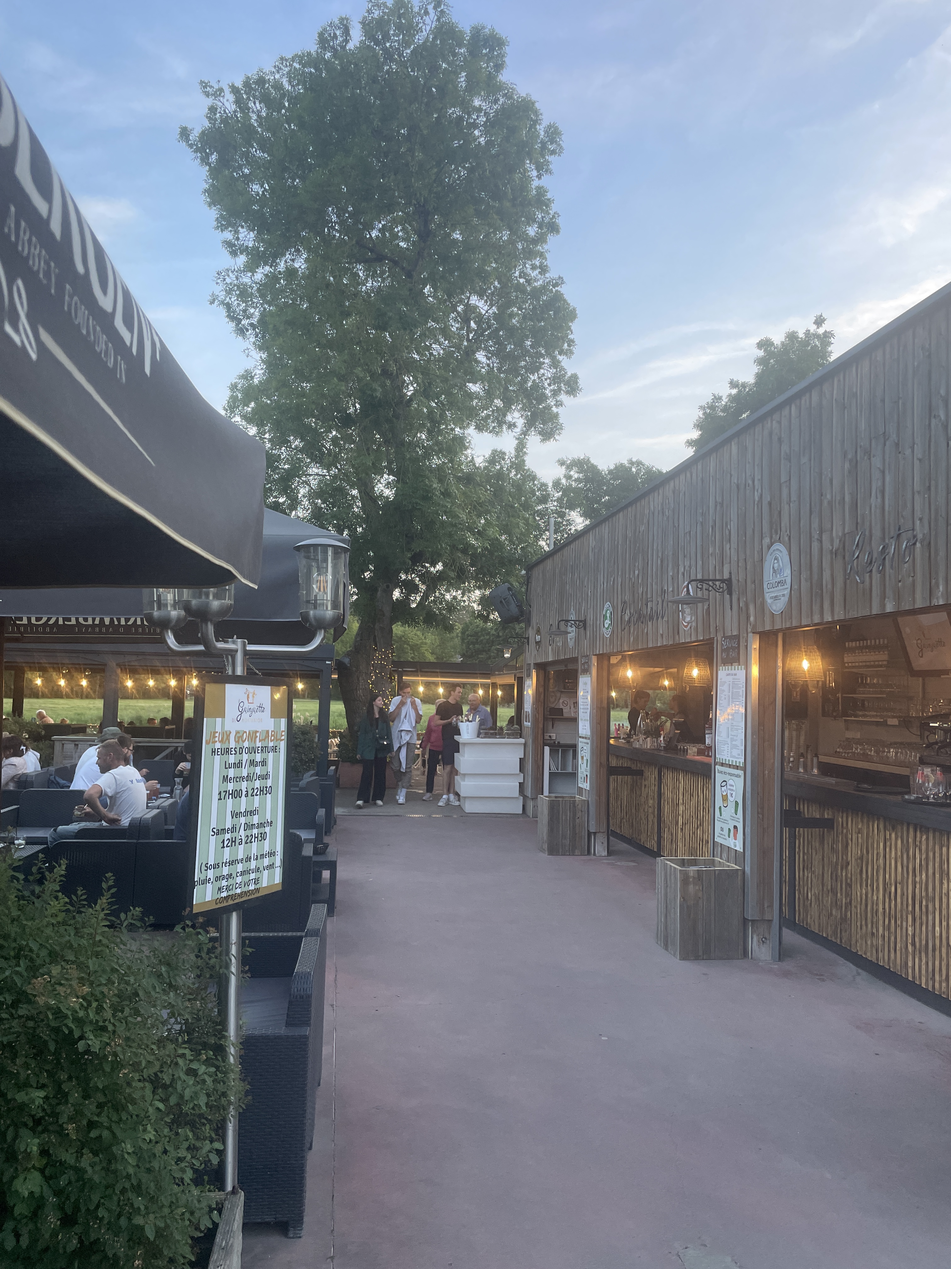 Très sympa , boire un verre au bord de rivière les enfants peuvent jouer au structure gonflable 👍. Les verres son consignes il faut donc les redonner au bar pour être rembourser :)