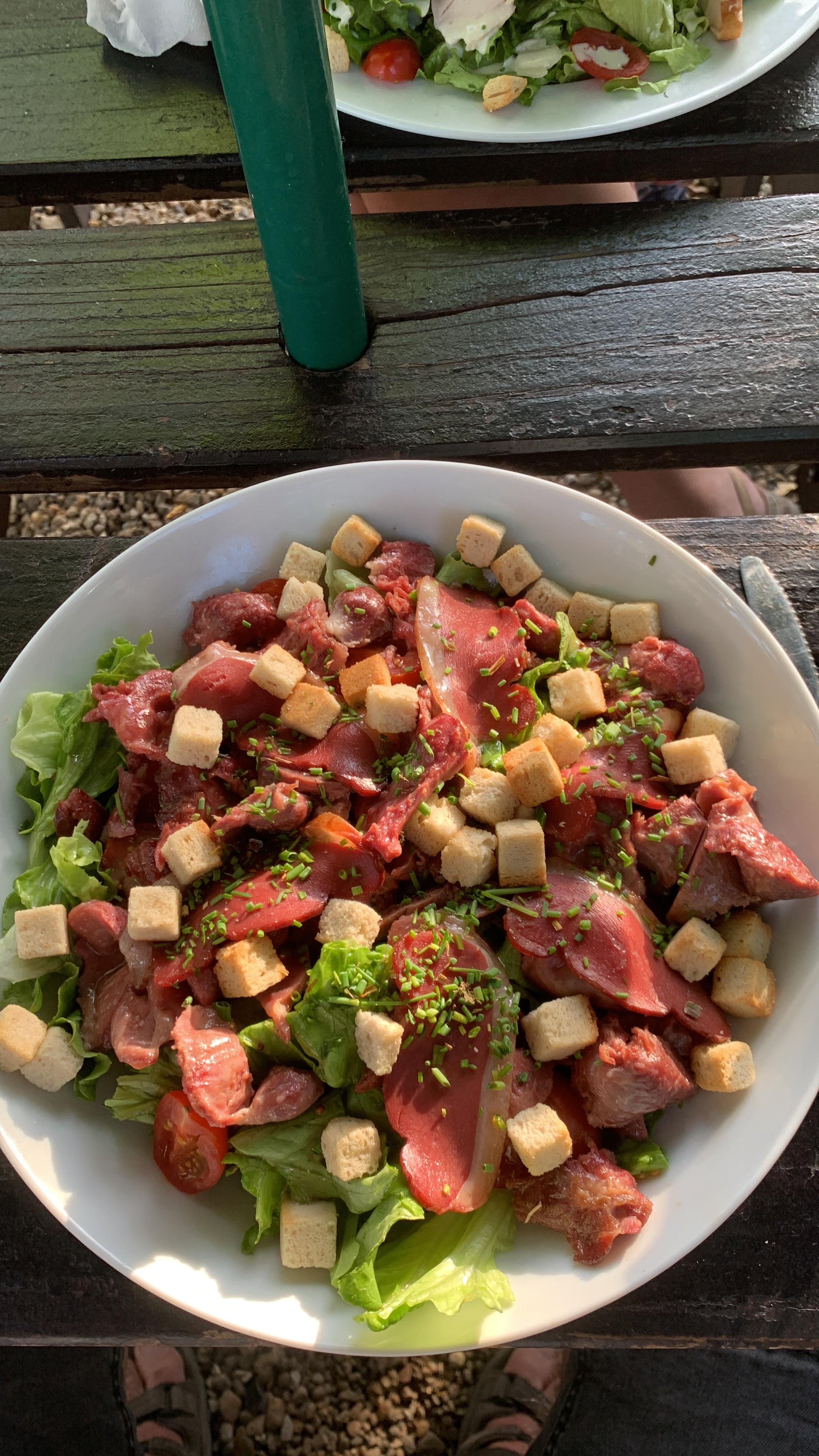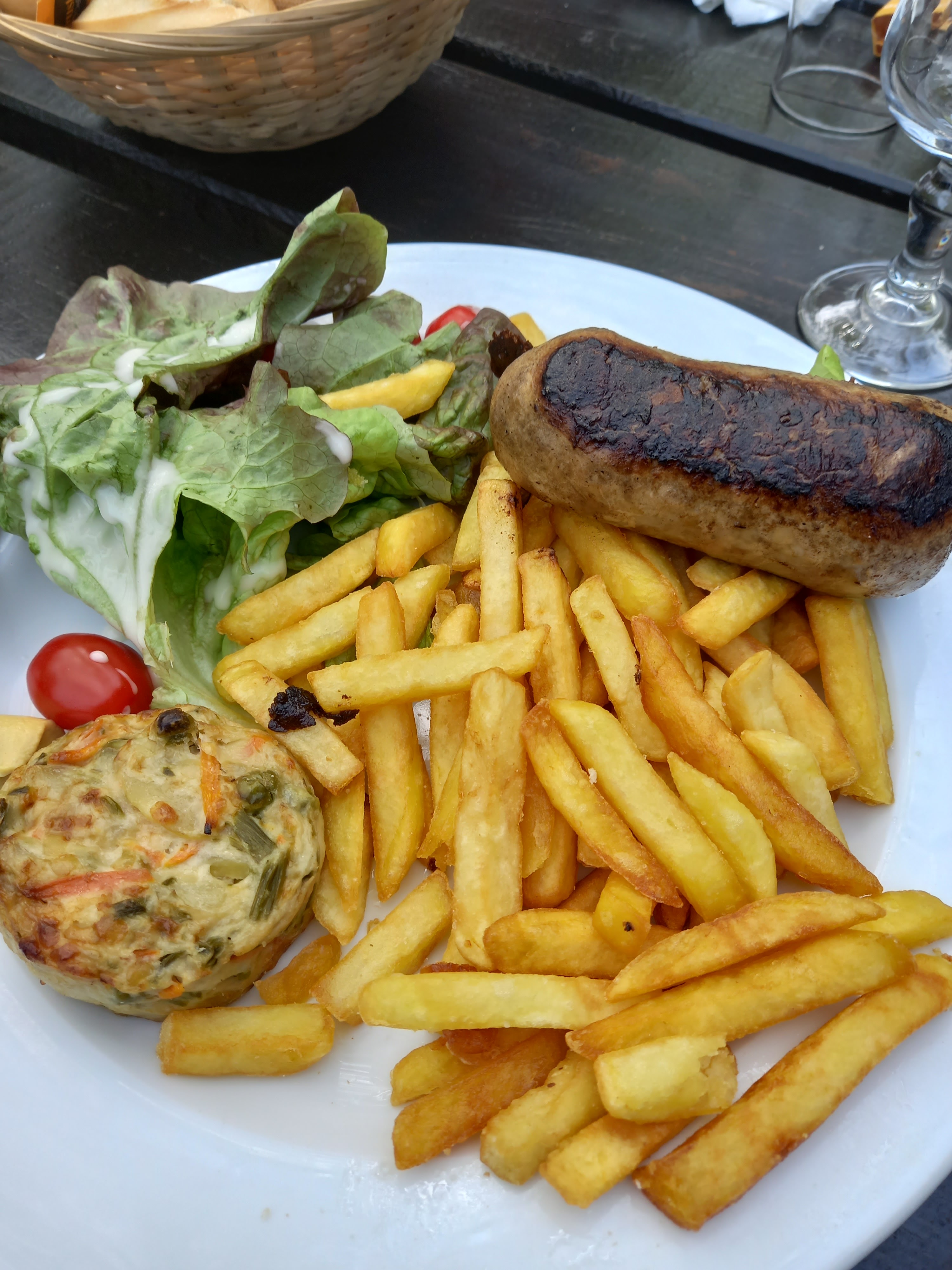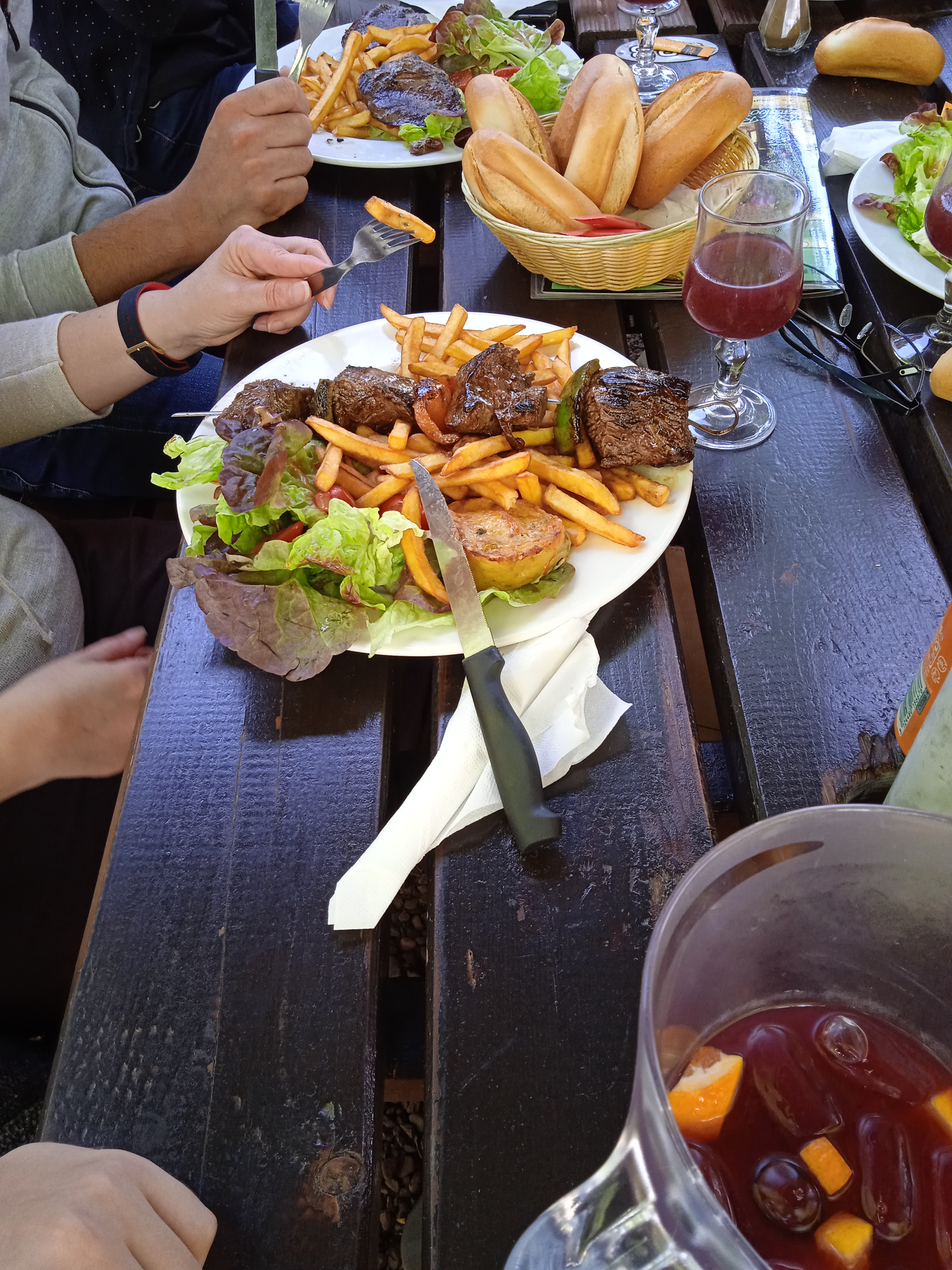 Déjeuner à 10 personnes. Cadre très agréable. Réservation obligatoire car beaucoup de monde. Service et personnel au top, avec le sourire.. petit bémol pour la brochette, la viande est un peu dure! Andouillette très bonne, assiette très fournie!