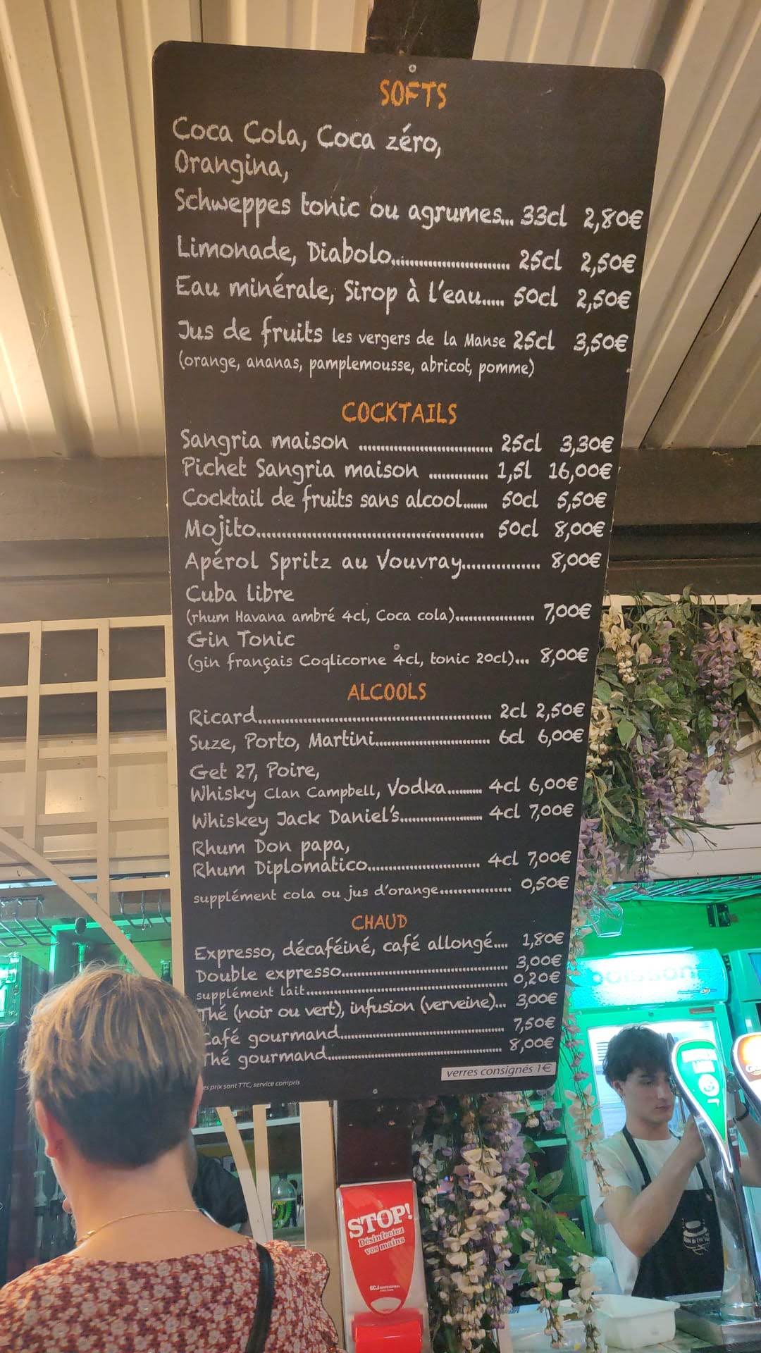 Endroit sympa pour boire un verre mais pas pour manger !!! Vous êtes assis sur un banc en bois très inconfortable et la nourriture est médiocre. Là friture de poisson c’est du caoutchouc sans parler de la salade du soleil sans assaisonnement avec 95% de salade verte et des légumes marinés en boîte …. Pour avoir été dîner à celle de Tours ça n’a rien à voir c’est autrement meilleur !