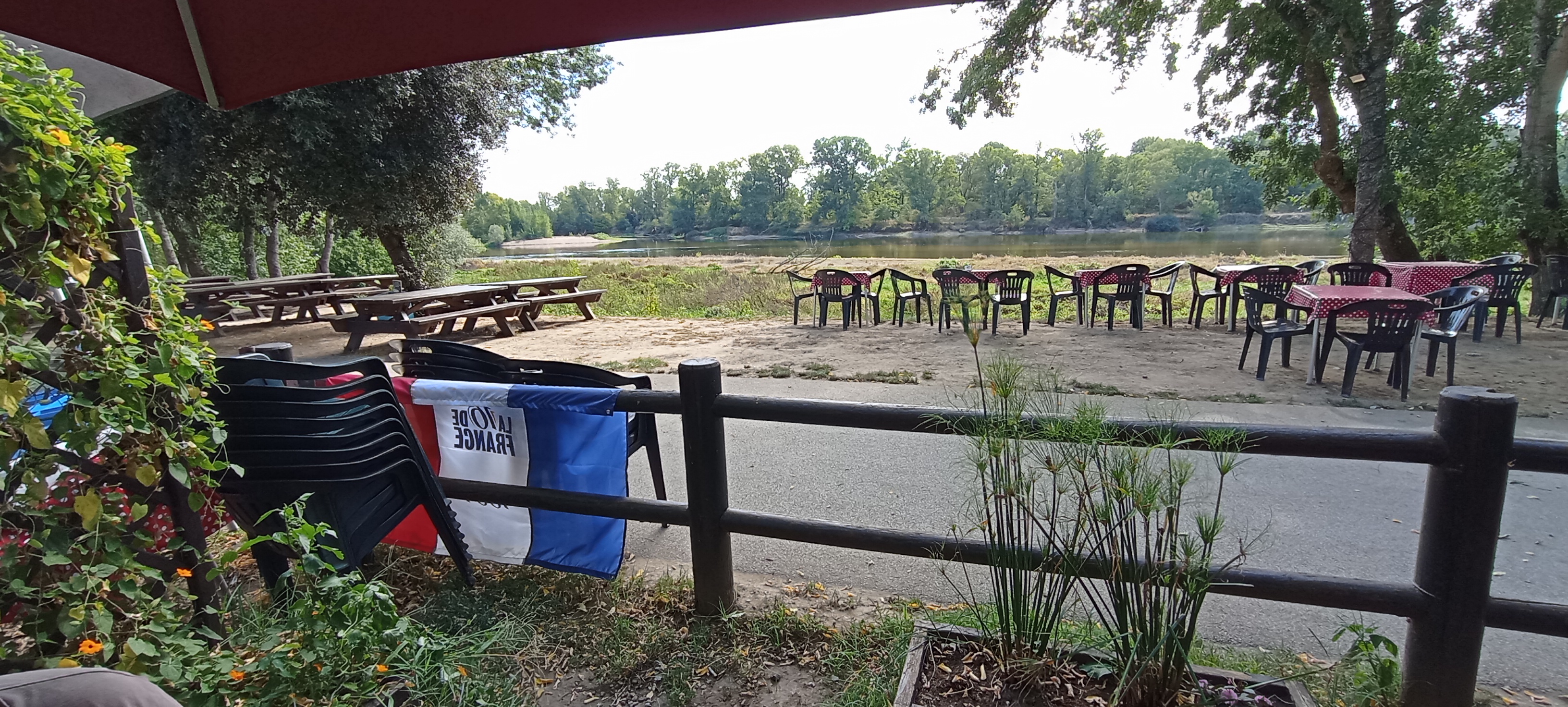Un beau paysage sur la Loire, de nombreuses tables et de la place, un service de snack / hamburger simple mais correct et plutôt copieux. Un lieu très sympa. Prévoir quand même le répulsif à moustiques :)