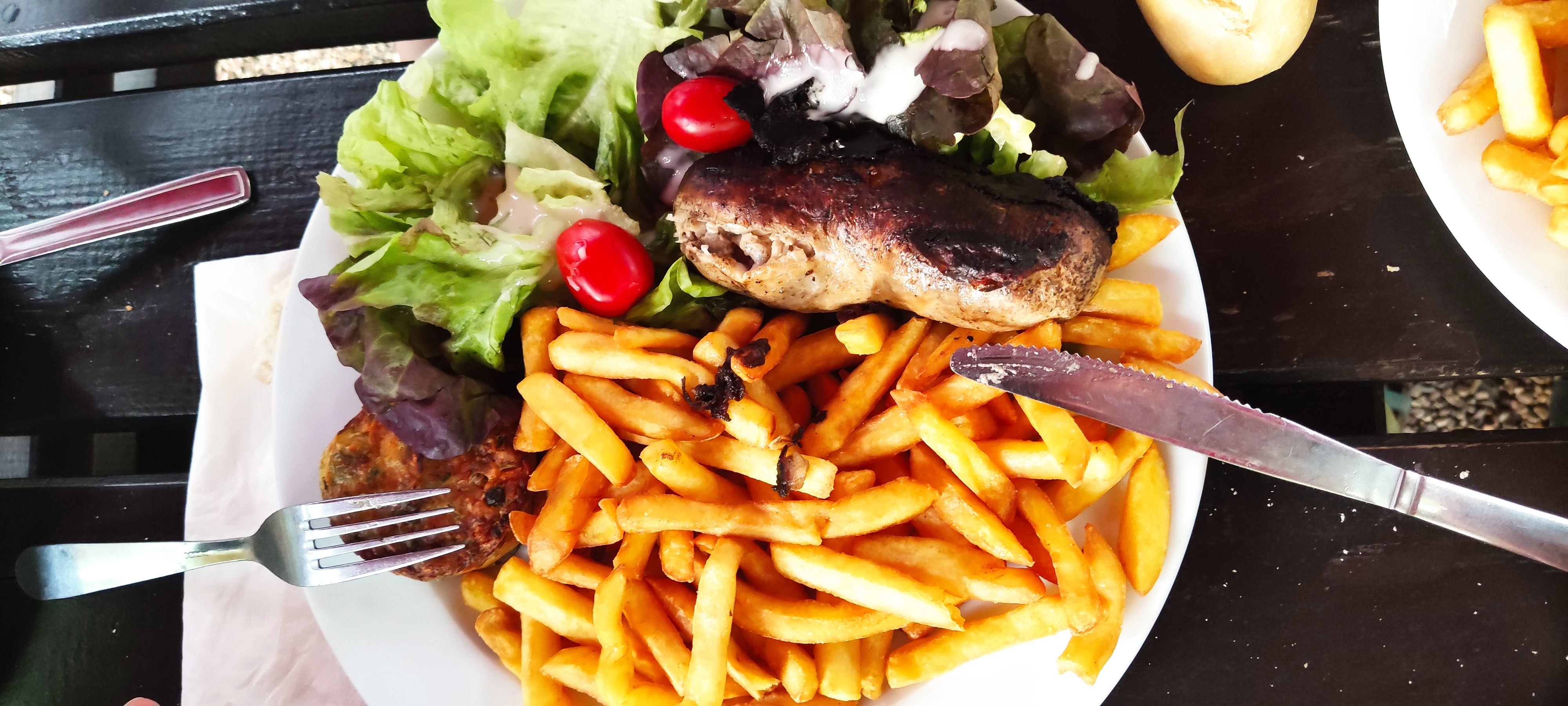 Nouveau slogan: GASPILLER PLUTÔT QUE RAISONNER! Mercredi 23 août . Ma viande était trop cuite. L’ayant coupé en deux pour voir la cuisson la serveuse me propose de la jeter et m’en rapporter une. J’ai refusé et ai fait avec (bien cuite voir trop cuite à la place de saignante). Au moment de l’addition ma grand-mère demande s’il est possible d’avoir un geste commercial pour le désagrément, la personne s’occupant de l’encaissement nous fait comprendre très clairement qu’il est préférable de gaspiller 400g de viande que faire un geste. Il me reproche d’avoir fait le choix de ne pas gaspiller en comparant la situation à de la viande rance de supermarché que j’aurais décidé de manger malgré tout ( jolie image pour la nourriture que vous servez). Avant de se targuer d’être situé dans un cadre naturel classé, il serait bon de penser un minimum à l’écologie plutôt qu’aux bénéfices à tout prix. À bonne entendeur 👍🏻