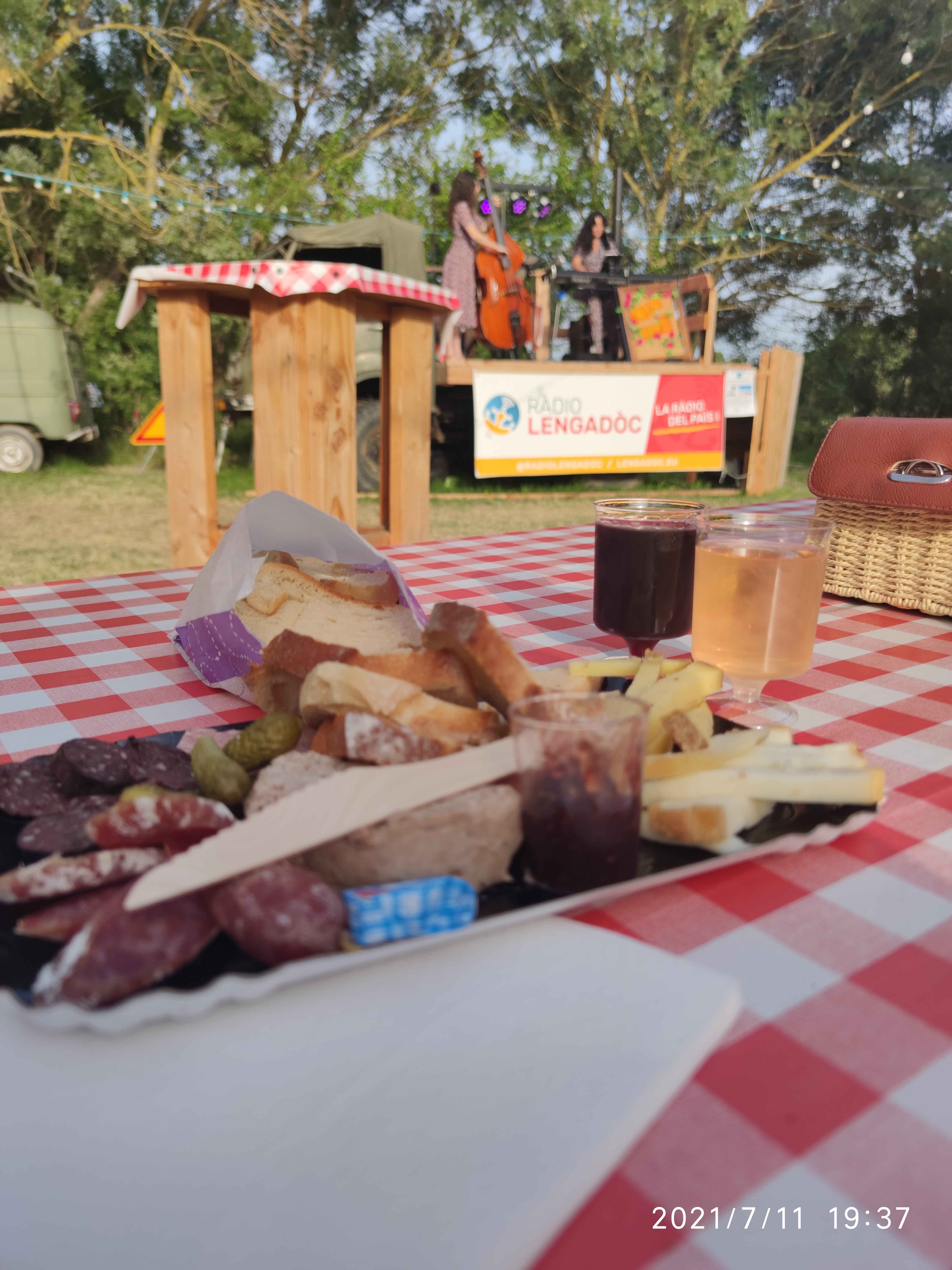 Un bon moment à passer dans une guinguette me disais-je....Me voilà donc devant un assez grand choix de plats proposés par différents food trucks installés dans une sorte de prairie (8 exactement). Ces trucks appartiennent à des restaurants narbonnais à la recherche d'une opportunité commerciale, en cette saison estivale, cela va de soi. Les prix sont relativement raisonnables.. A vous de voir...Mais attention! Gros gros warning concernant les MOUSTIQUES! J'en ai jamais vu autant...ils sont innombrables. A déconseiller aux familles avec enfants. Sans protection anti-moustiques.. Oubliez! Et encore! ça gâche vraiment tout. Je n'y retournerai pas pour ma part.