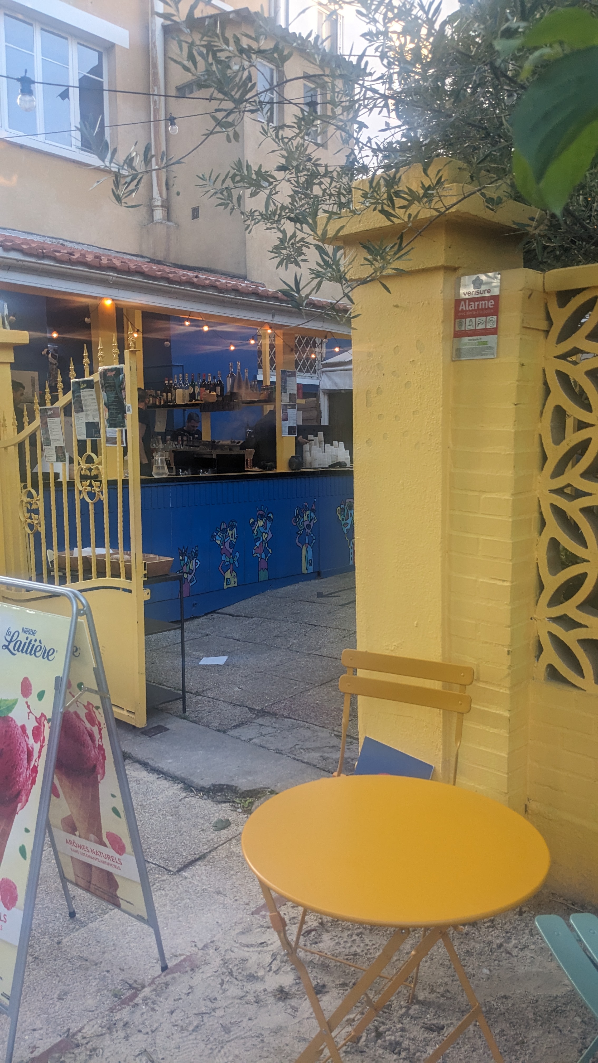 Un nouveau propriétaire à cet endroit où je pensais qu'il n'y avait plus rien. Il sont là depuis fin mai. Sympa d'avoir un endroit pour se rafraîchir à cet endroit. 2 coins soleil et ombre. Un côté Lounge passé la porte. Relaxe l'après-midi et à priori branché le soir avec des concerts. Service au comptoir. Un petit coup sur les tables entre chaque client serait agréable. Côté plats, à tester un autre fois.