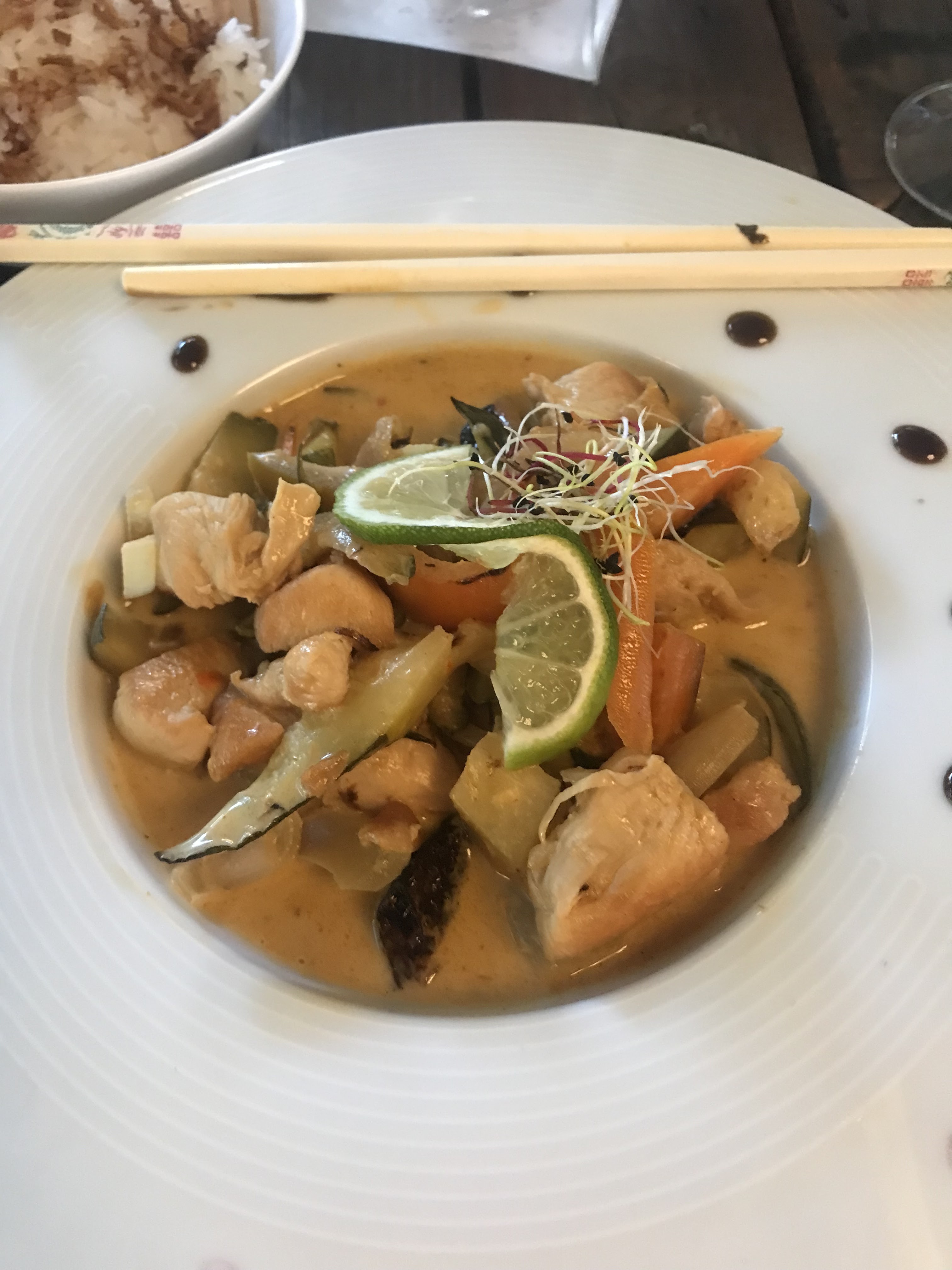 Equipe très chaleureuse, autant du côté des serveuses que du chef, coin bien sympathique et aéré où les enfants peuvent jouer sans problème pendant que les adultes se régalent de plats d'inspiration thaï. Recommandé, y compris pour des groupes.