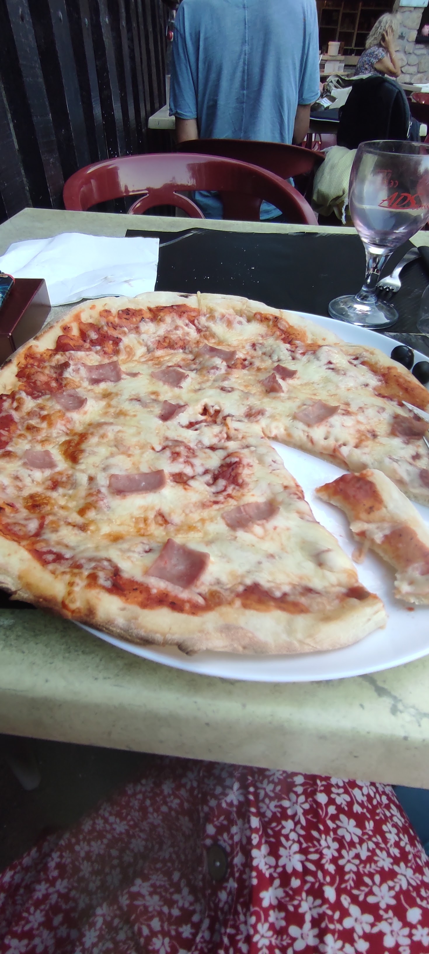 J'y suis allé exprés pour vn manger une pizza, pas de chance, ils avaient pris l'eau, le four ne marchait pas, du coup steak frites. Très bon, pas cher et beau cadre avec le bruit de la rivière.
