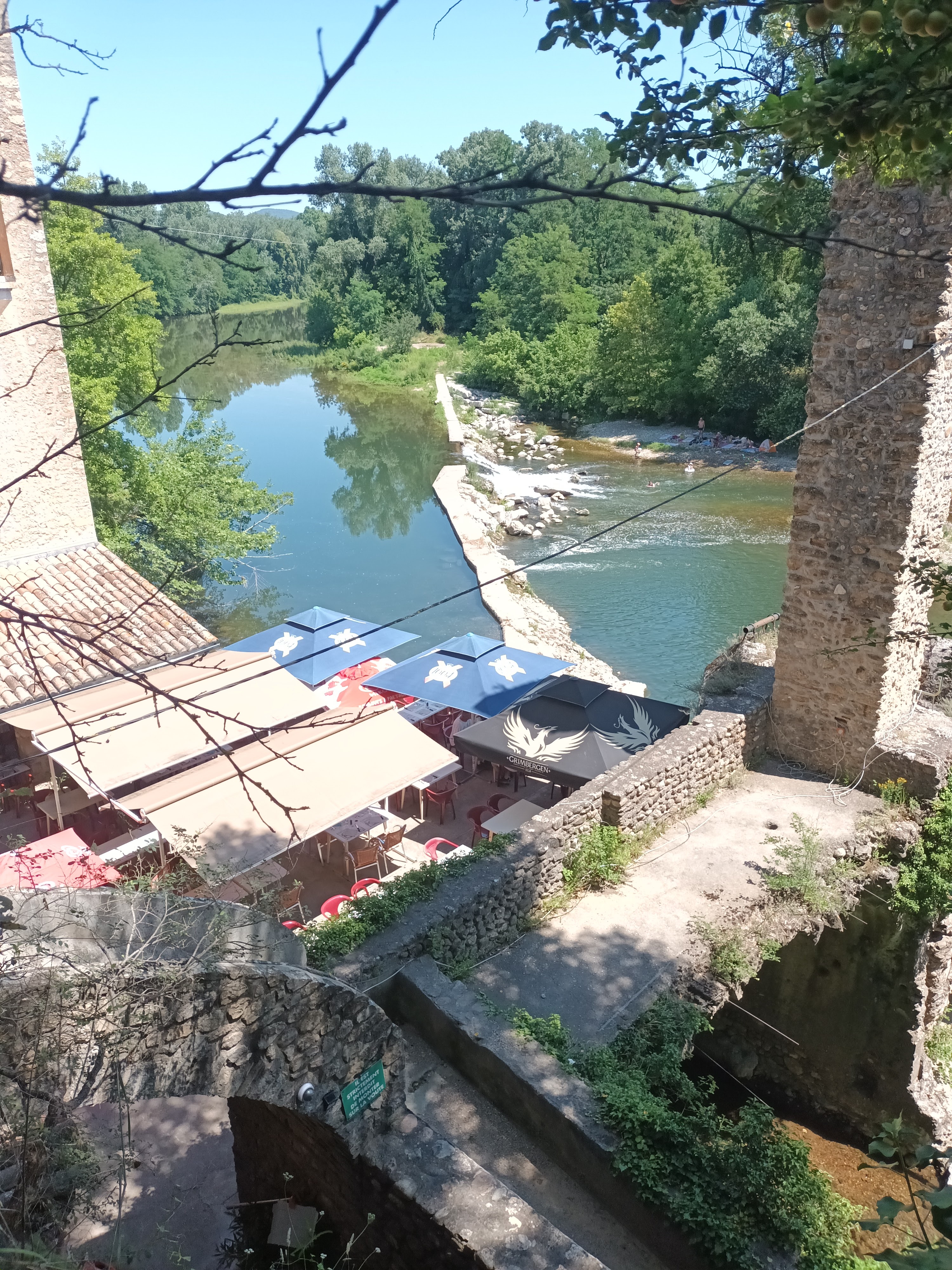 Un cadre agréable, typique au bord de l eau et inattendu, chargé d histoire. Lieu idéal pour trouver la fraicheur mais pas toujours évident de trouver l entrée du chemin . Accueil familial, cuisine simple et très bonne, service rapide, discret et efficace. Des pizzas fines et délicieuses. On peut même faire une trempète dans la rivière de la Cèze car retenu d eau.