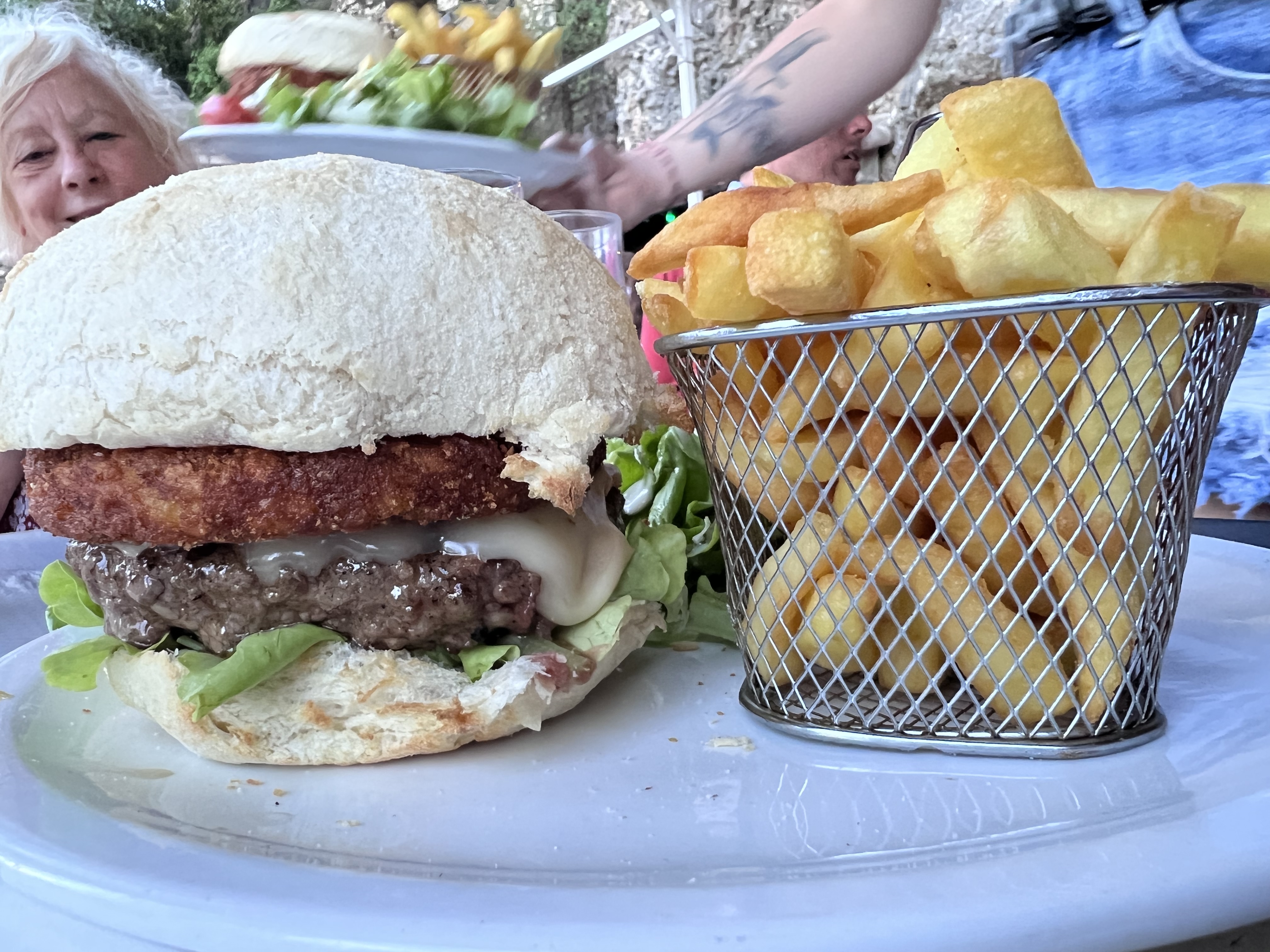 Je mets 3 pour l’ambiance car ce jour là une table a fait le maximum pour ne pas payer ses plats c’était pathétique Le cadre est sympa en rivière la serveuse connaît sa carte par cœur et voilà Marre des touristes qui vous dévisagent quand vous arrivez et de cette table encore sans doutes de touristes bobos qui se croyaient dans un 5 étoiles chez eux à Lyon ou Paris Délicieux magret de canard et burger Classic au top PS: les touristes ne venaient plus dans le Gard restez chez vous on en peu plus de vous et de vos accents et de vos adidas blanche