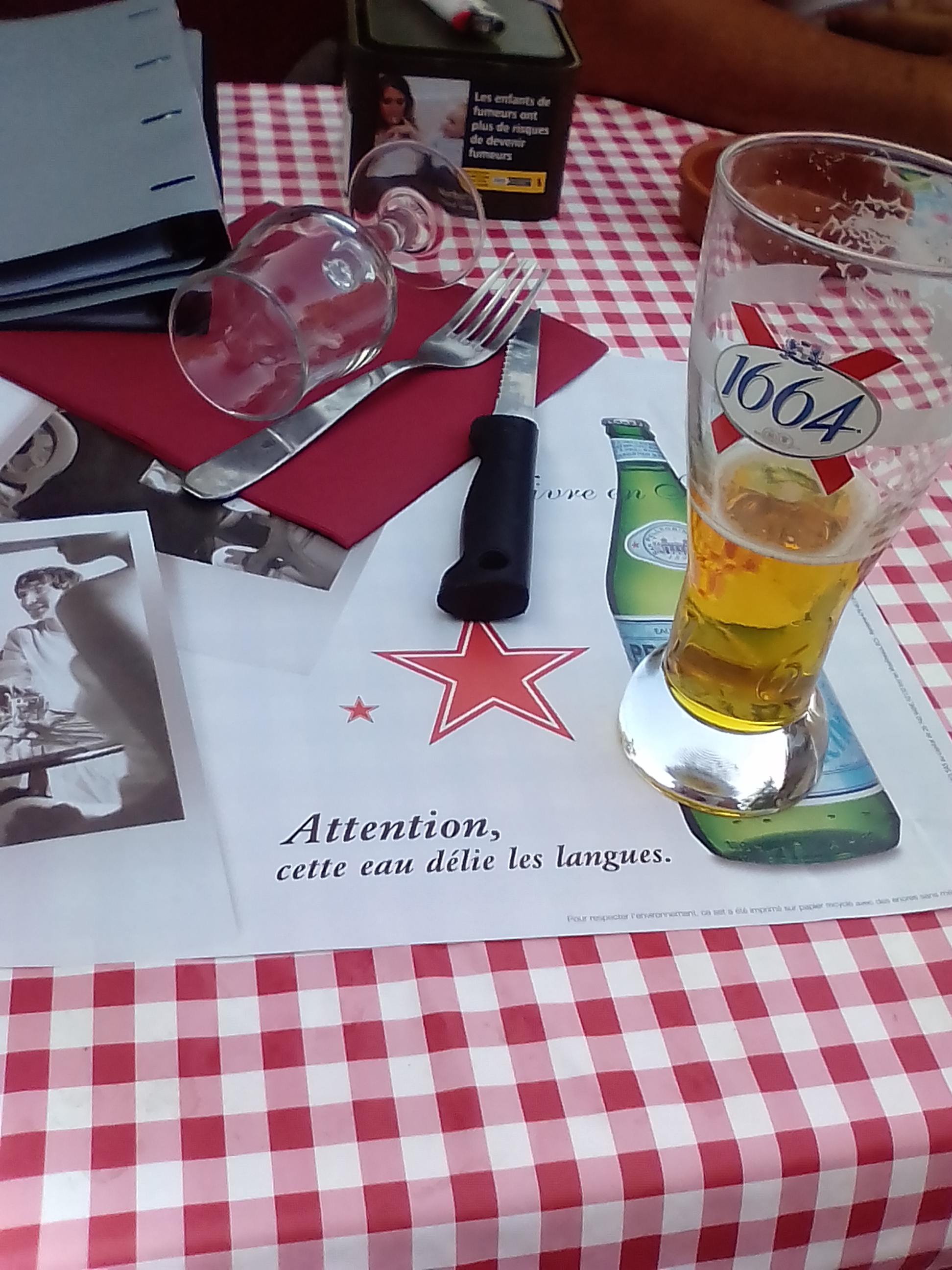 Je m'assois boire un verre je pose le coude sur la table et la nappe me colle au bras