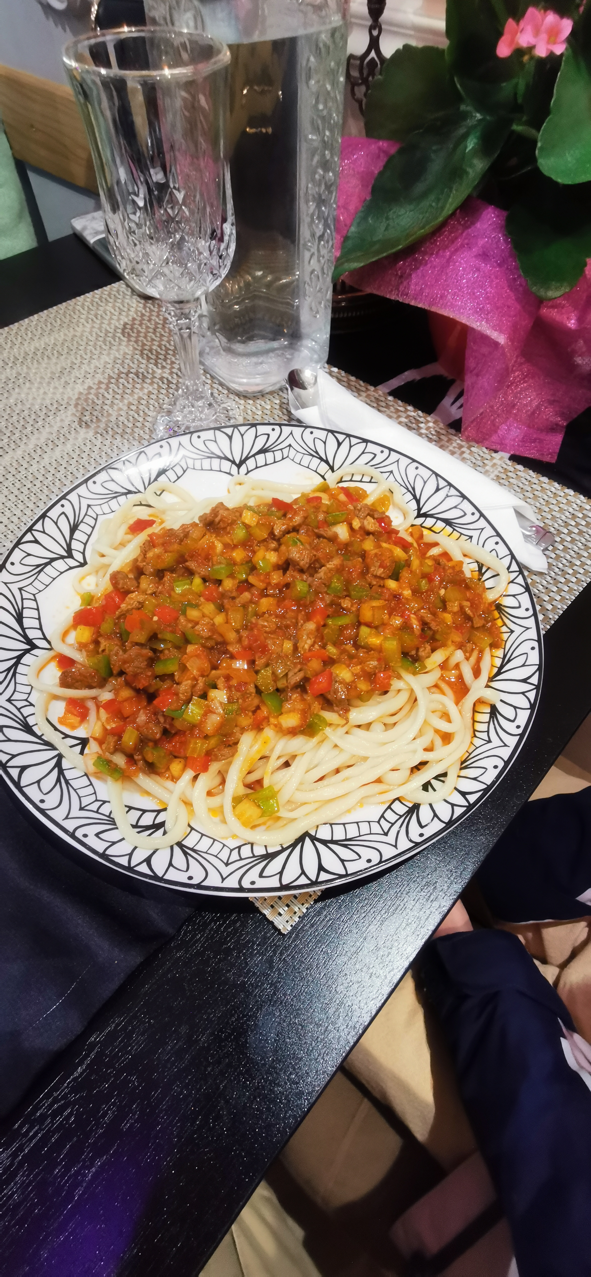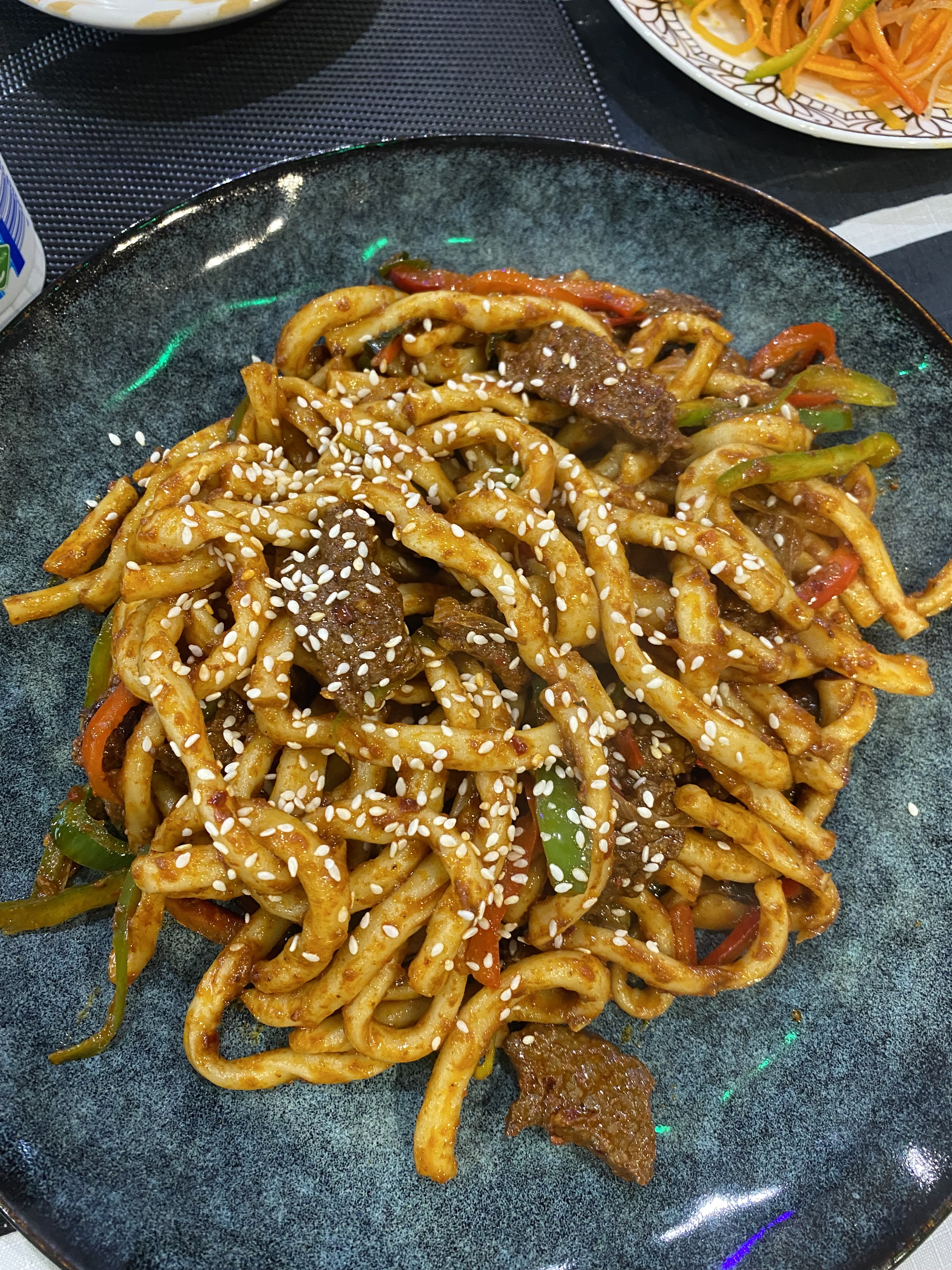 C'était vraiment une super expérience. Nous avons eu du benchir sauté et du qoruma leghmen qui étaient littéralement incroyables. Les nouilles au bœuf n'étaient pas quelque chose de spécial mais quand même bonnes. La nourriture mérite ce que vous payez. J'ai mis un peu de temps à recevoir la commande mais pour un dimanche soir, je pense que c'est normal.