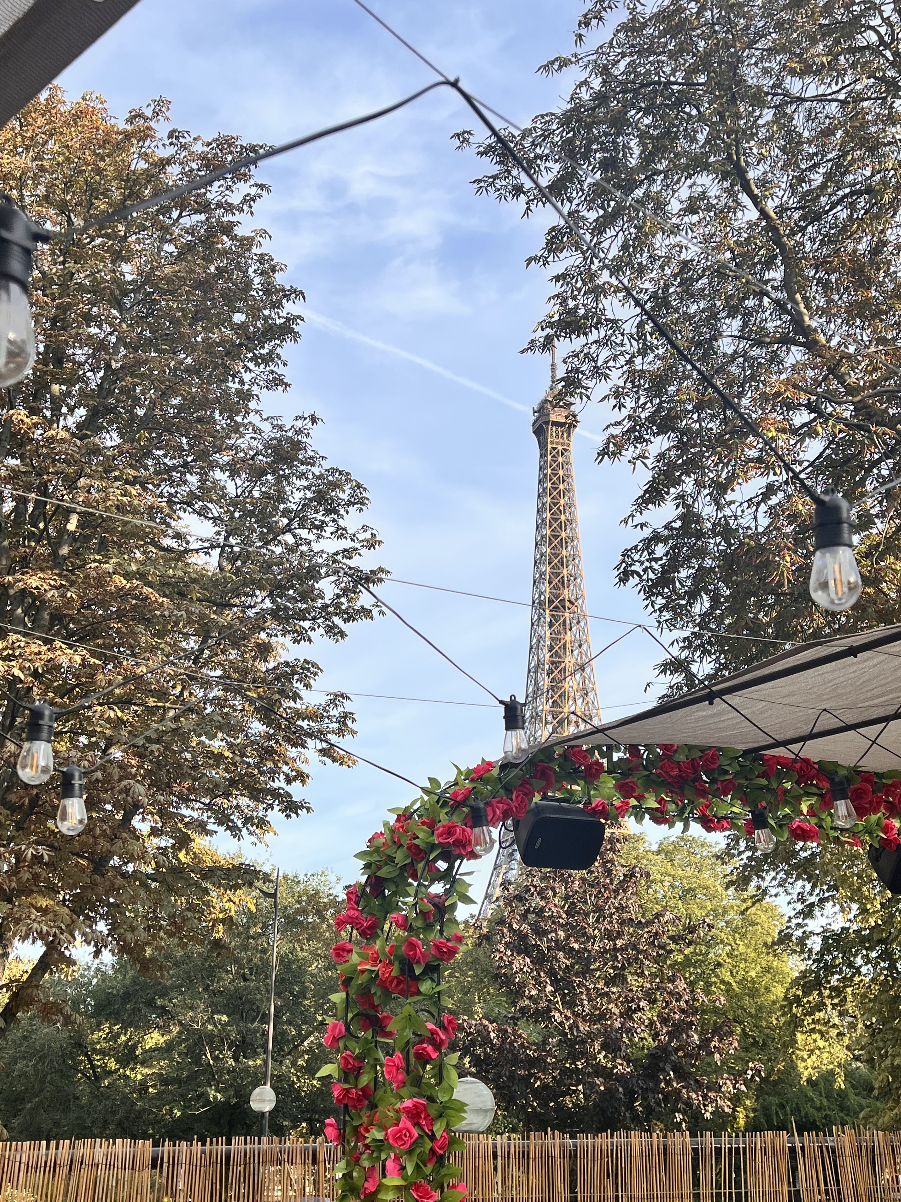Service dynamique et sympathique. THE Spot de Paris 2023 ! Idéal touristes avec vue sur la Tour Eiffel, en couple, entre amis, dans un cadre très fleuri complètement coupé de la rue. Une bulle de roses pour un moment de détente.